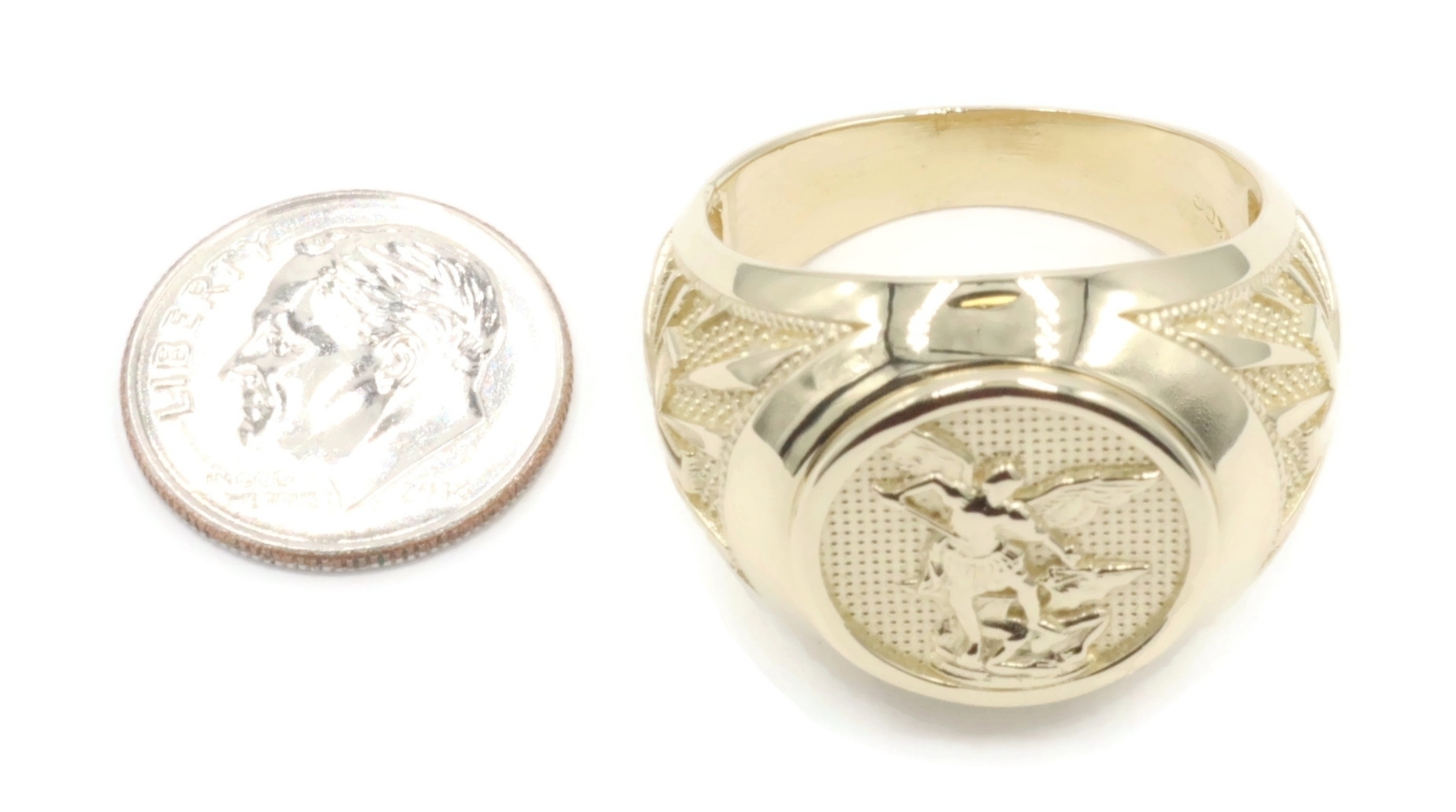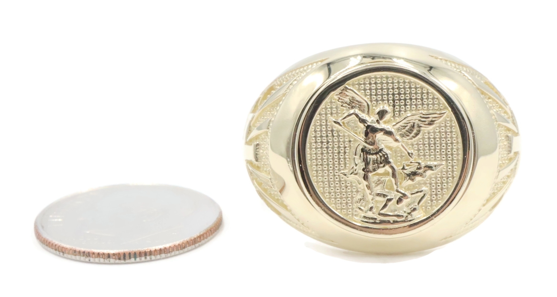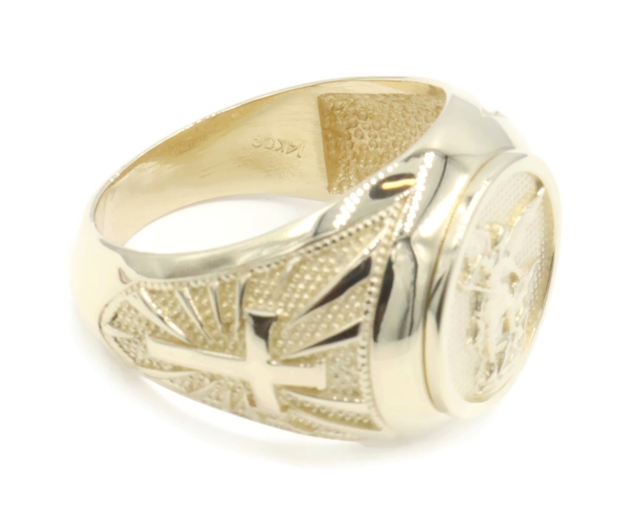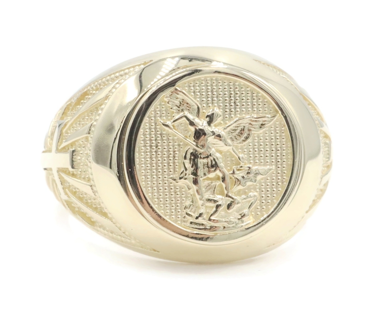 Men's St. Michael Archangel 14KT Yellow Gold Signet Cross Statement Ring 12.94g | USA Pawn