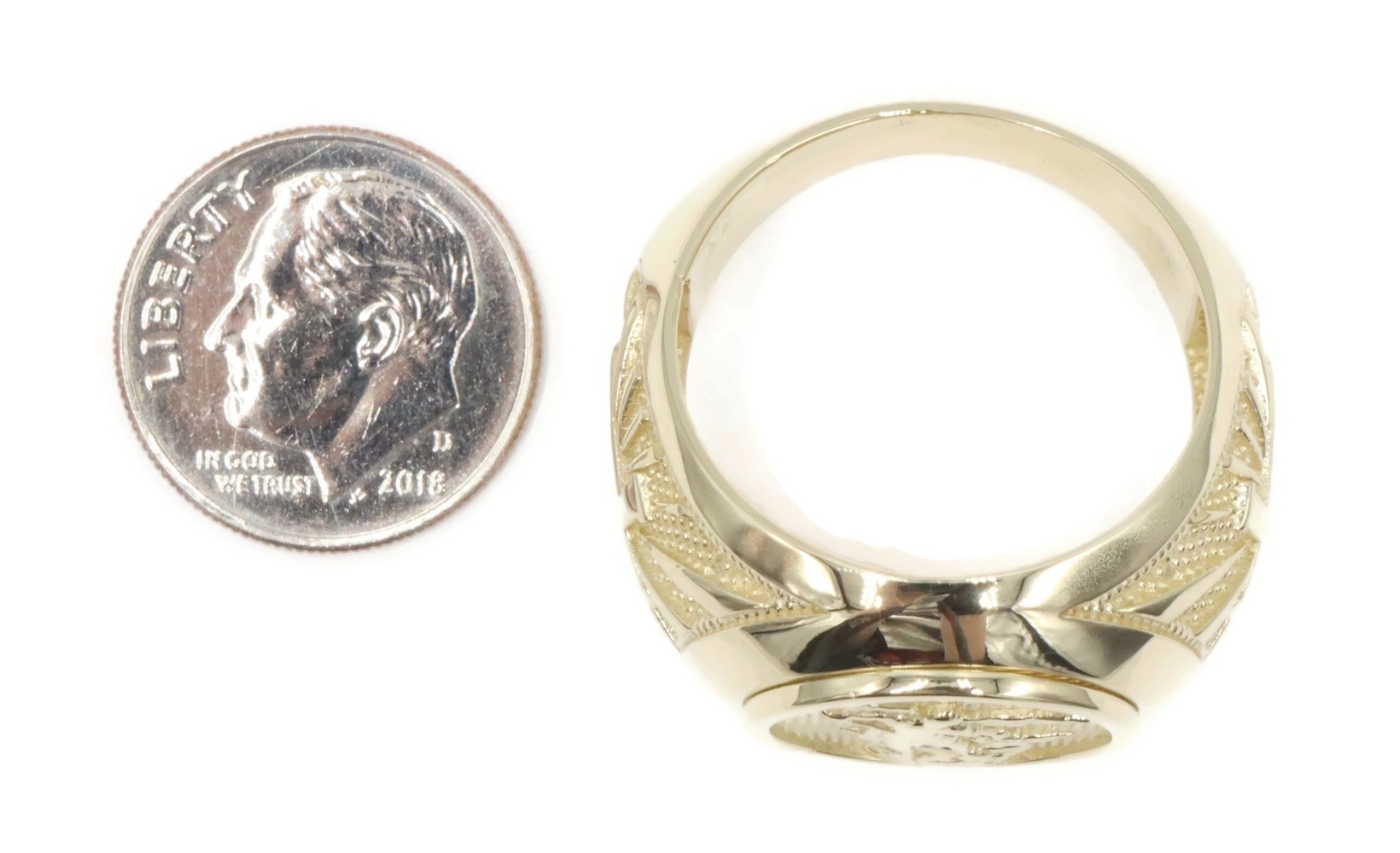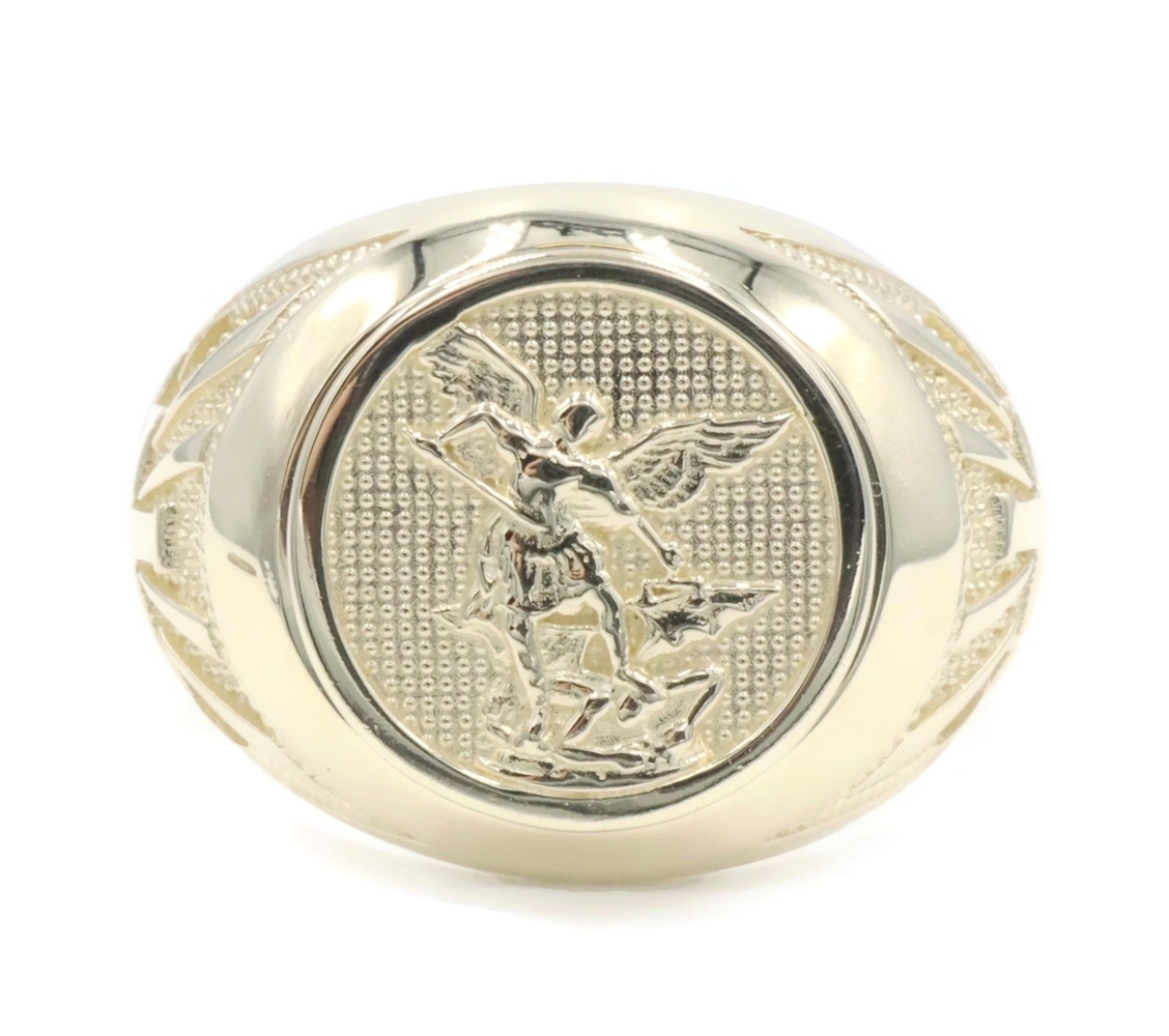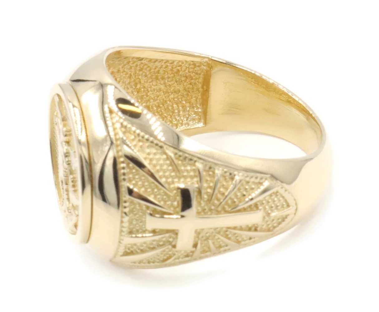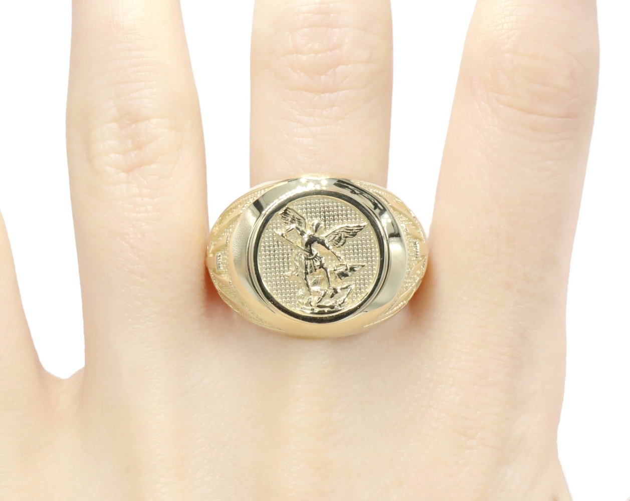 Men's St. Michael Archangel 14KT Yellow Gold Signet Cross Statement Ring 12.94g | USA Pawn