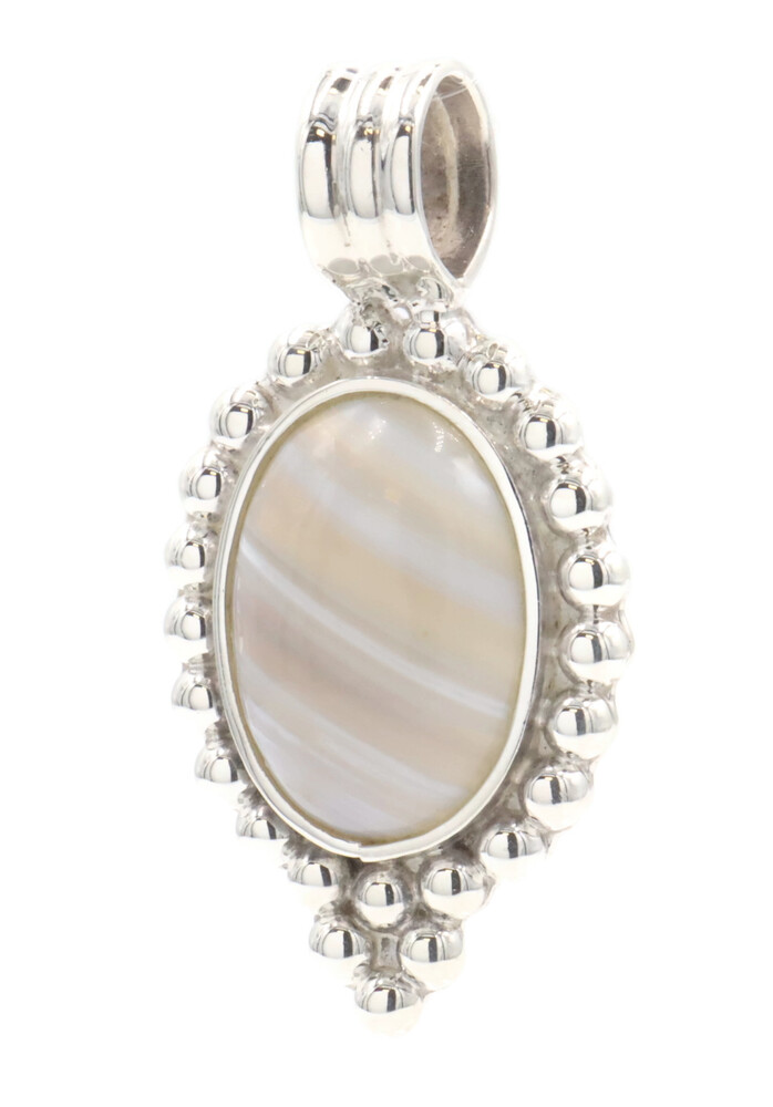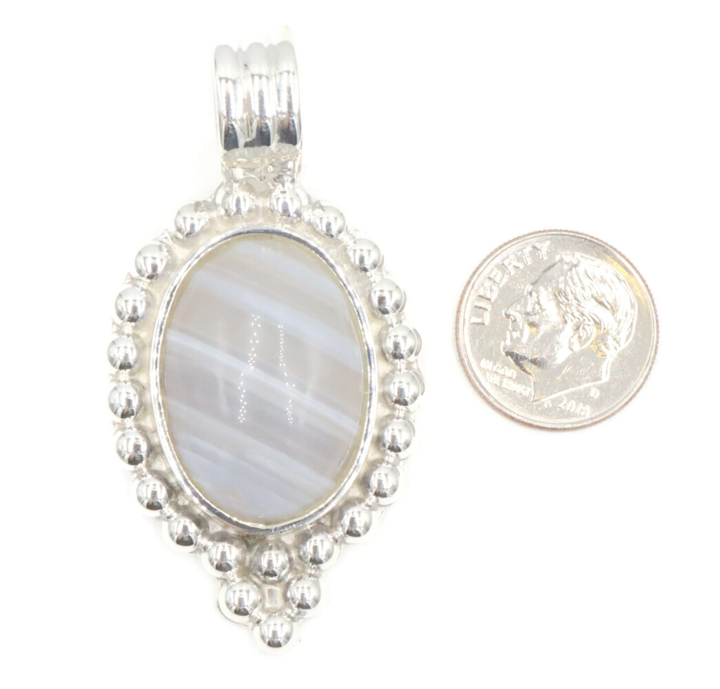 Mexico Sterling Silver 925 54mm Women's Striped Blue Agate Necklace Pendant | USA Pawn
