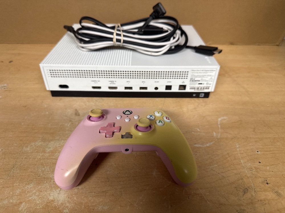 MICROSOFT 1681 XBOX ONE S GAMING CONSOLE / DIGITAL / POWER CORD / HDMI CABLE / MULTI-COLORED WIRED CONTROLLER WITH CABLE