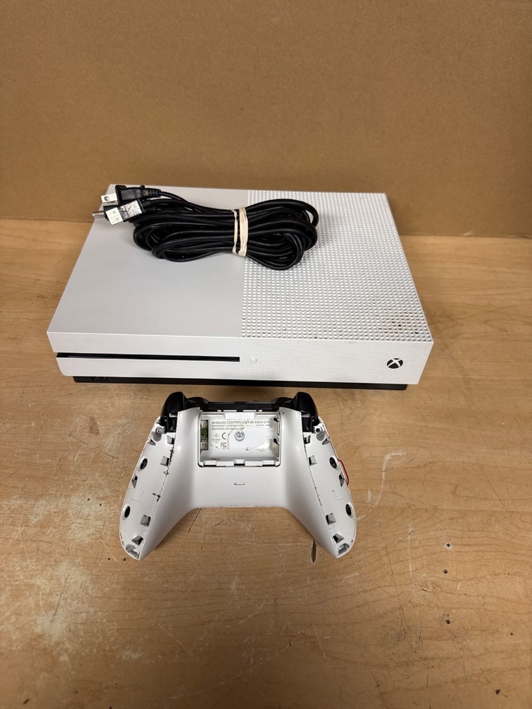MICROSOFT 1883 / POWER CORD / HDMI CABLE / WHITE WIRELESS CONTROLLER, NO BACK ON CONTROLLER, DOES HAVE CABLE / SELLING AS IS / WORKS AS INTENDED