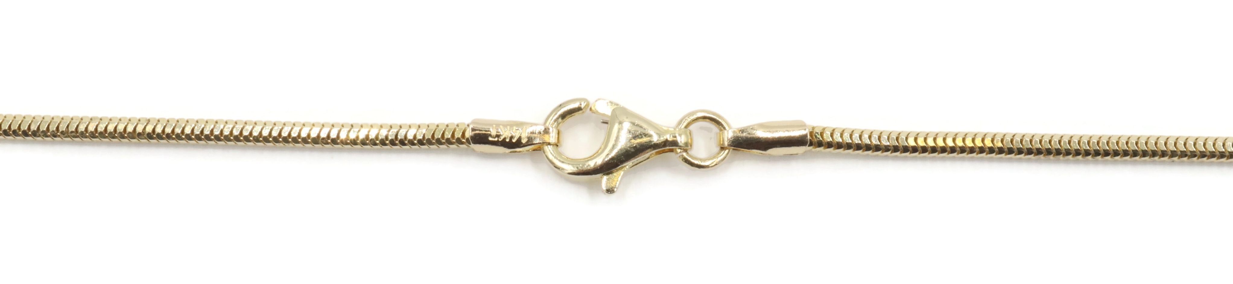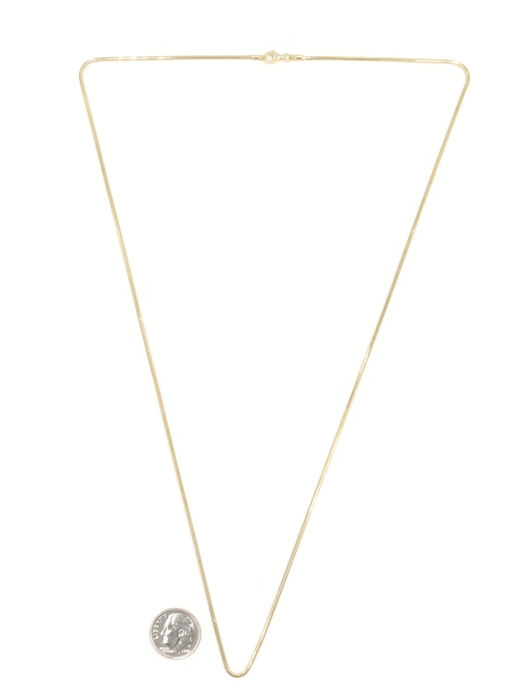 Milor 14KT Yellow Gold 1.4mm High Shine Snake Chain Necklace 24" Italy - 5.45g. This necklace is approximately 24 inches in length and 1.4mm in width.
