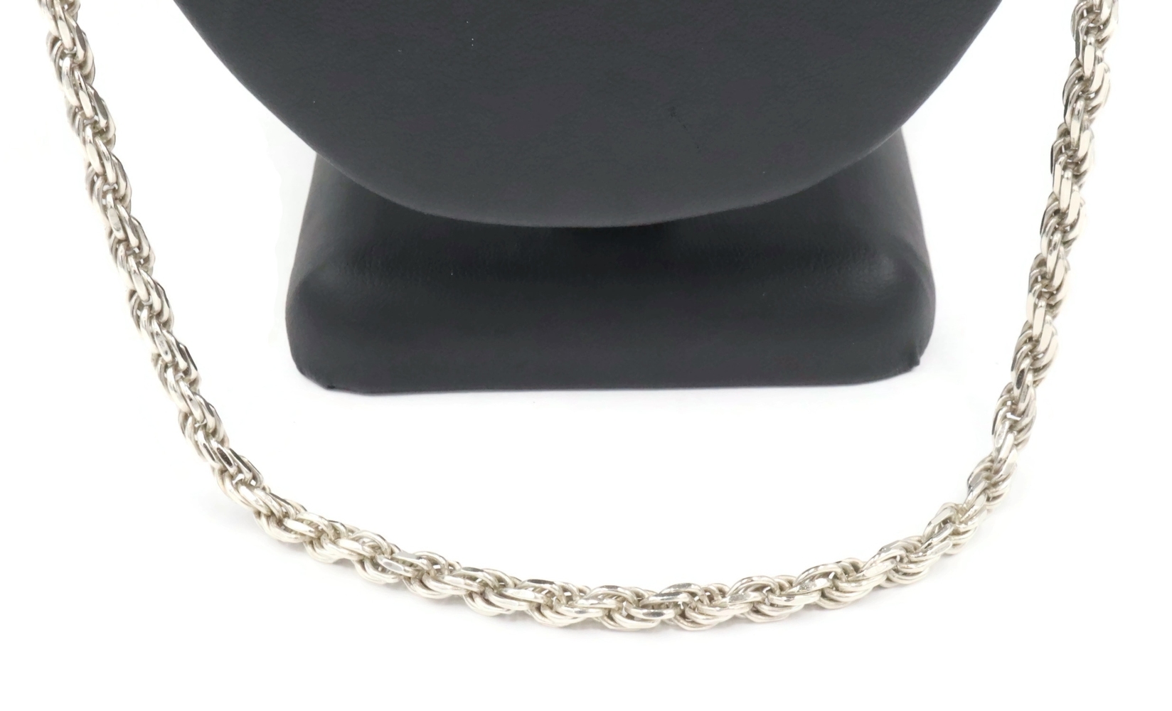 Milor Heavy Sterling Silver (925) 4.8mm Classic Italy Rope Necklace 30 1/2" 54g. This necklace is approximately 30 1/2 inches in length and 4.8mm in width.