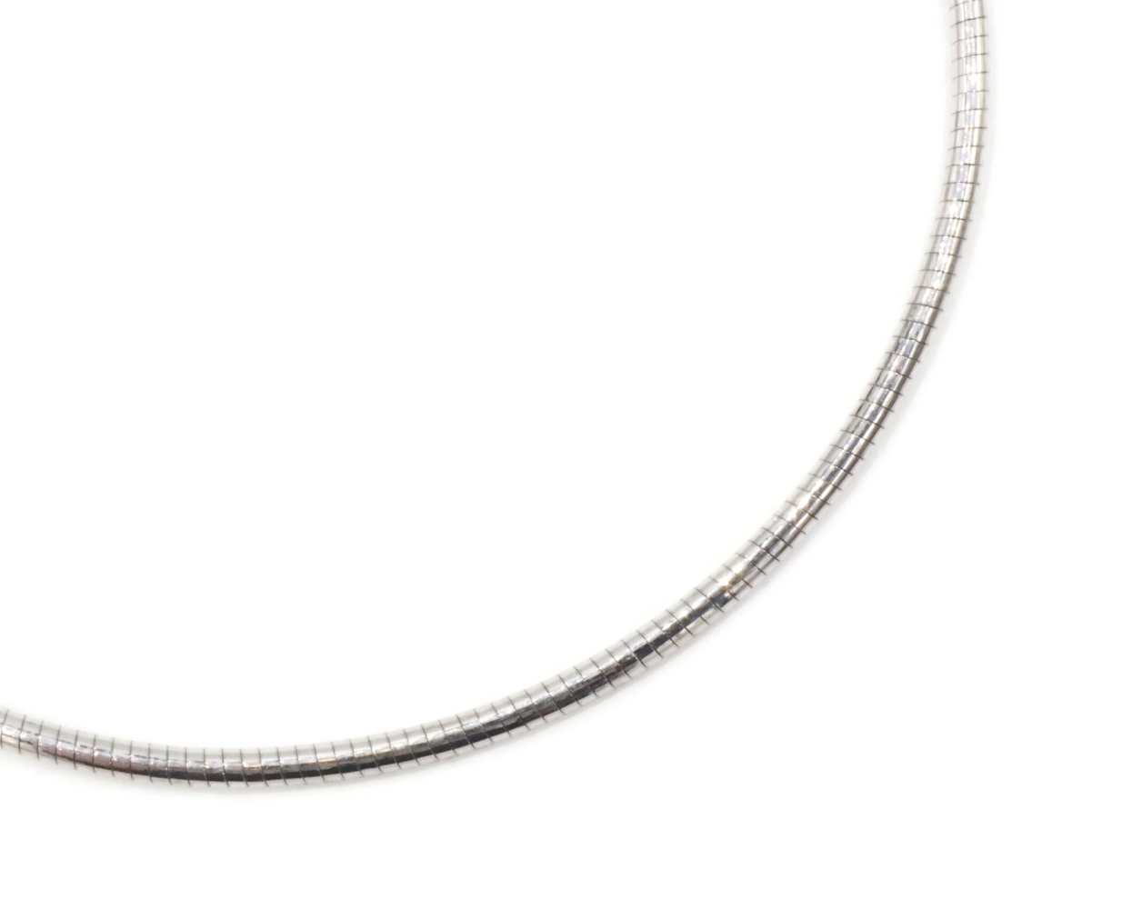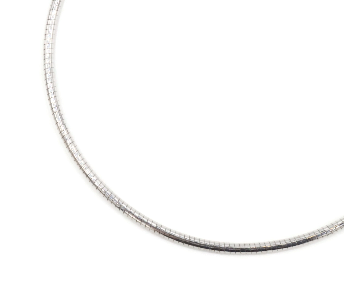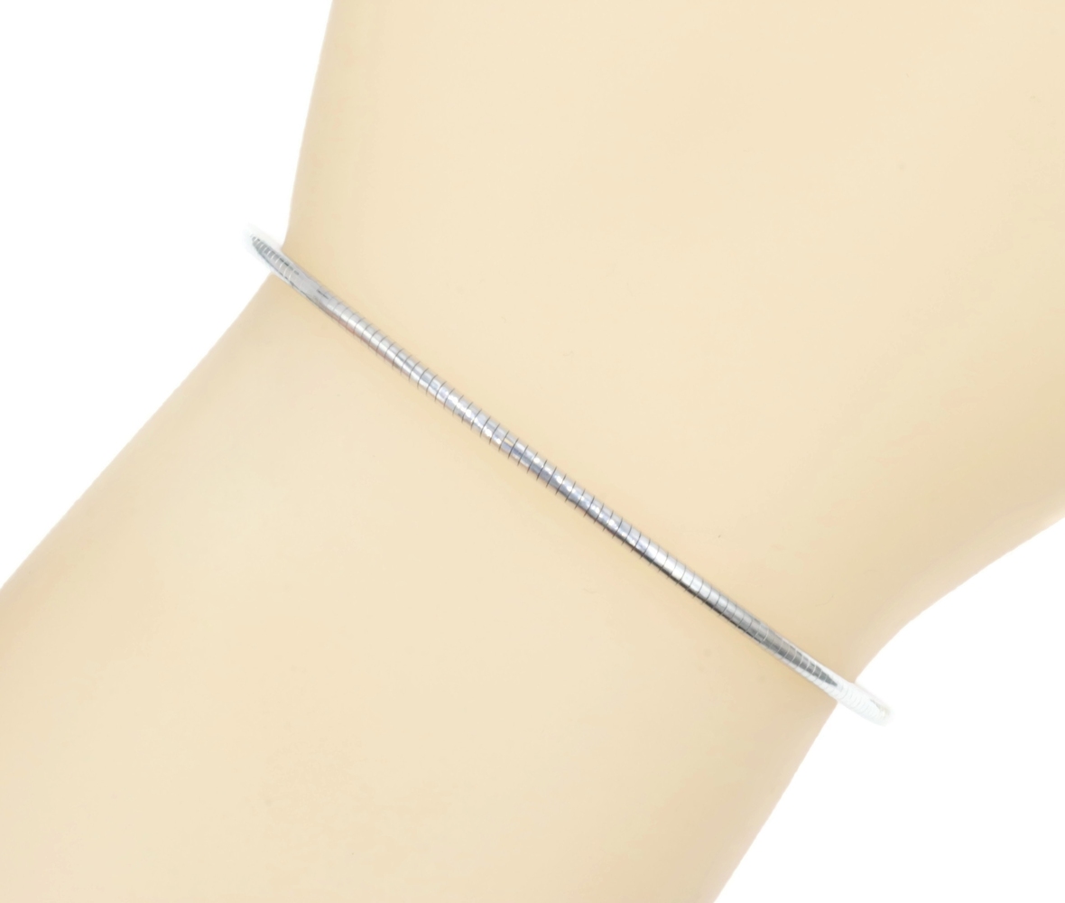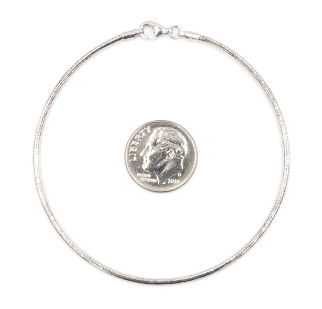 Milor Italy 14KT White Gold 1.6mm Thin Round Omega Chain Bracelet 7.5" - 3.22g. This bracelet is approximately 7 1/2 inches in length and 1.6mm in width.