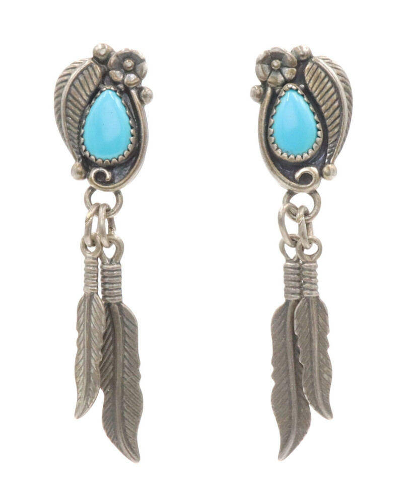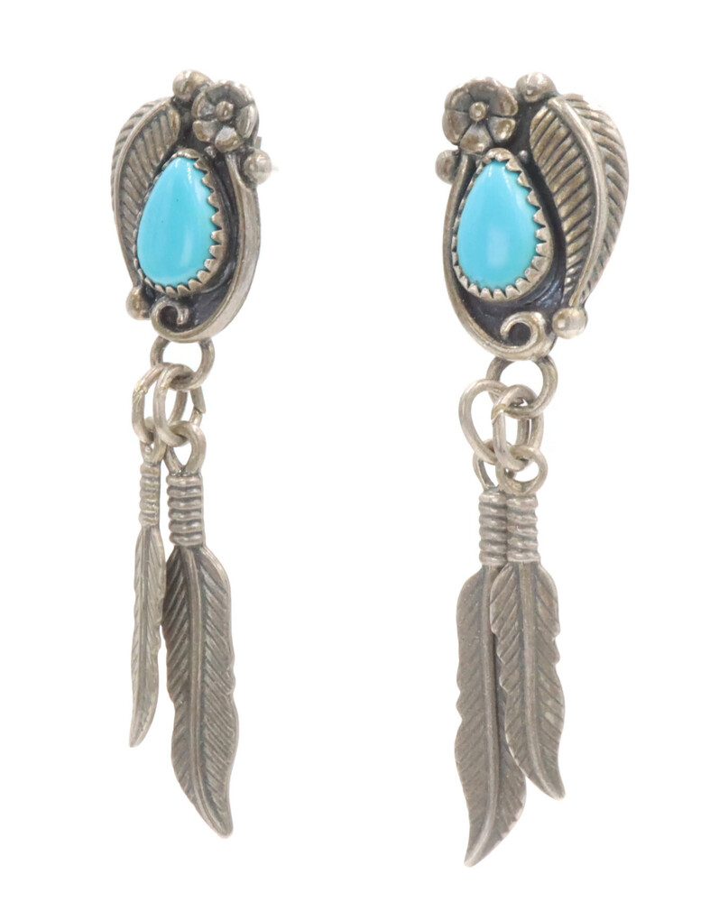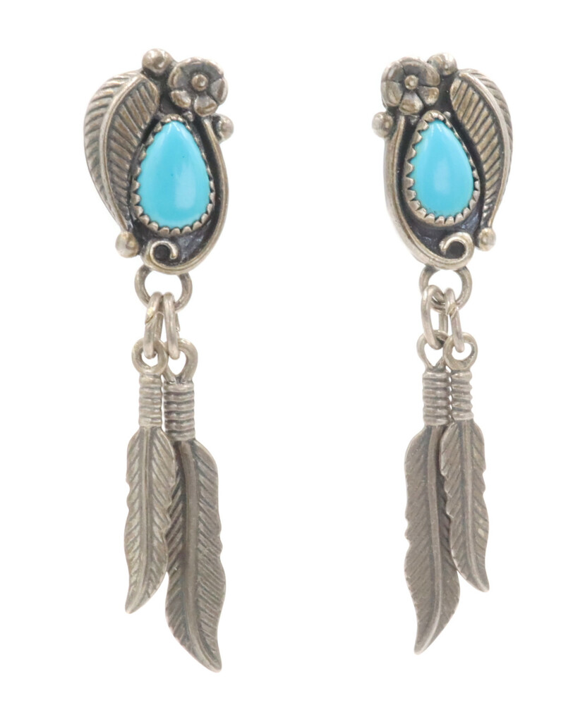 Native American Style Pear Cabochon Cut Turquoise Earrings 925 Sterling Silver | USA Pawn