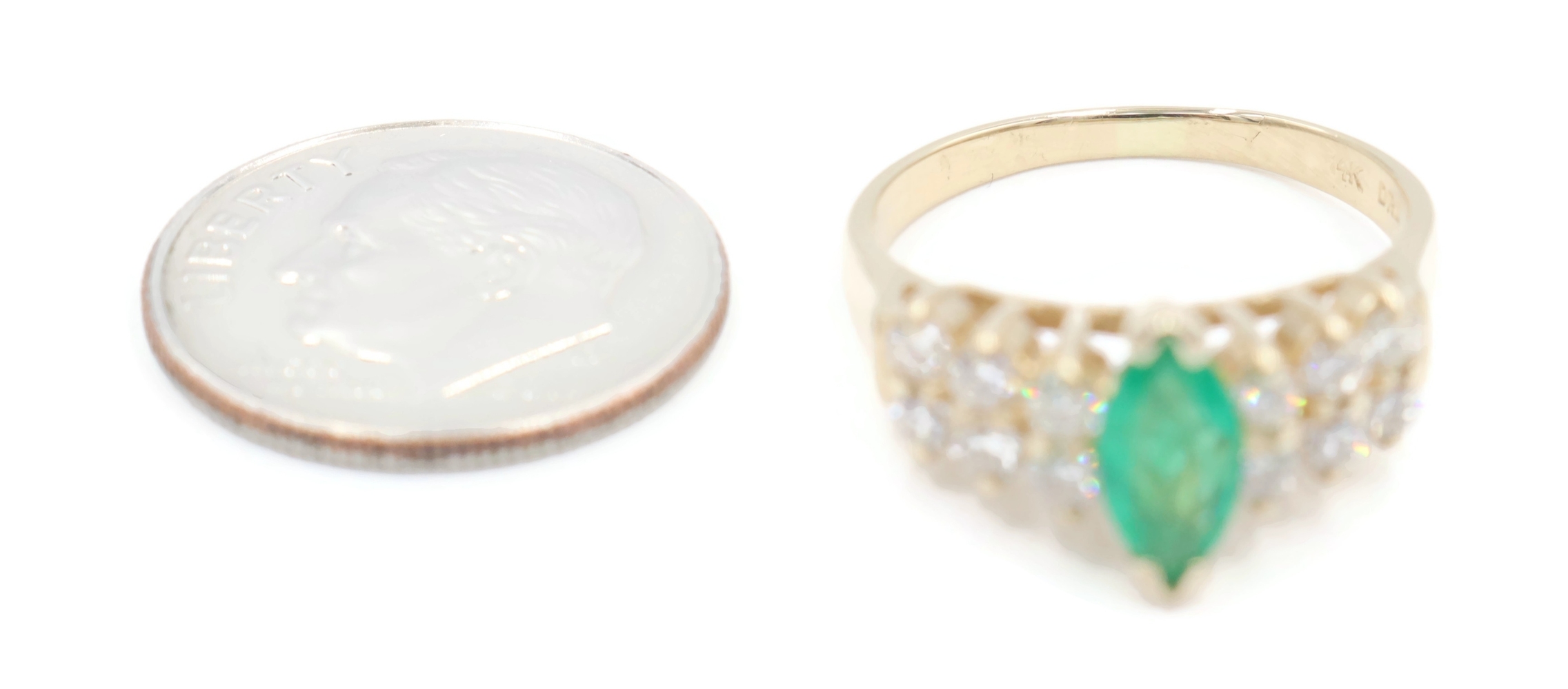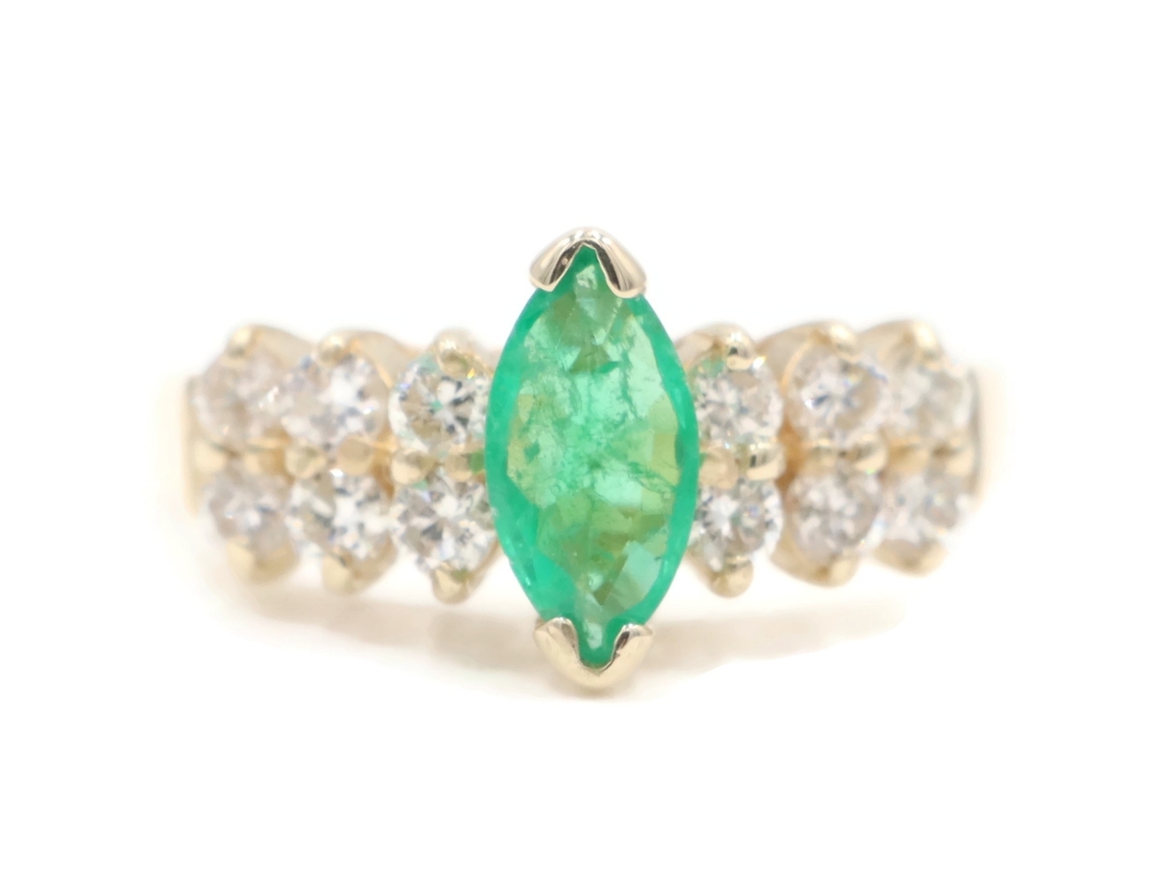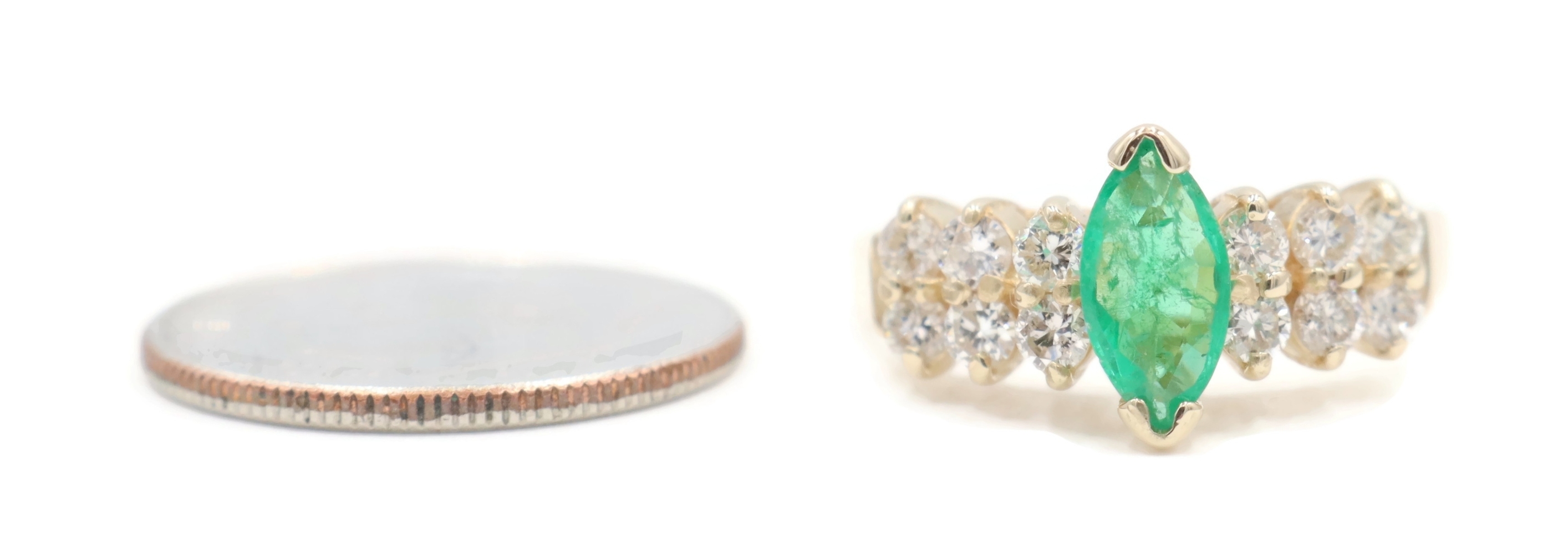 Natural 0.33 Ct Marquise Emerald & Round Diamond 14KT Yellow Gold Ring DRA 2.82g | USA Pawn