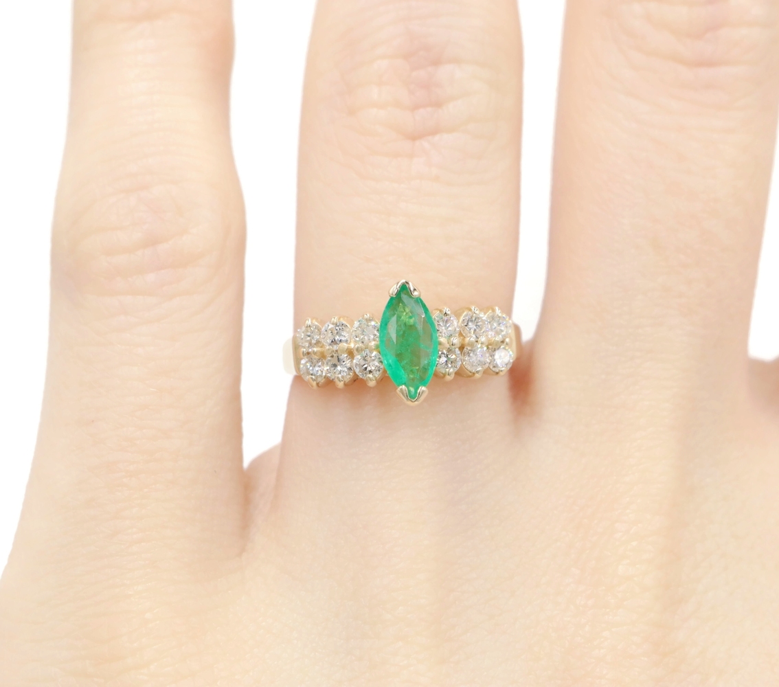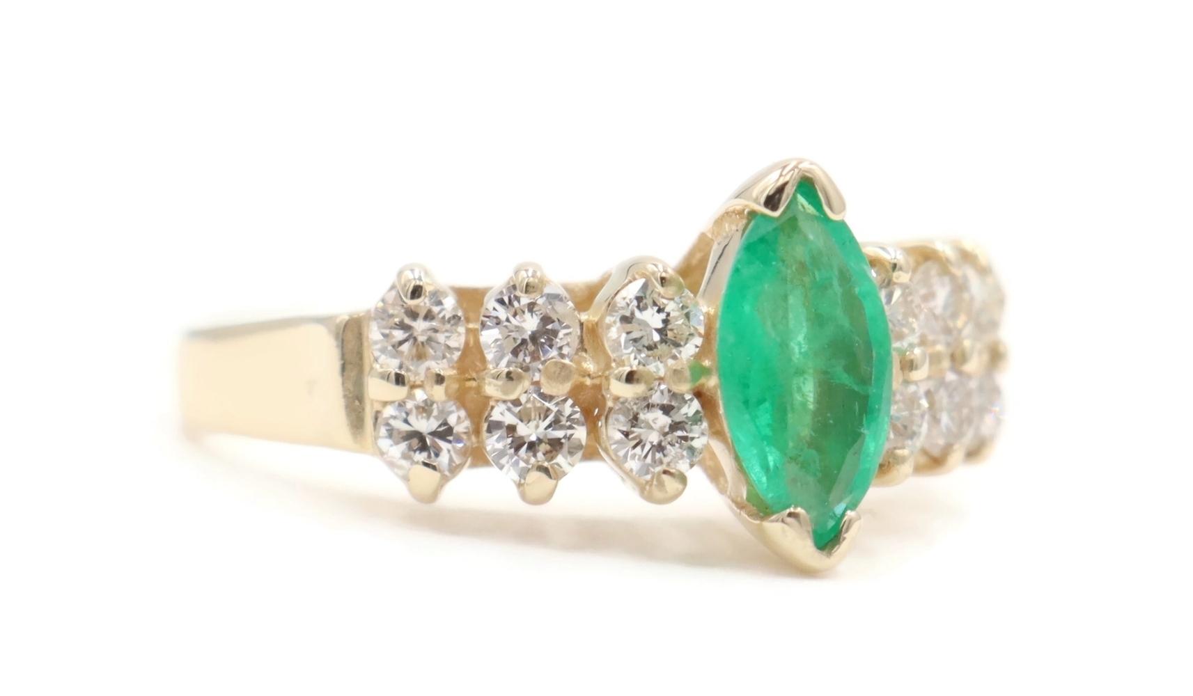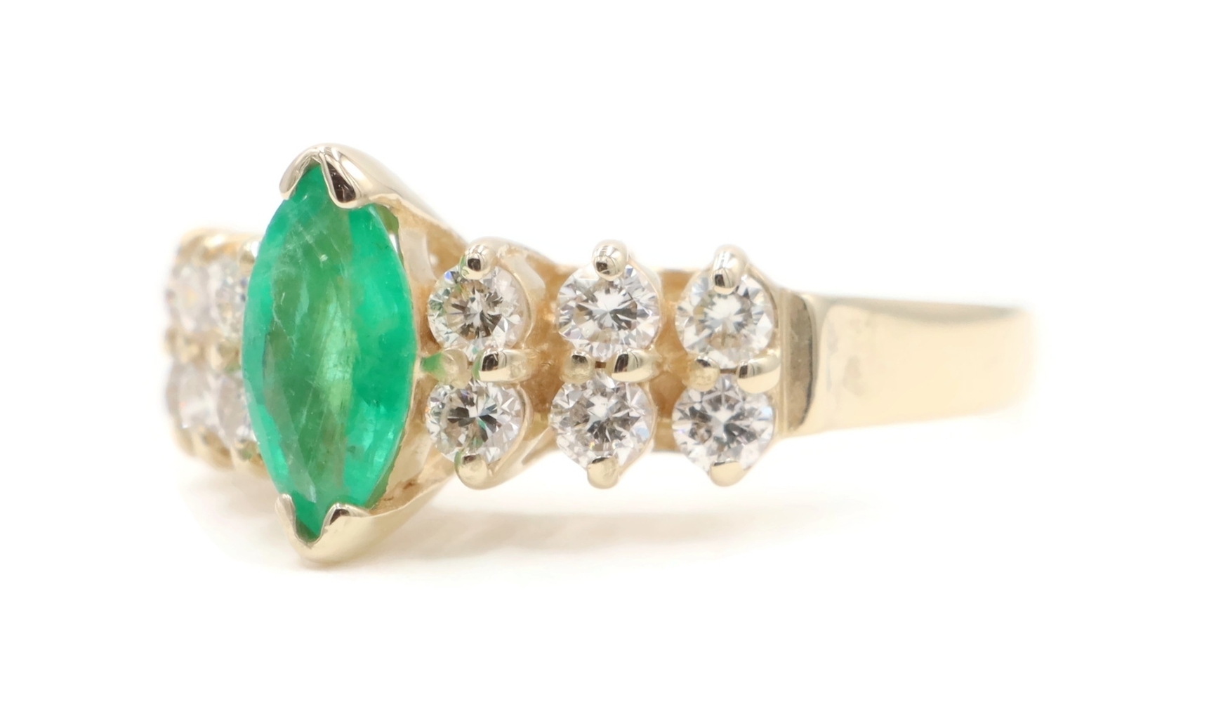 Natural 0.33 Ct Marquise Emerald & Round Diamond 14KT Yellow Gold Ring DRA 2.82g | USA Pawn