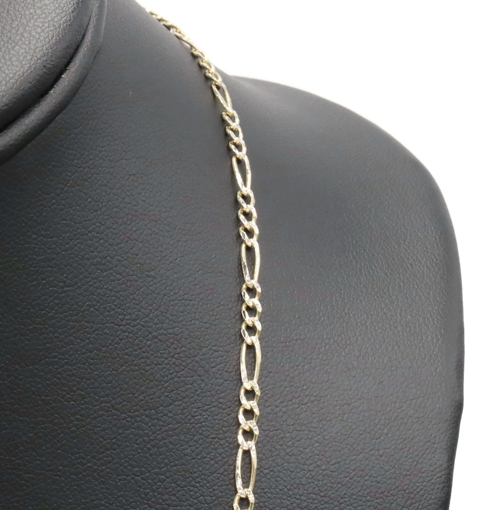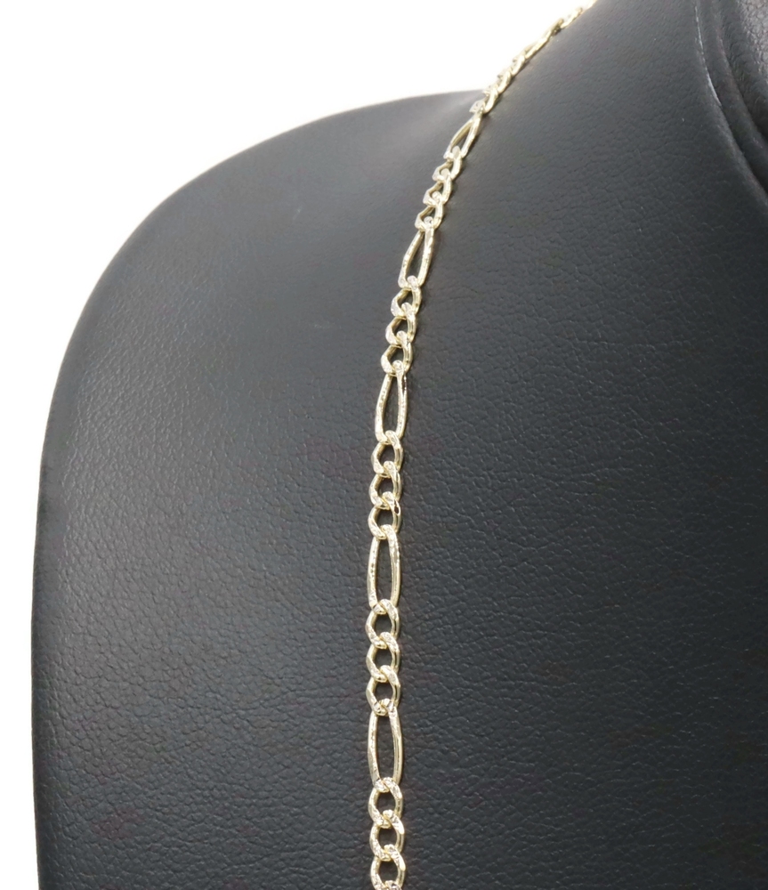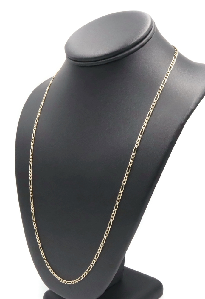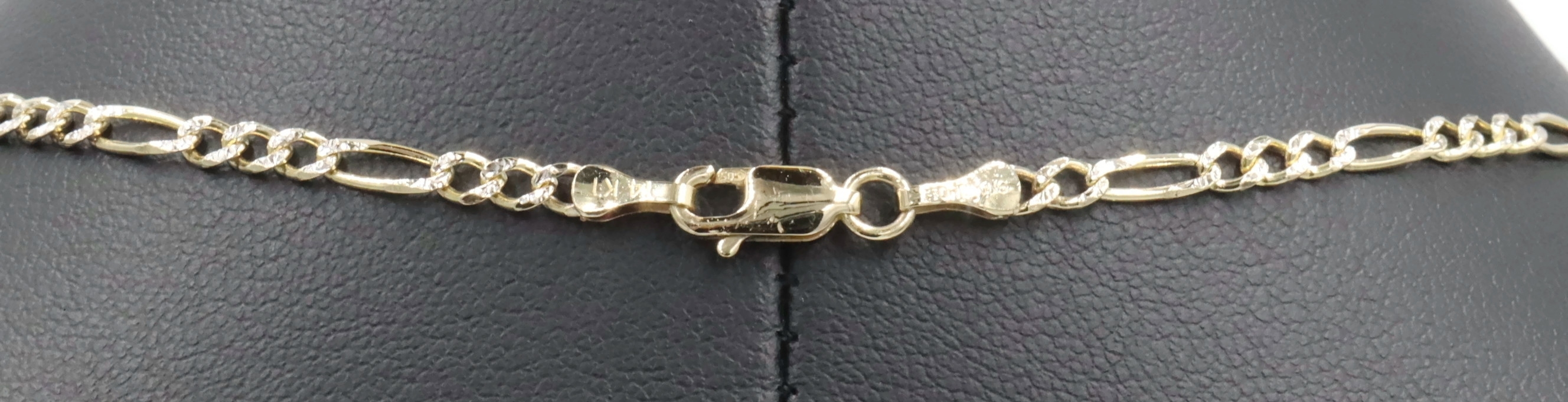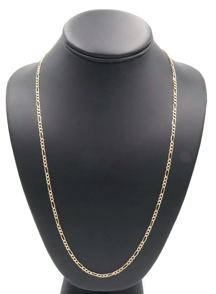 Oro King Diamond-Cut 14KT Yellow Gold 2.9mm Thin Figaro Chain Necklace 24" 8.83g. This necklace is approximately 24 1/2 inches in length and 2.9mm in width.
