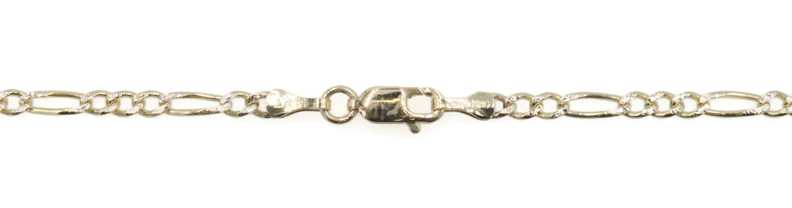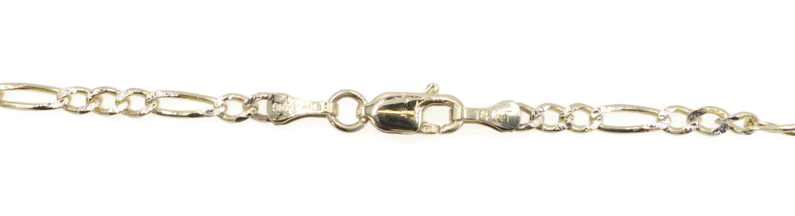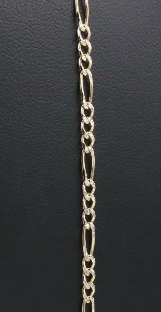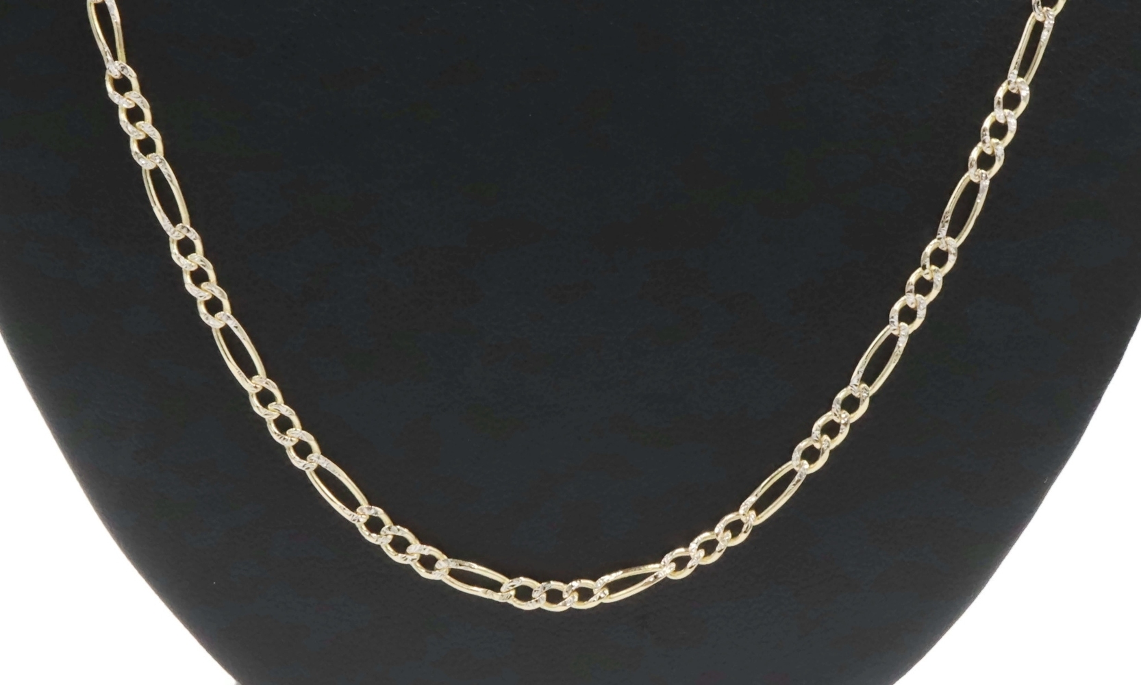 Oro King Diamond-Cut 14KT Yellow Gold 2.9mm Thin Figaro Chain Necklace 24" 8.83g. This necklace is approximately 24 1/2 inches in length and 2.9mm in width.