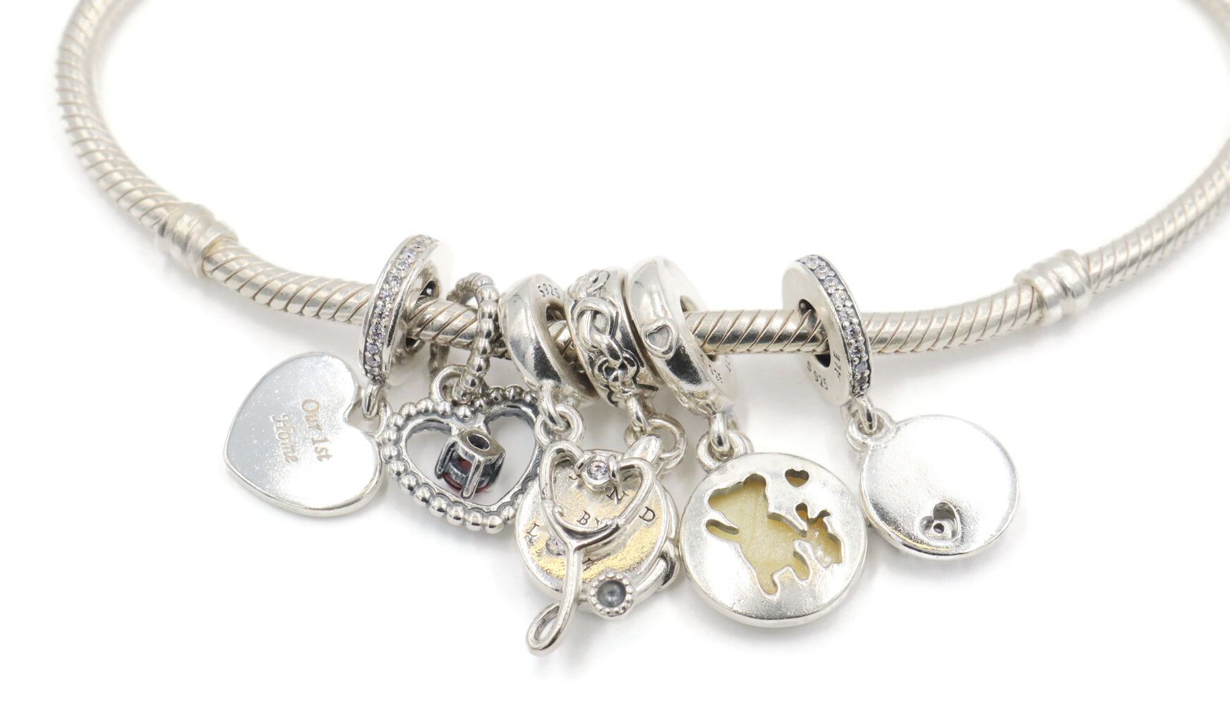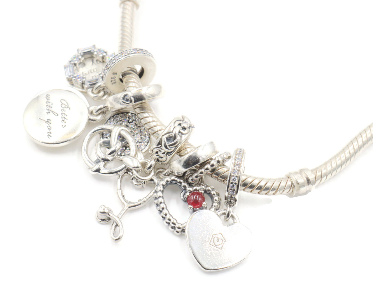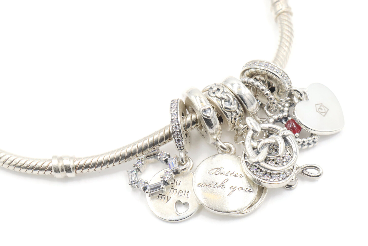 Pandora Moments Sterling Silver Snake Chain 925 Bracelet 7.5" with 6 Charms | USA Pawn