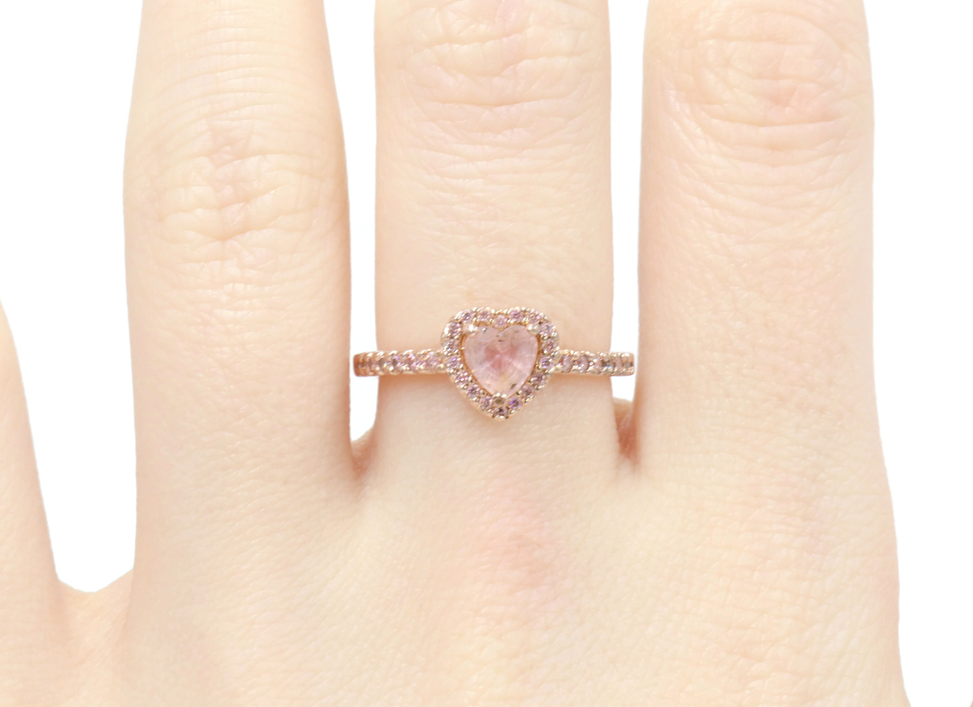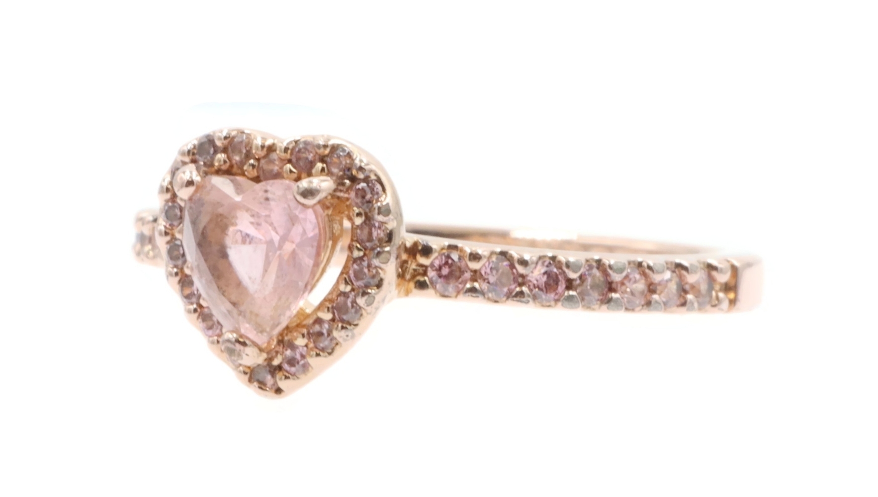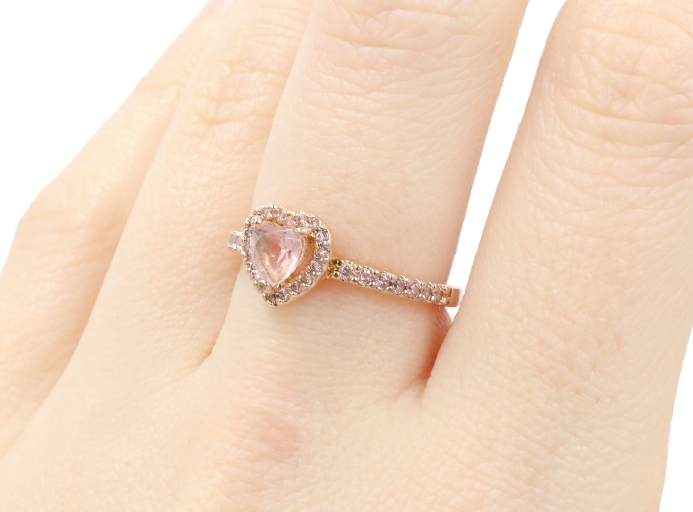 Pandora Sparkling Elevated Heart CZ Halo 14KT Rose Gold Plated Ring ALE MET 52. This ring is a size 6.