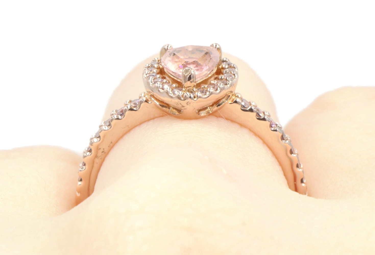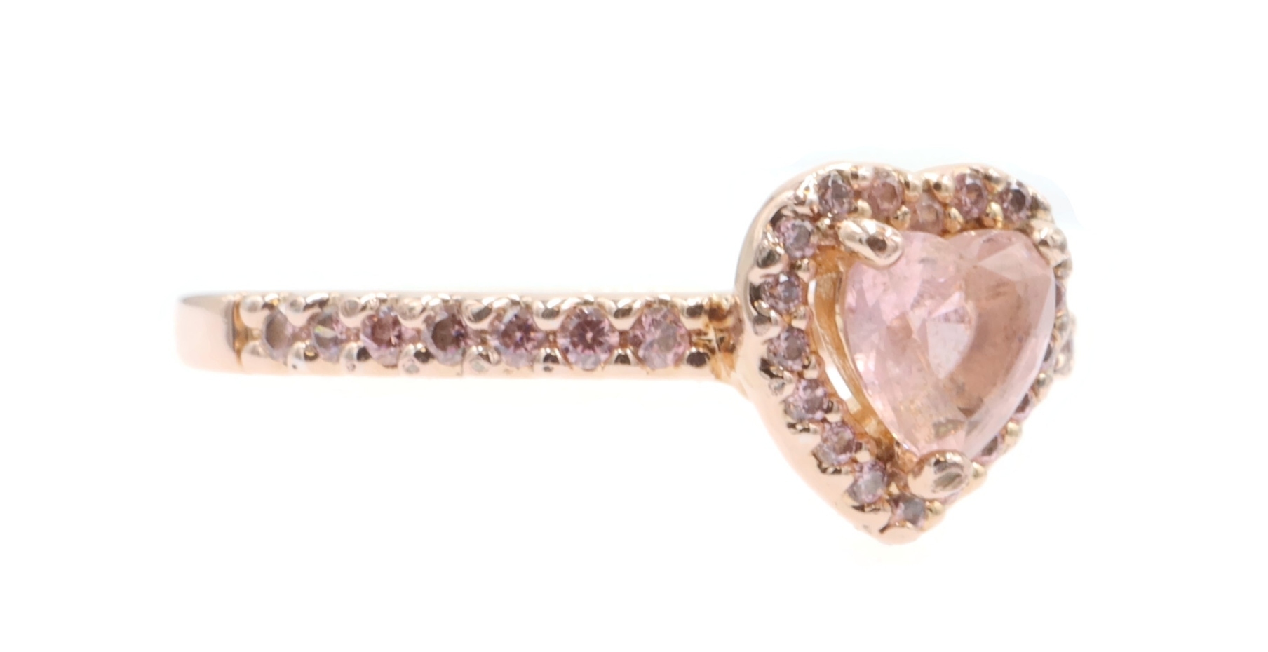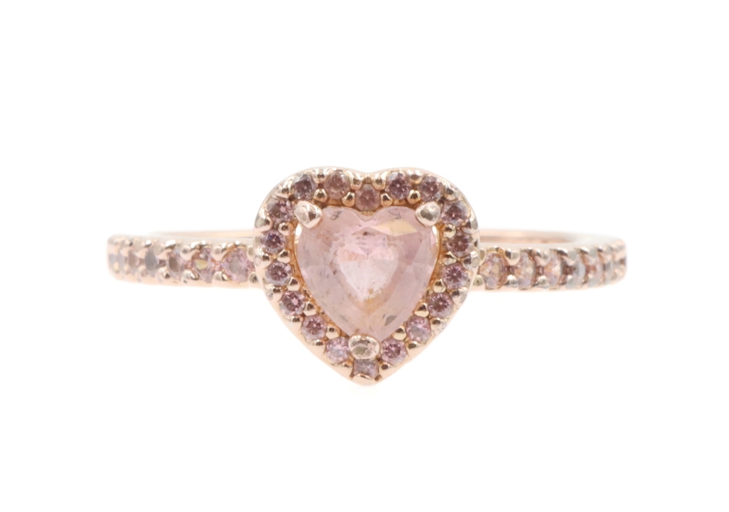 Pandora Sparkling Elevated Heart CZ Halo 14KT Rose Gold Plated Ring ALE MET 52. This ring is a size 6.
