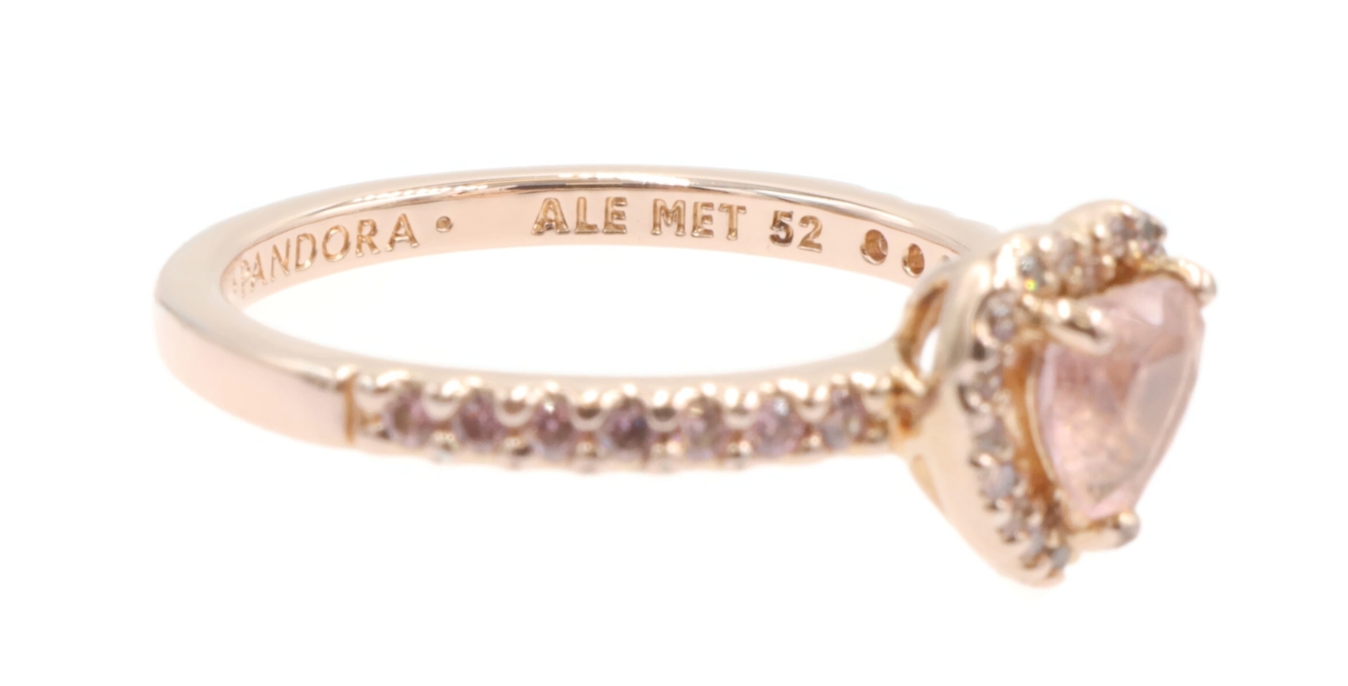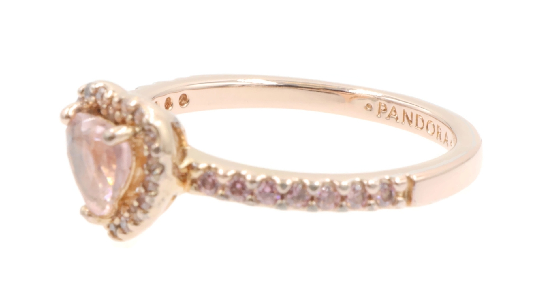Pandora Sparkling Elevated Heart CZ Halo 14KT Rose Gold Plated Ring ALE MET 52 | USA Pawn