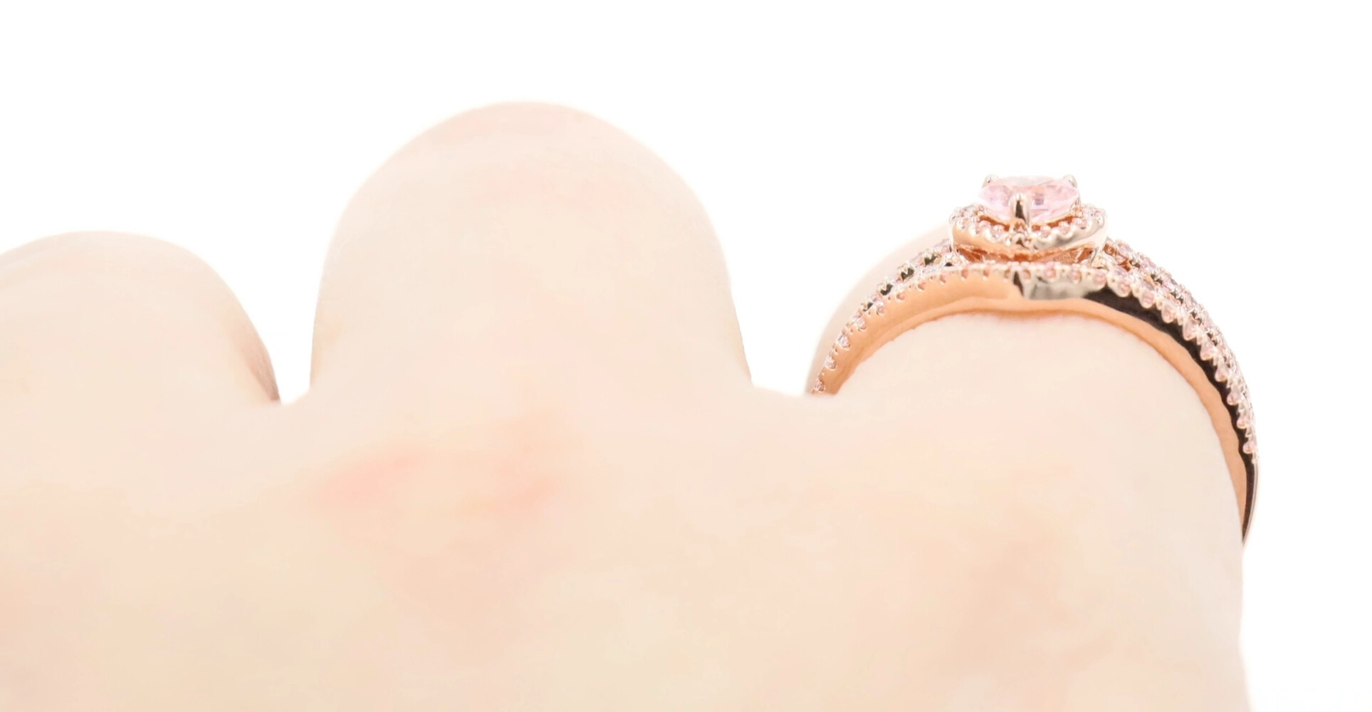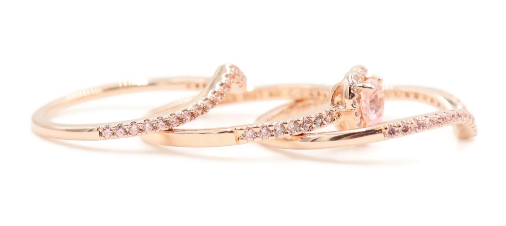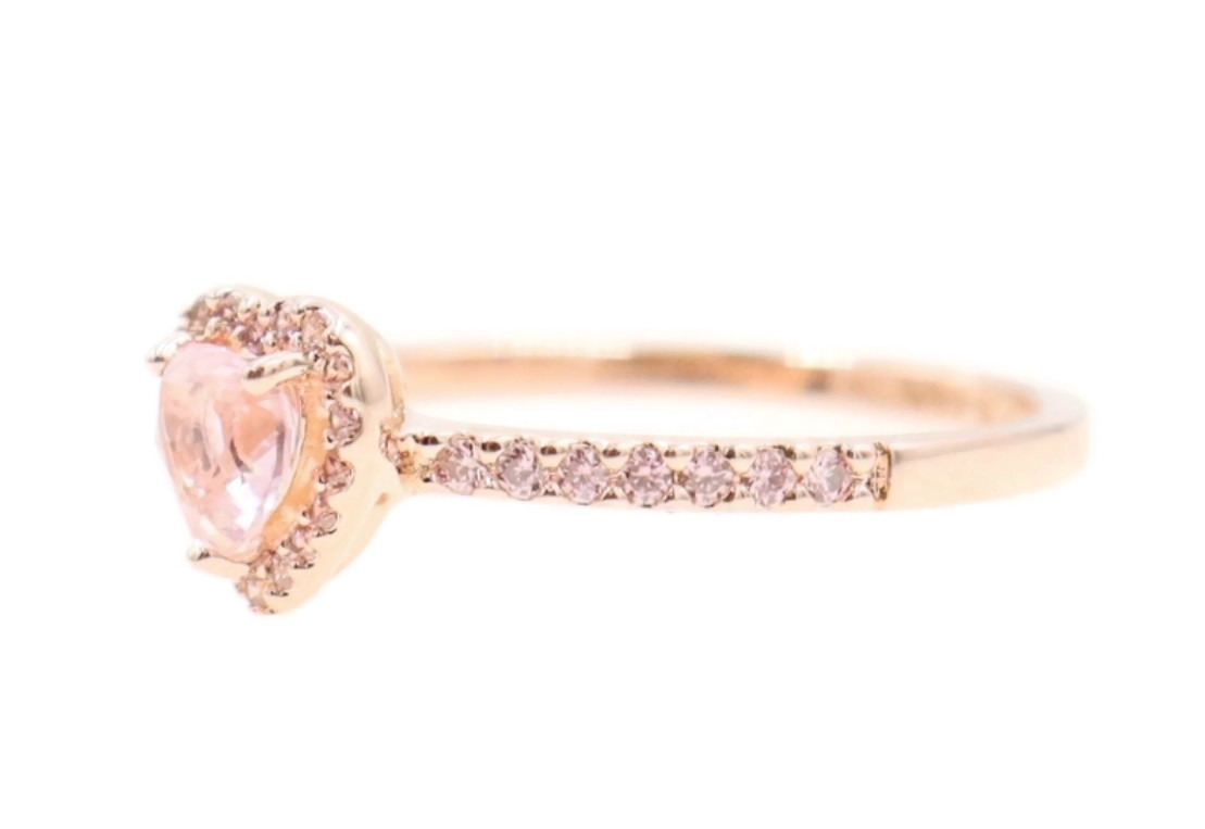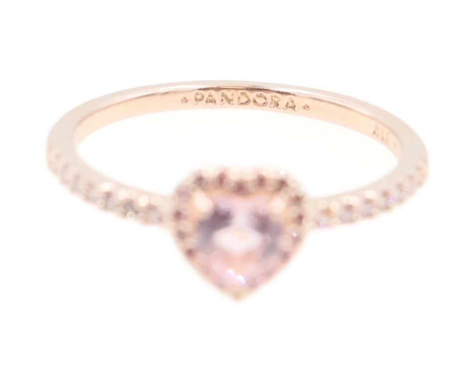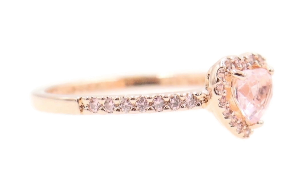 Pandora Sparkling Elevated Heart Ring with 2 Timeless Wish Sparkling Pink Rings. All three rings are a size 9. All three rings are 14K Rose Gold plated with CZs (Cubic Zirconia).