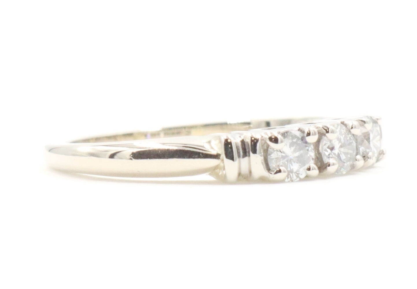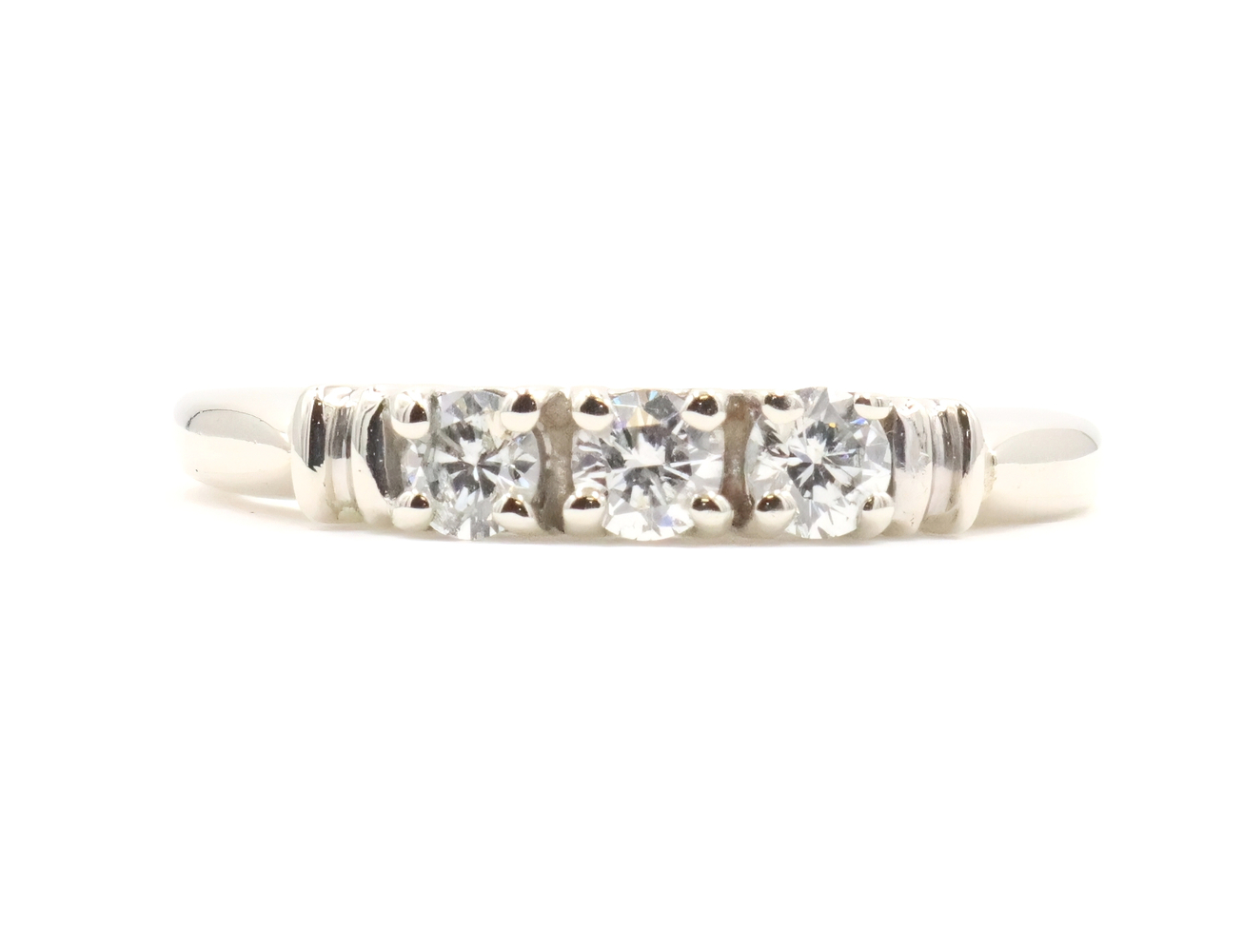 Past Present Future 0.27 Ctw Round Diamond 14KT White Gold Engagement Ring 2.42g. This ring is a size 5.