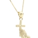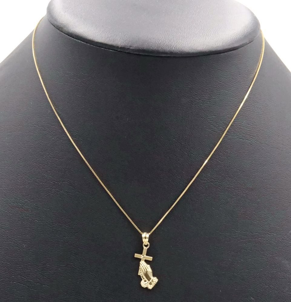 Praying Hands & Cross 10KT Yellow Gold Pendant on 16.5" Box Chain Necklace 1.4g | USA Pawn