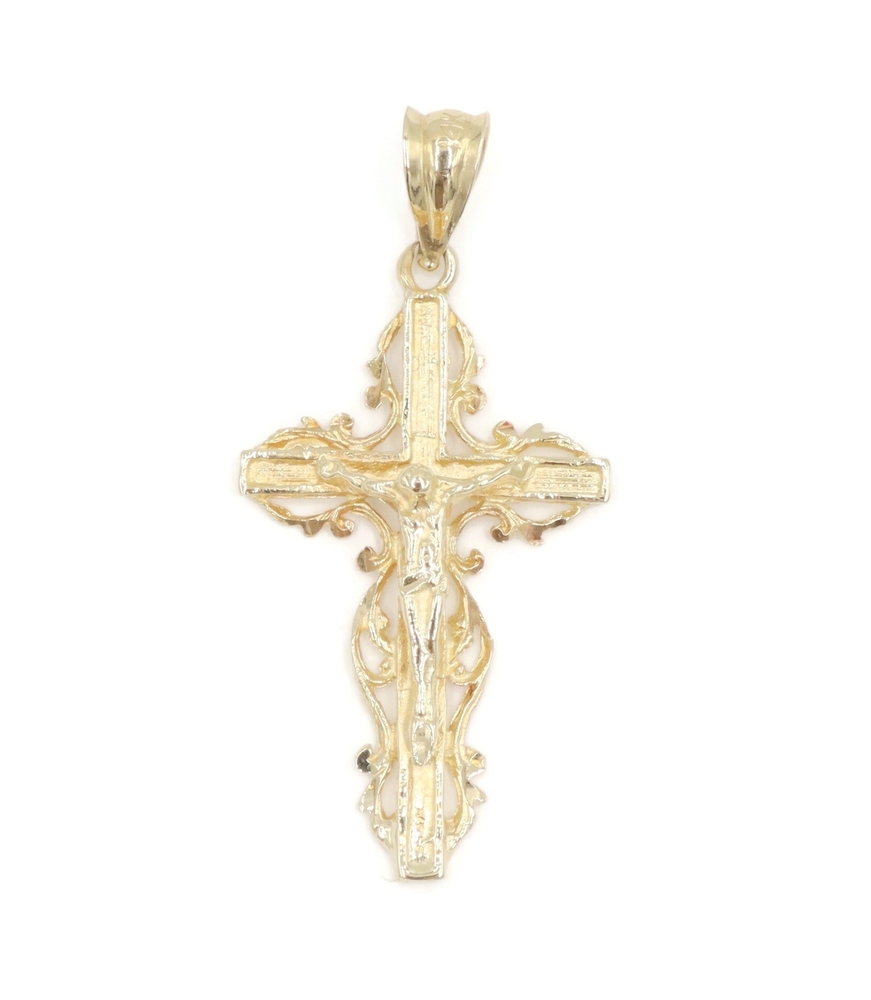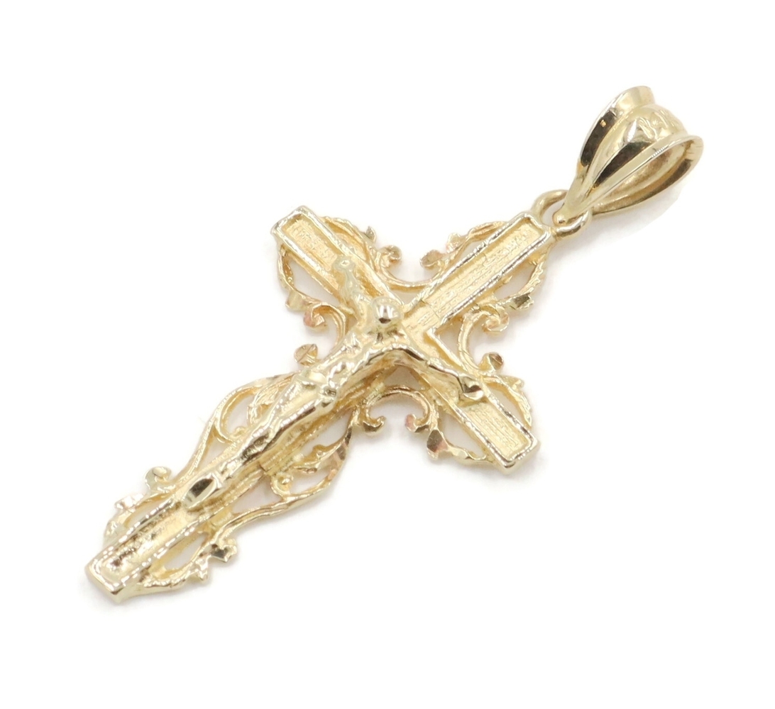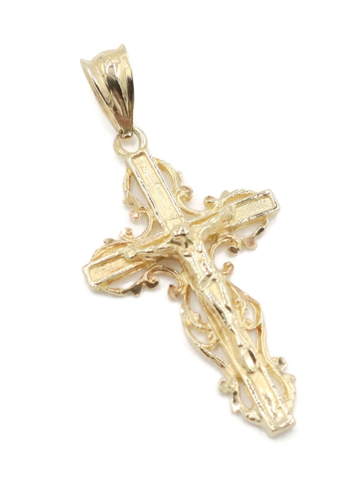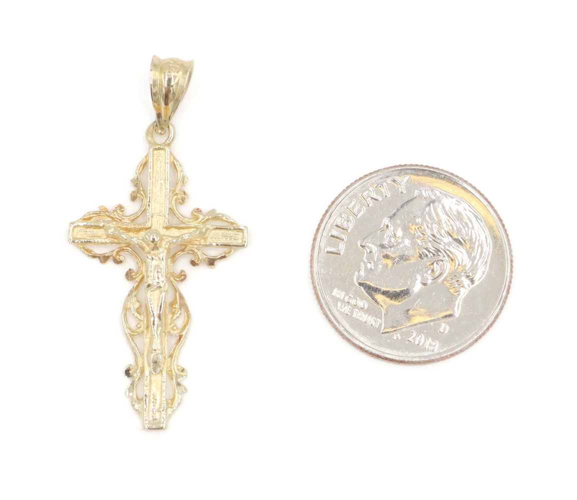 Religious 14KT Yellow Gold Crucifix Cross Filigree 34mm Necklace Pendant - 1.7g | USA Pawn