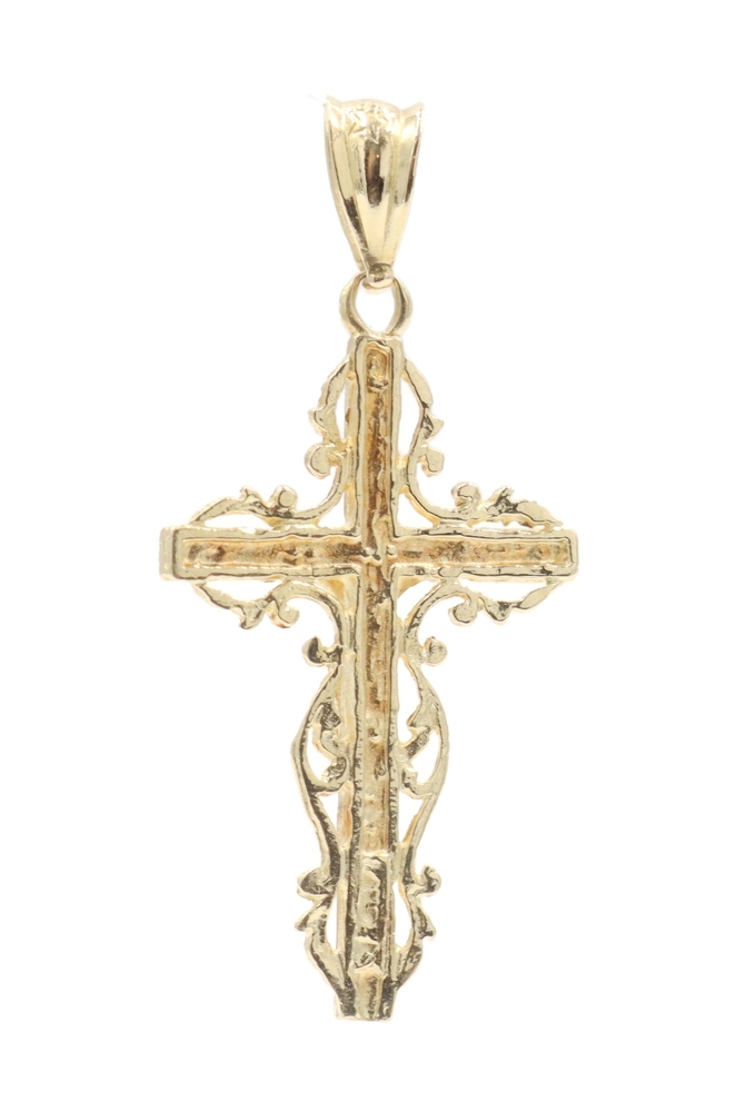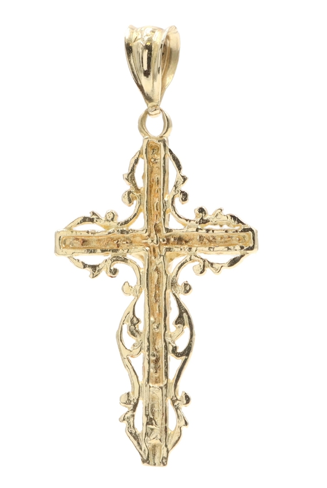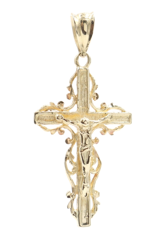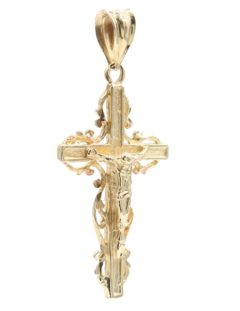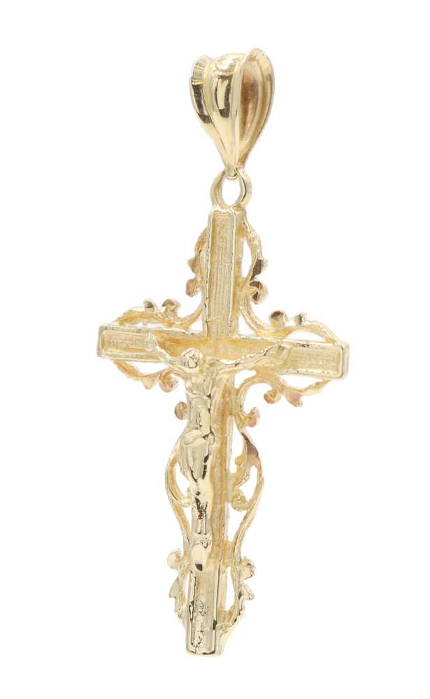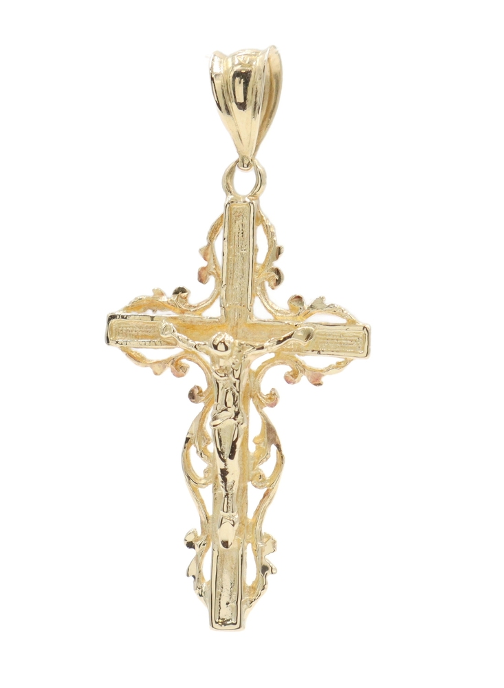 Religious 14KT Yellow Gold Crucifix Cross Filigree 34mm Necklace Pendant - 1.7g | USA Pawn