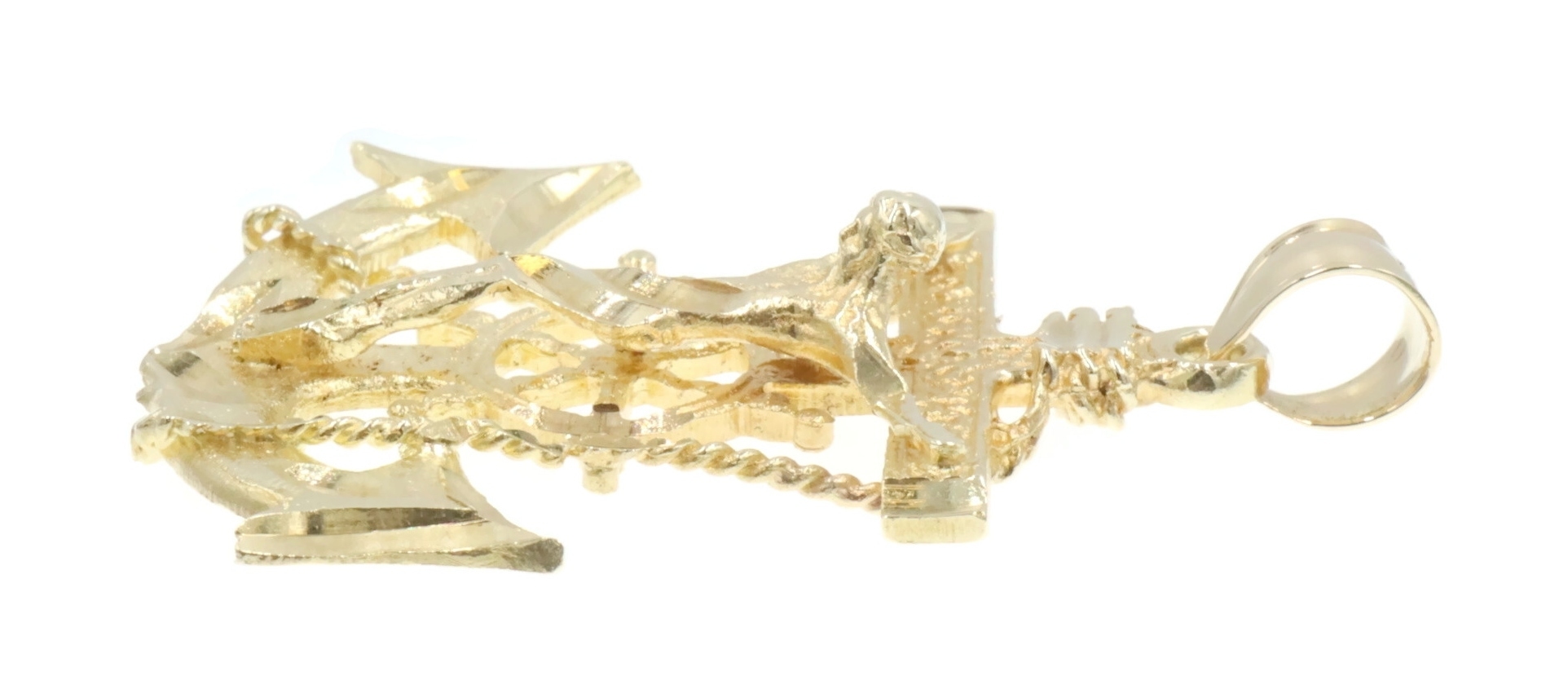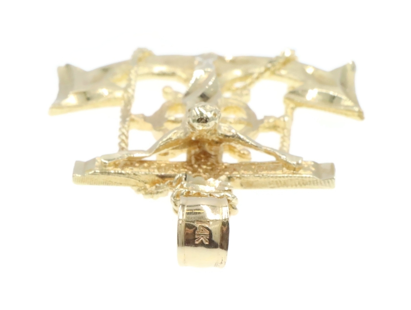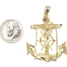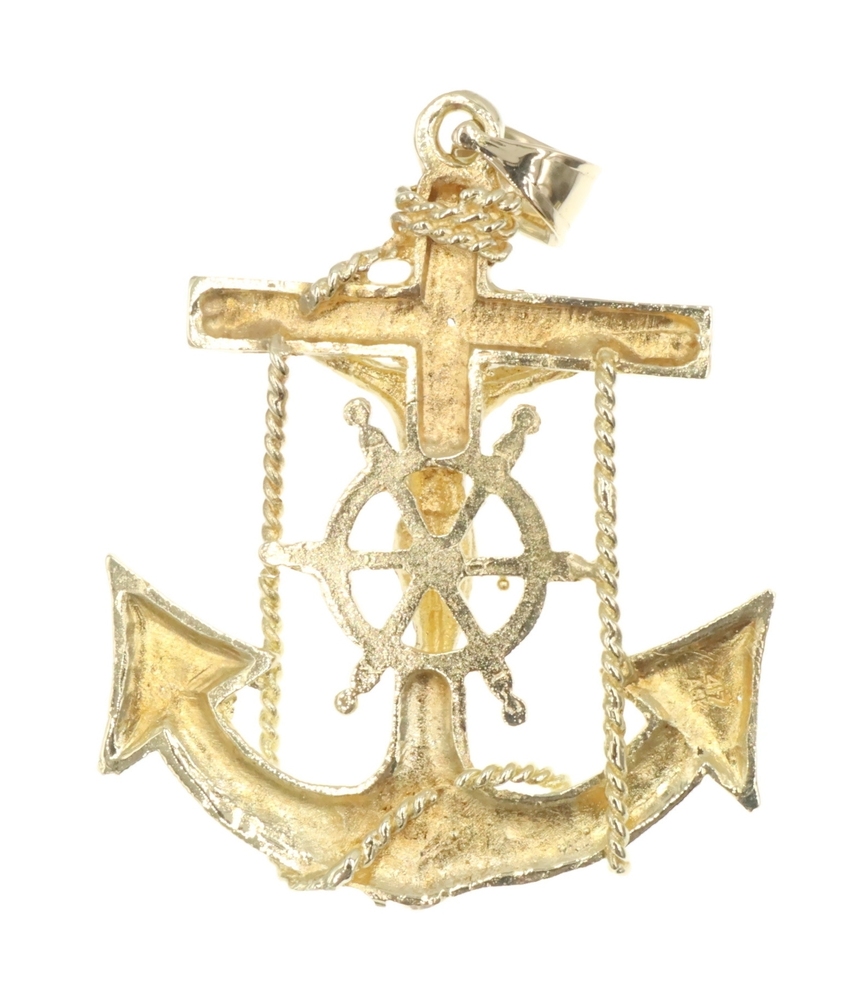 Religious Diamond-Cut 10KT Yellow Gold Anchor Crucifix Cross Pendant 1.6" - 6.1g. This pendant is approximately 42.6mm in length (including the bail) and 30.5mm in width. This pendant is made with 10KT yellow gold while the bail is made with 14KT yellow gold.