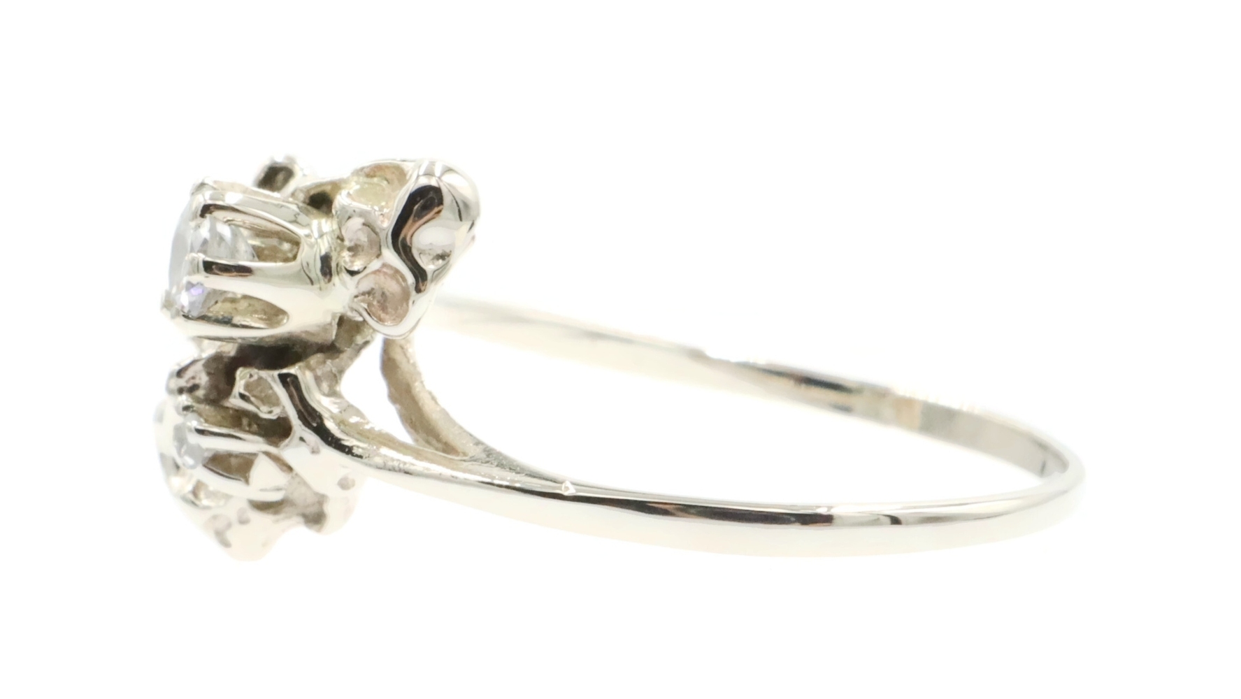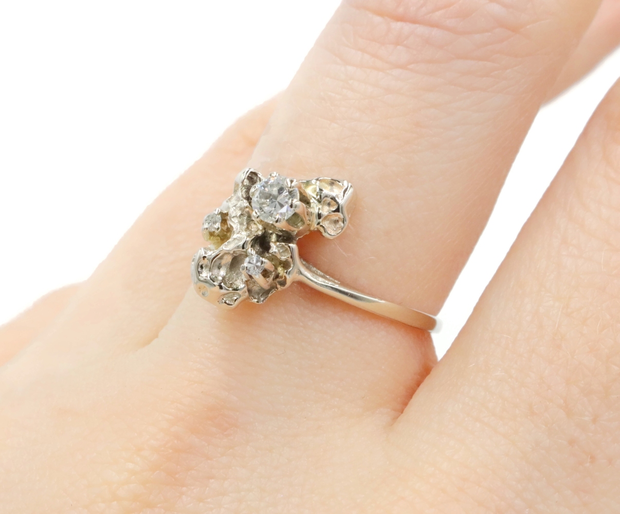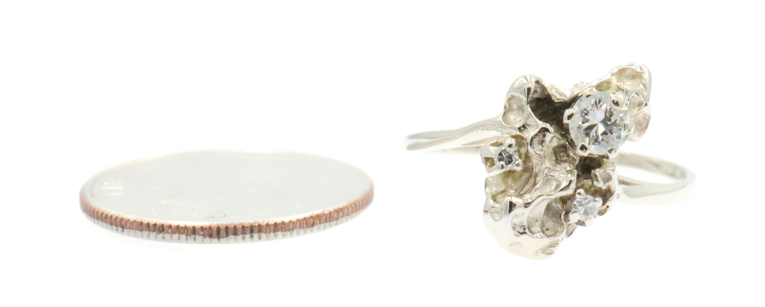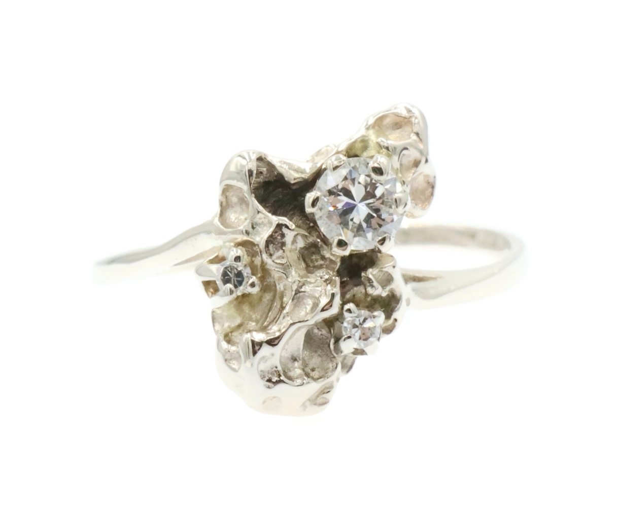 Retro Style 14KT White Gold 3-Stone 0.20 Ctw Round Diamond Nugget Ring 2.22g | USA Pawn