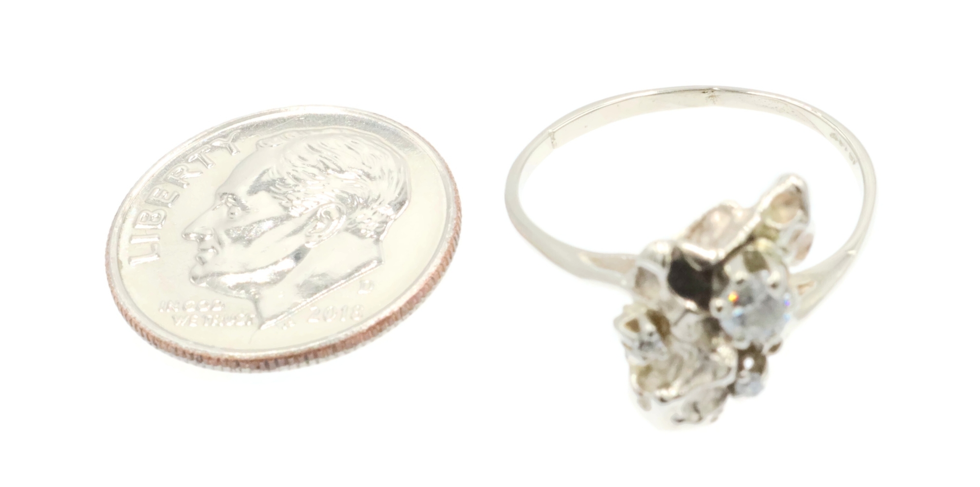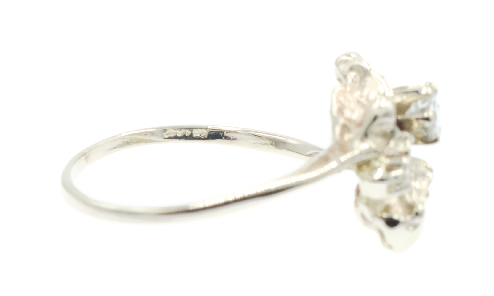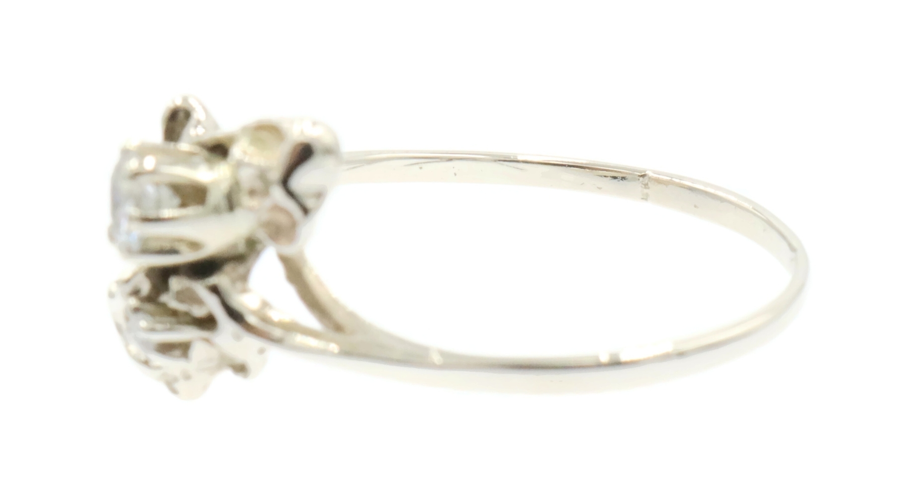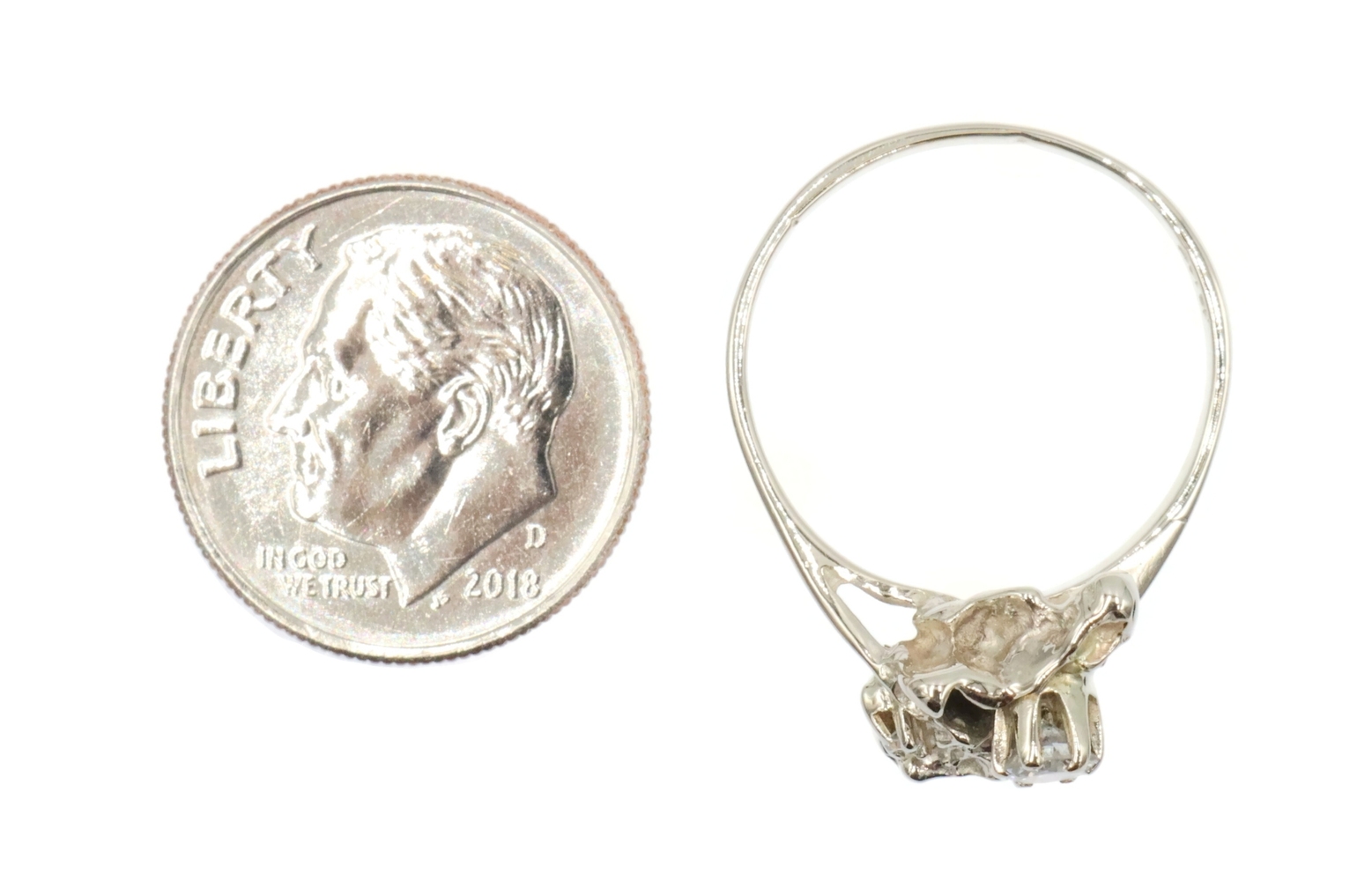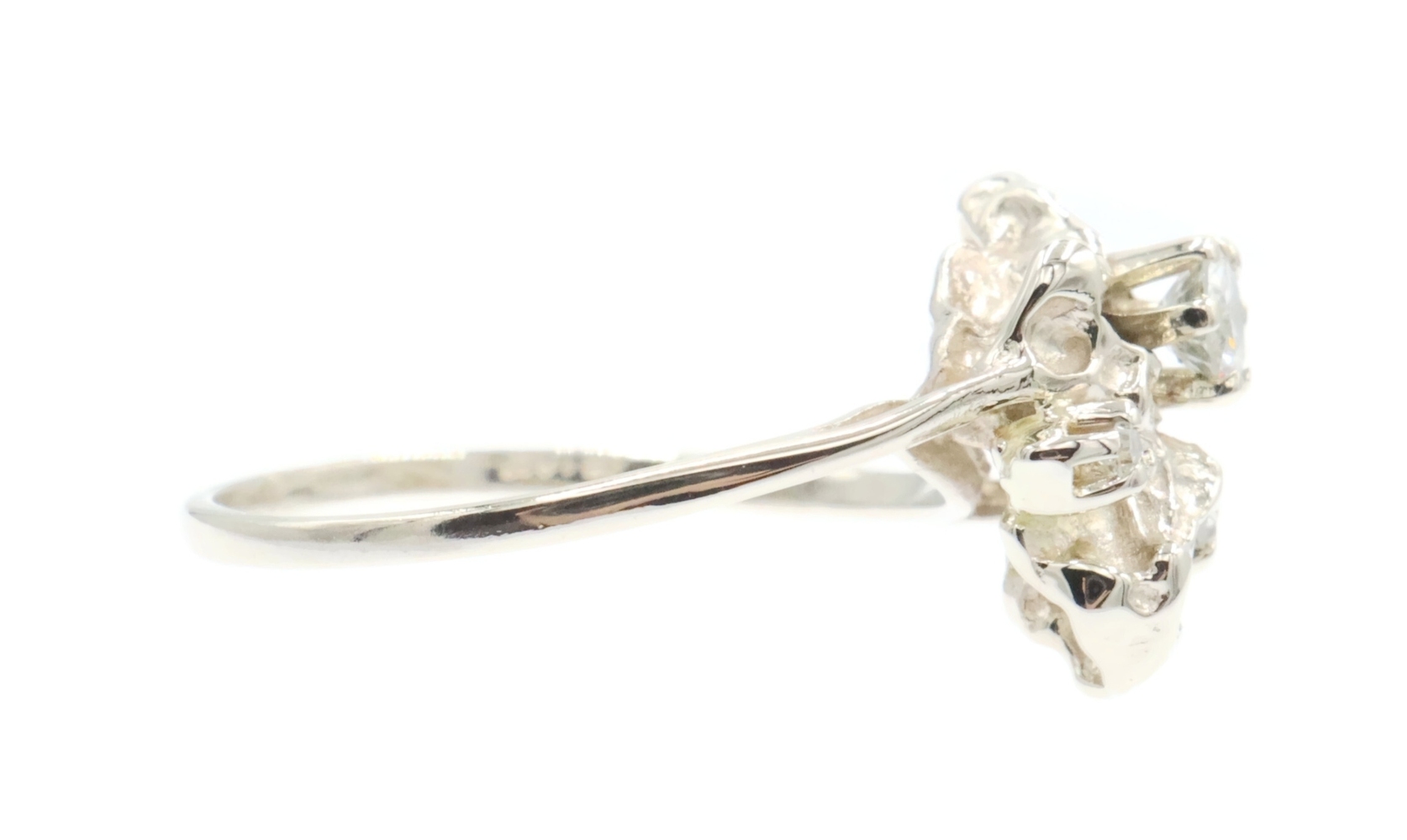 Retro Style 14KT White Gold 3-Stone 0.20 Ctw Round Diamond Nugget Ring 2.22g. This ring is a size 5 3/4.
