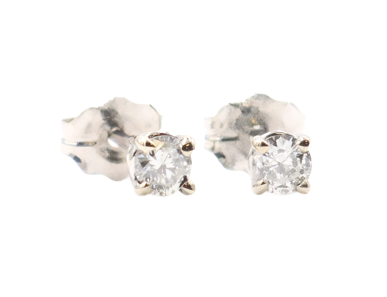 Round Brilliant Cut 1/5 cttw Diamond 14KT White Gold Solitaire Stud Earrings | USA Pawn