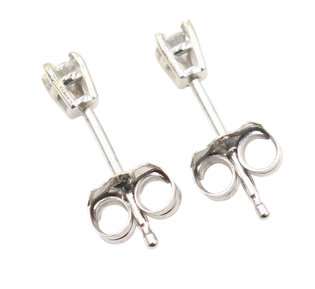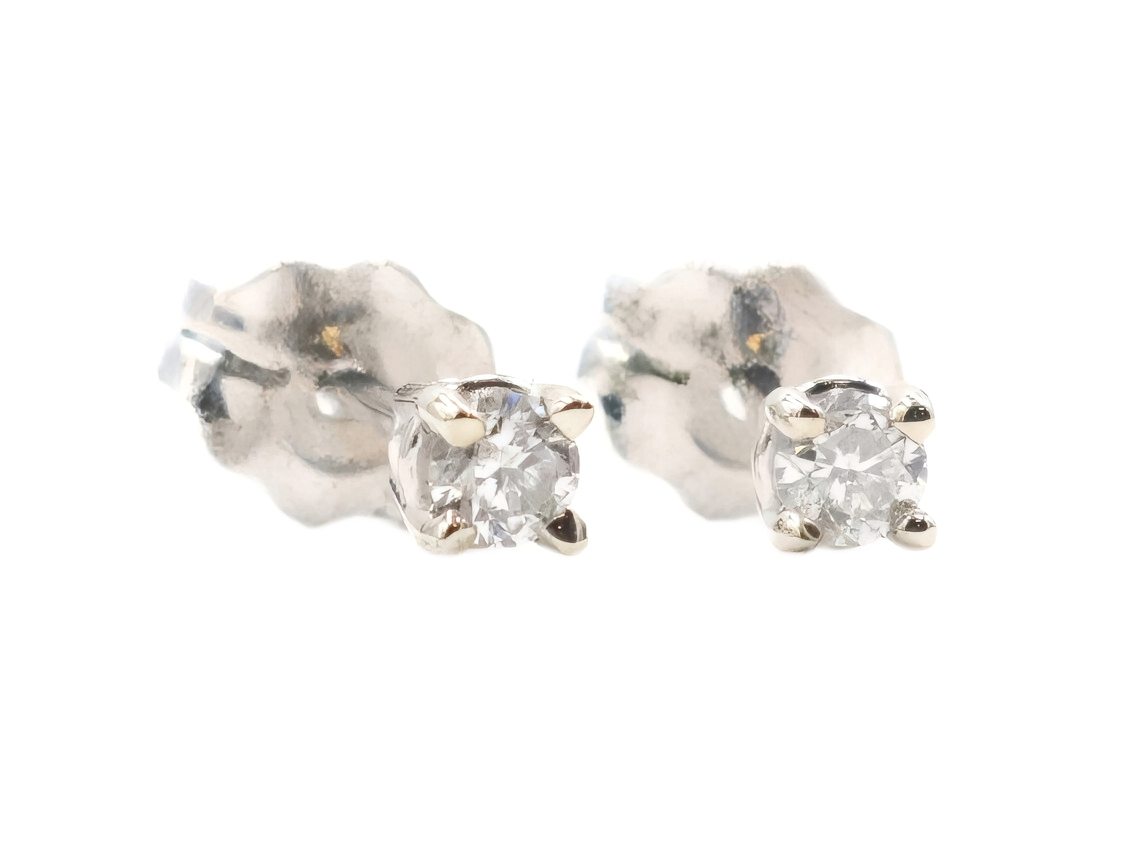 Round Brilliant Cut 1/8 cttw Diamond 14KT White Gold Solitaire Stud Earrings | USA Pawn