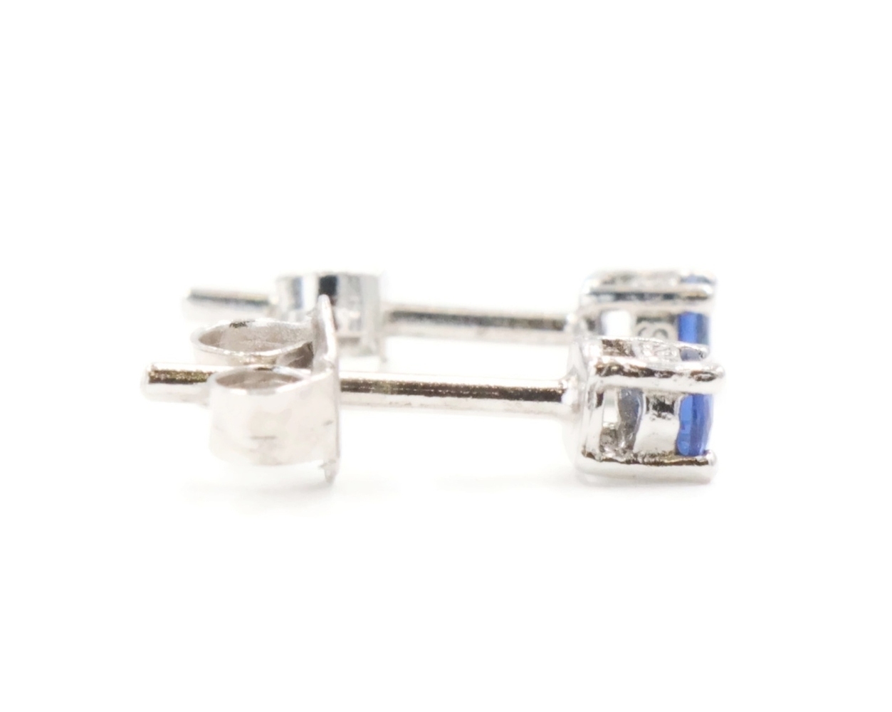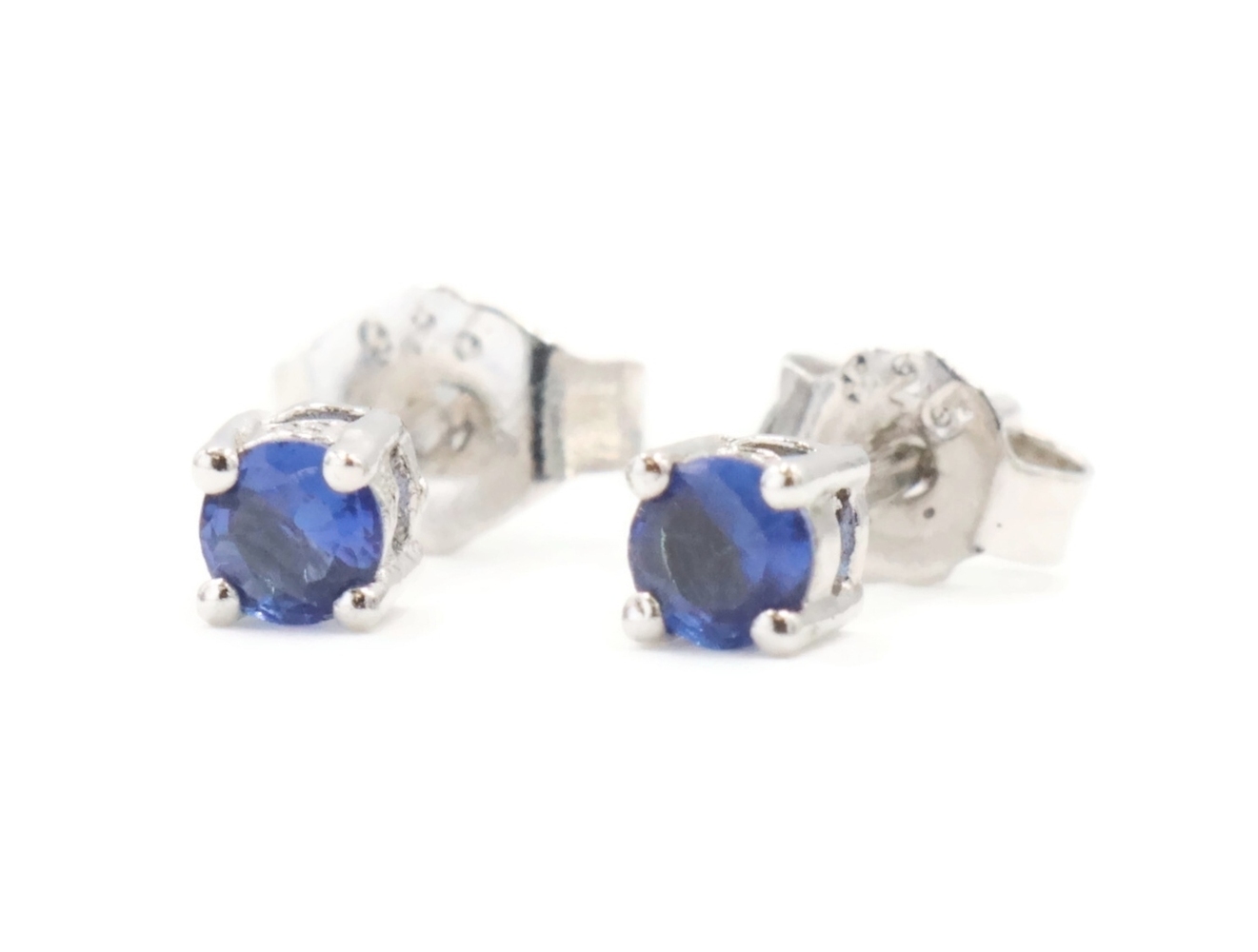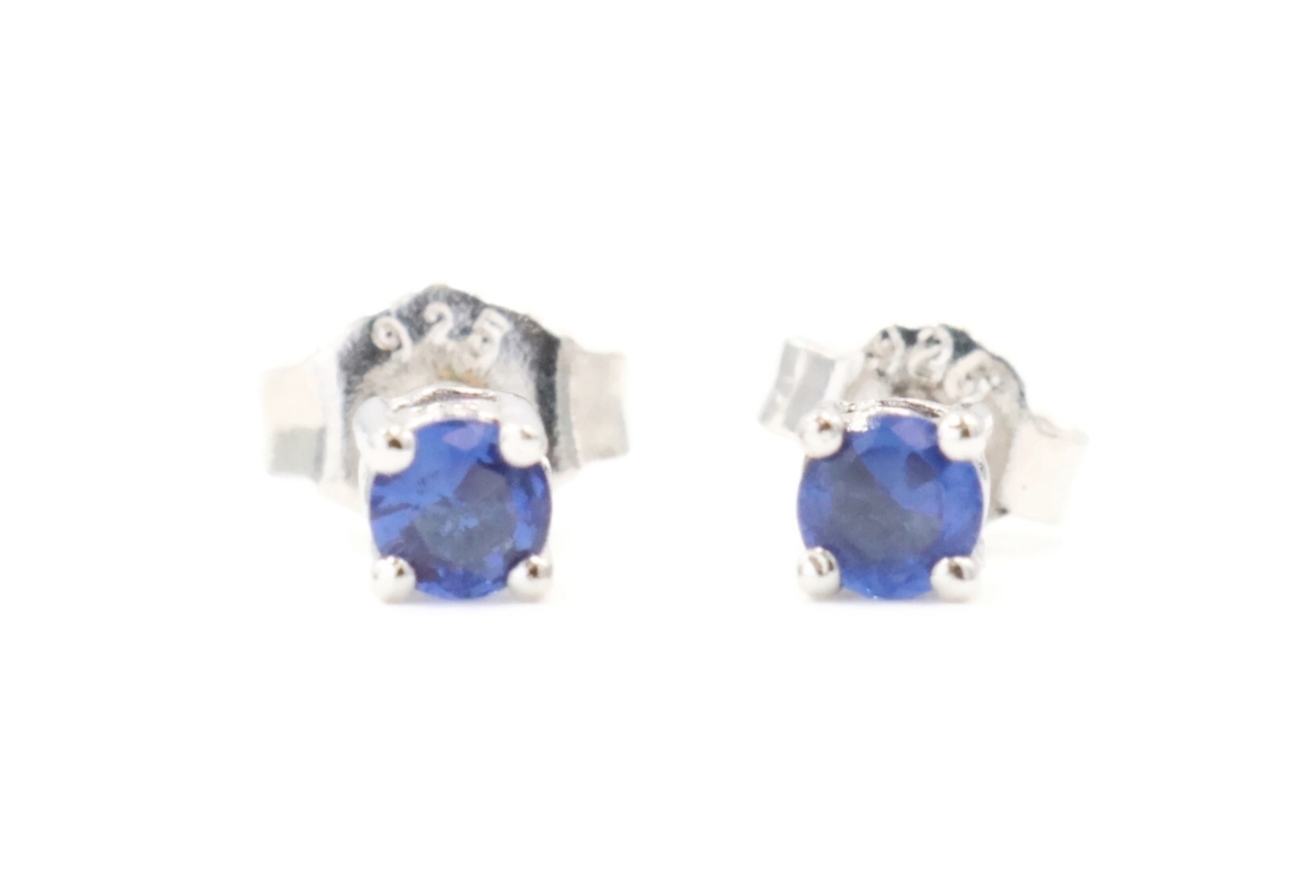 Round Cut Vivid Blue Cubic Zirconia 3.1mm Sterling Silver (925) Stud Earrings. These earrings each have an approximate width of 3.1mm.