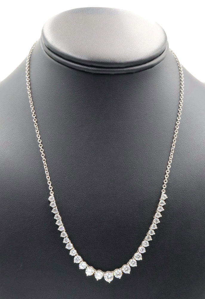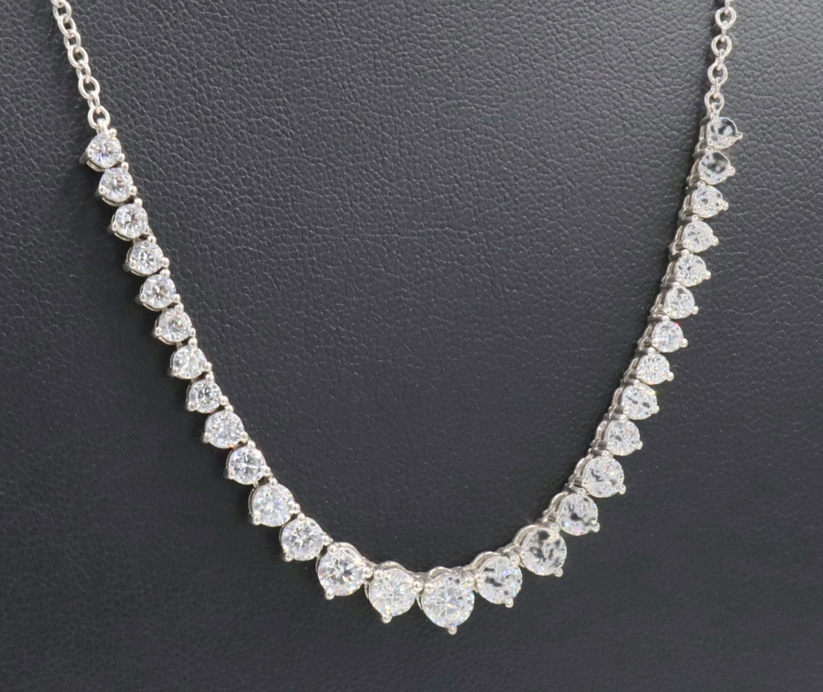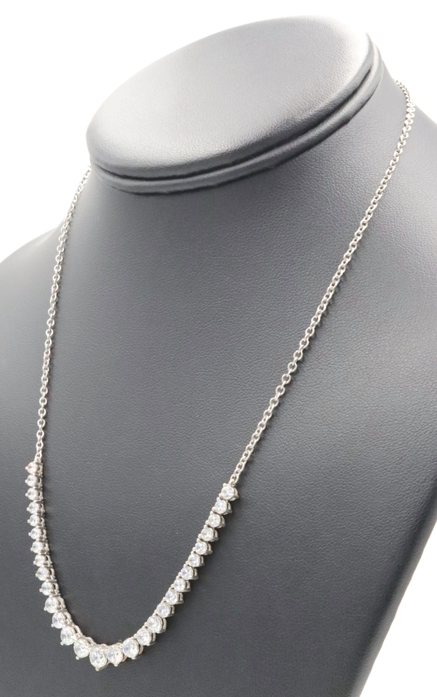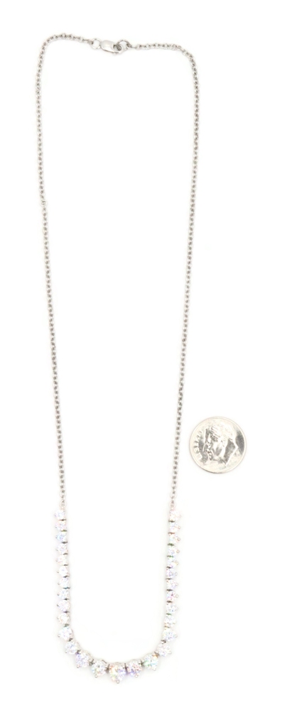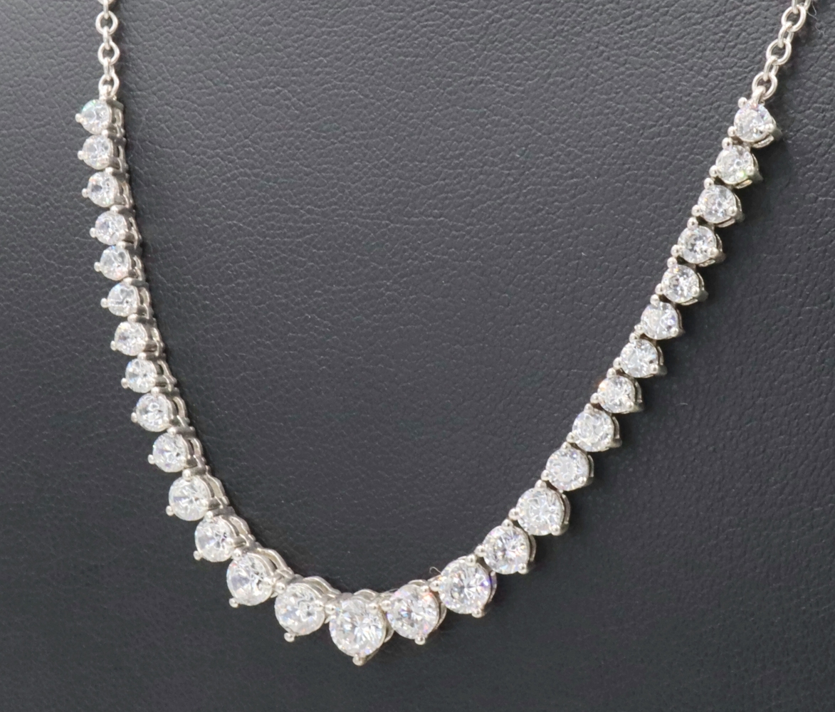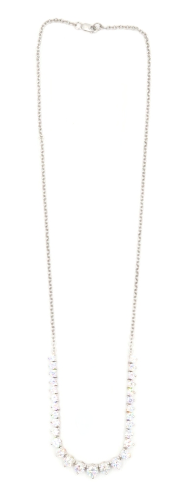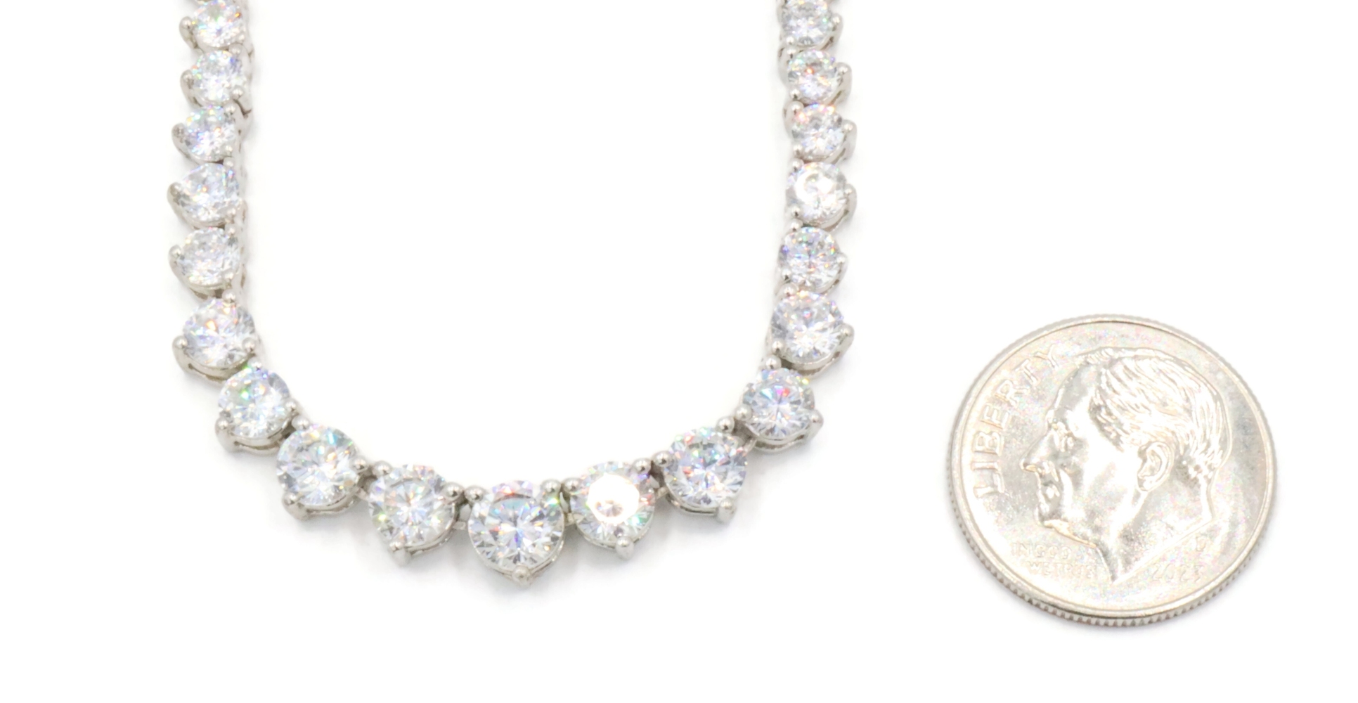 Round Graduated Cubic Zirconia Sterling Silver (925) Cable Chain 18" Necklace. This necklace is approximately 18 inches in length with a maximum width of 10.8mm.