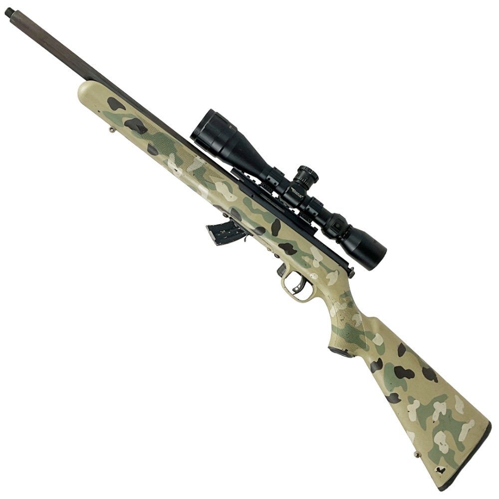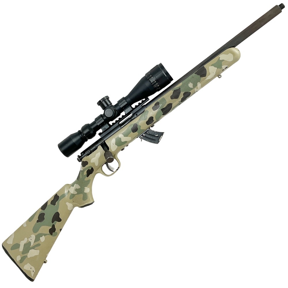 Savage Mark II .22LR Cal. Bolt Action Rifle, Camo Finish with BSA Sweet 22 4-12x40 Scope