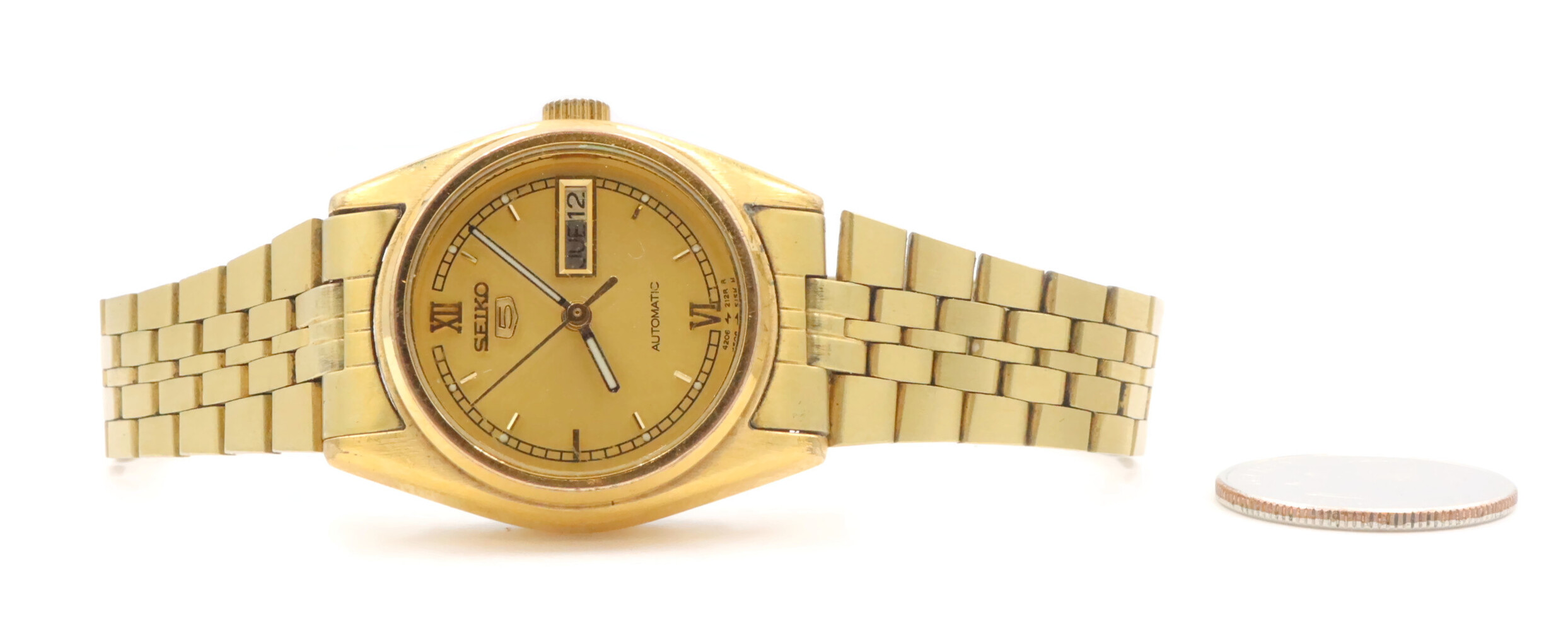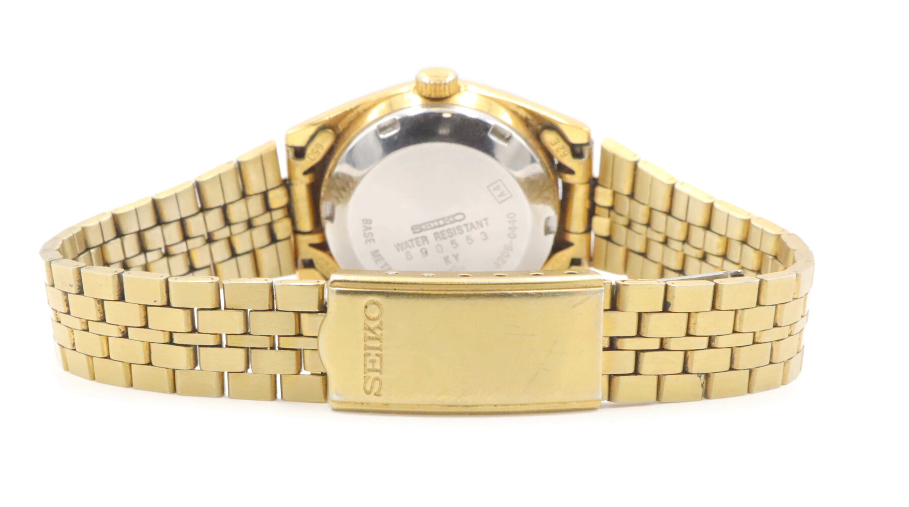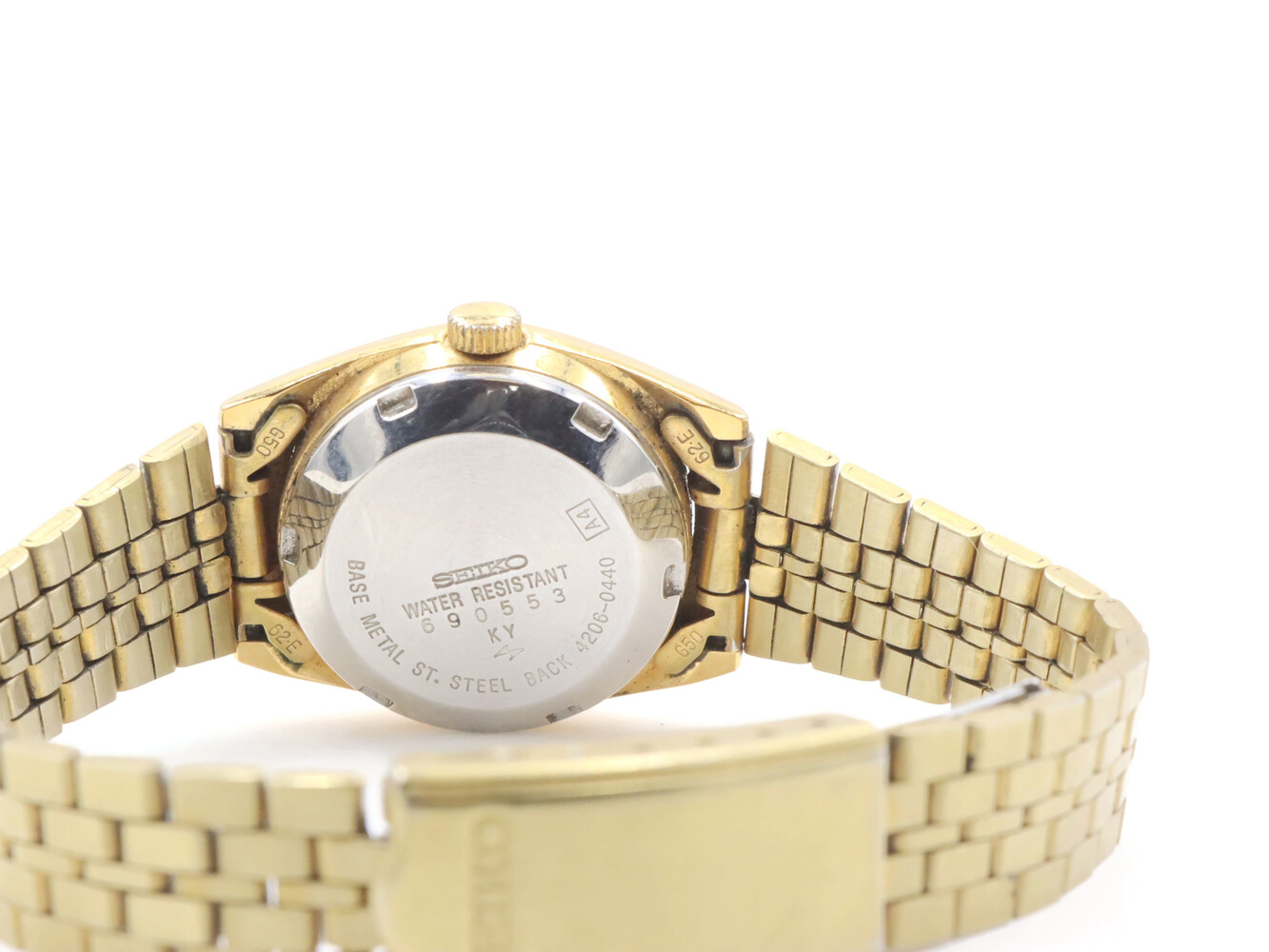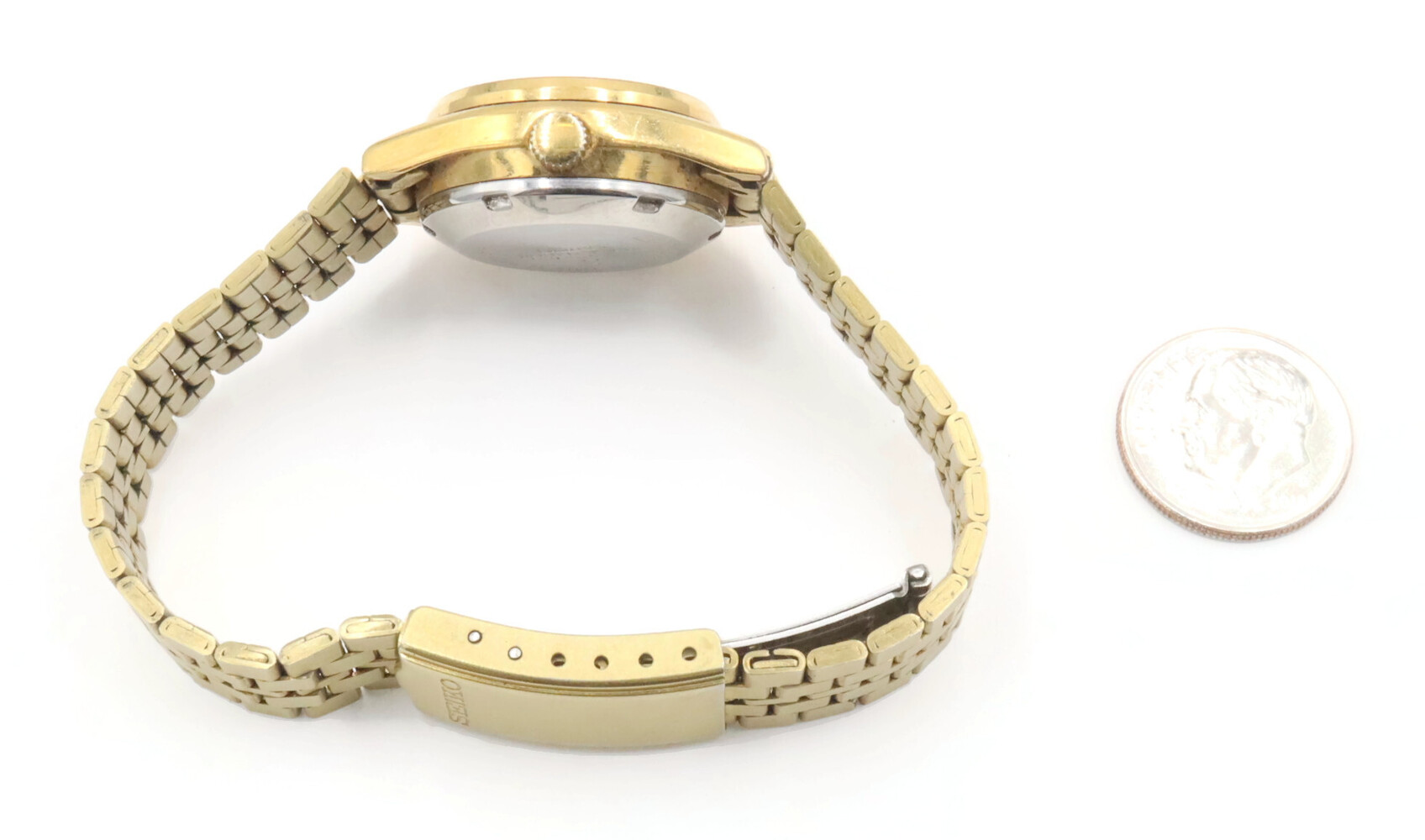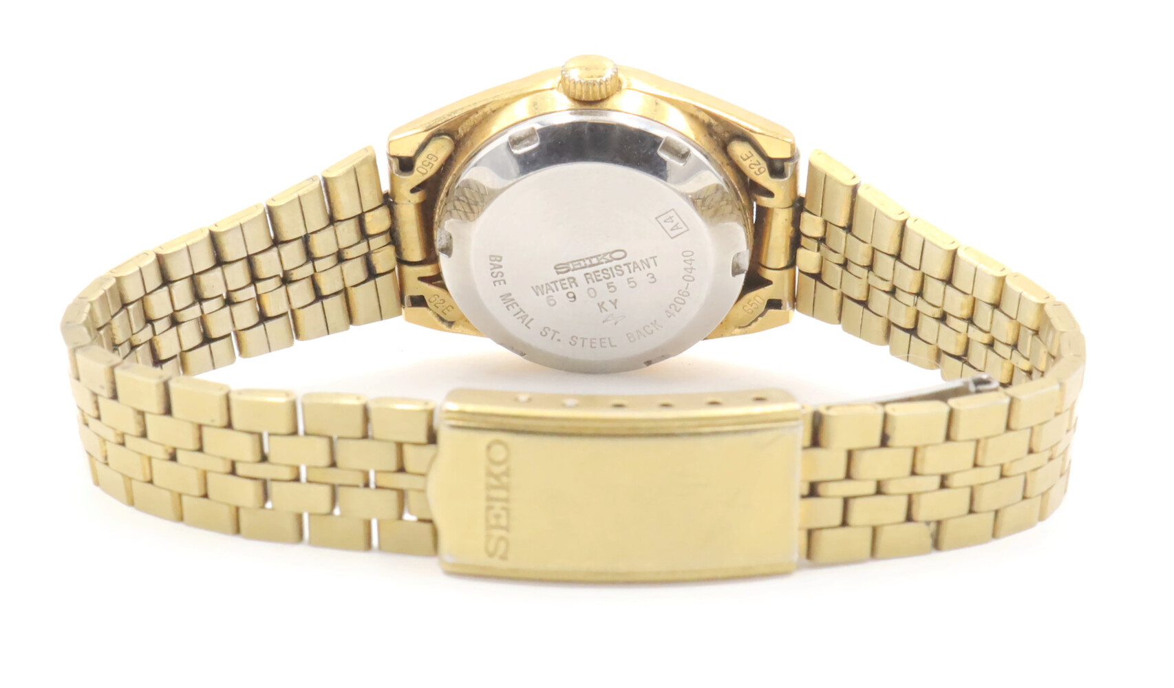 Seiko Women's Gold Toned Bracelet Band Analog 24mm Watch Model: 4206-0440. This bracelet has a total wearable length of 6.5".