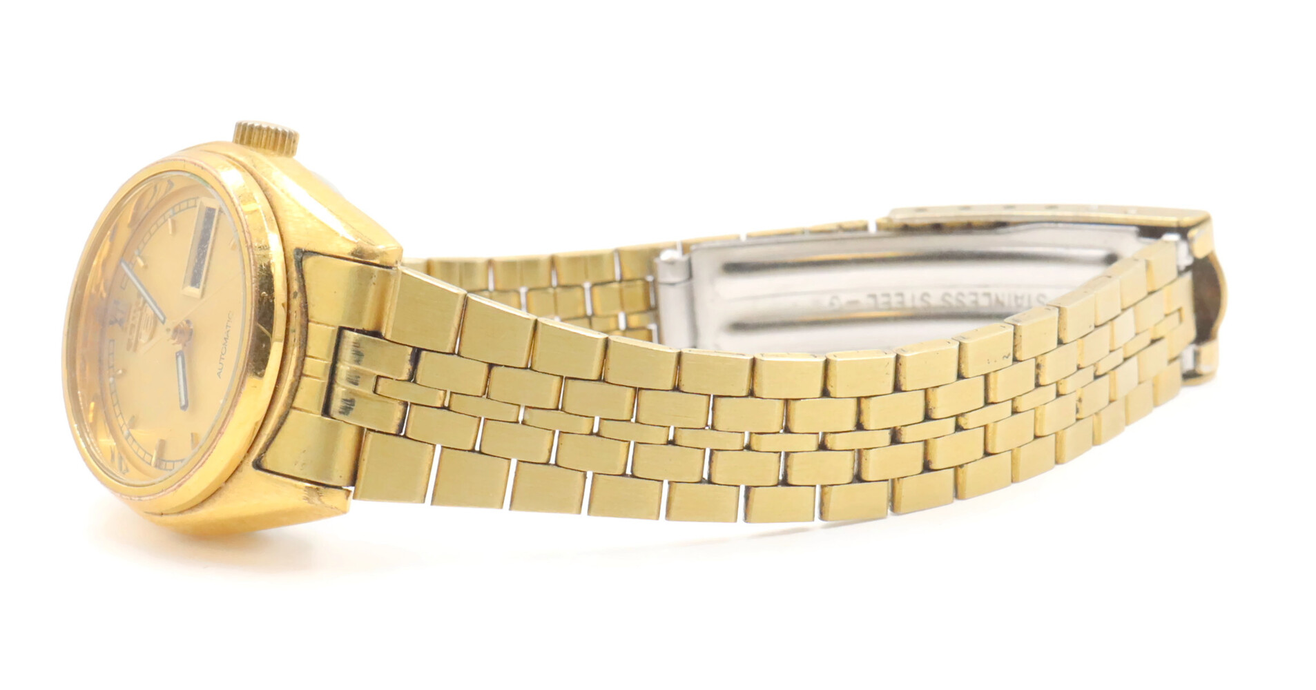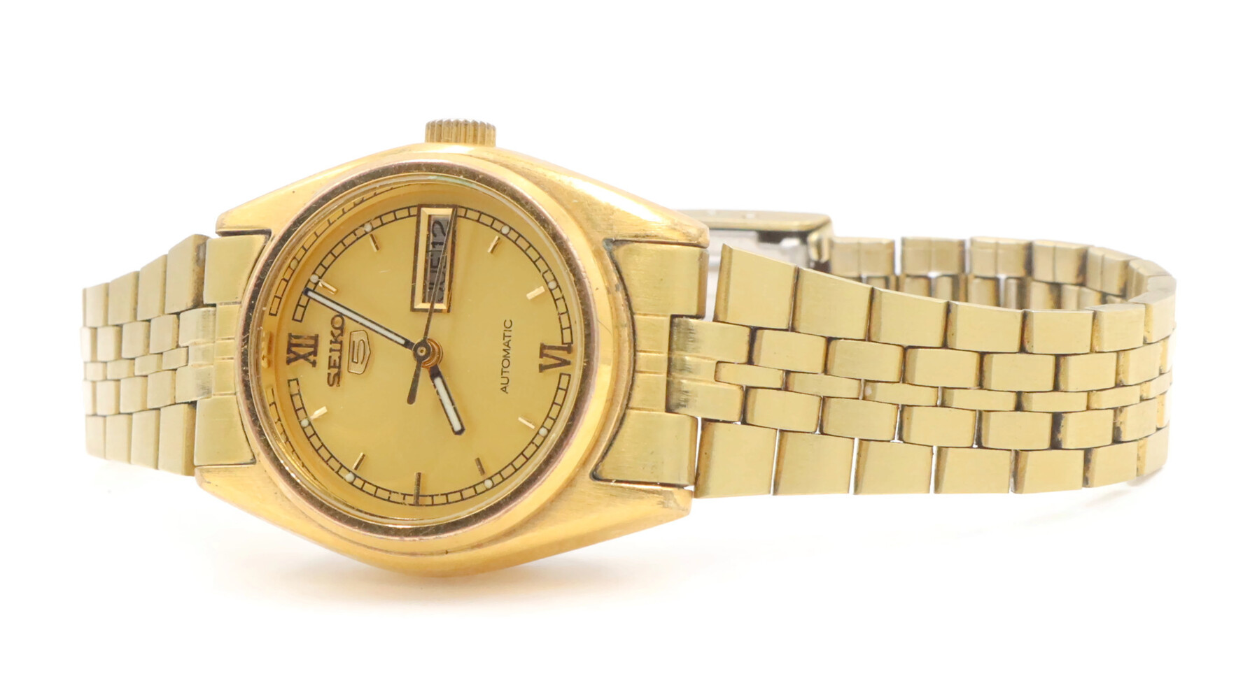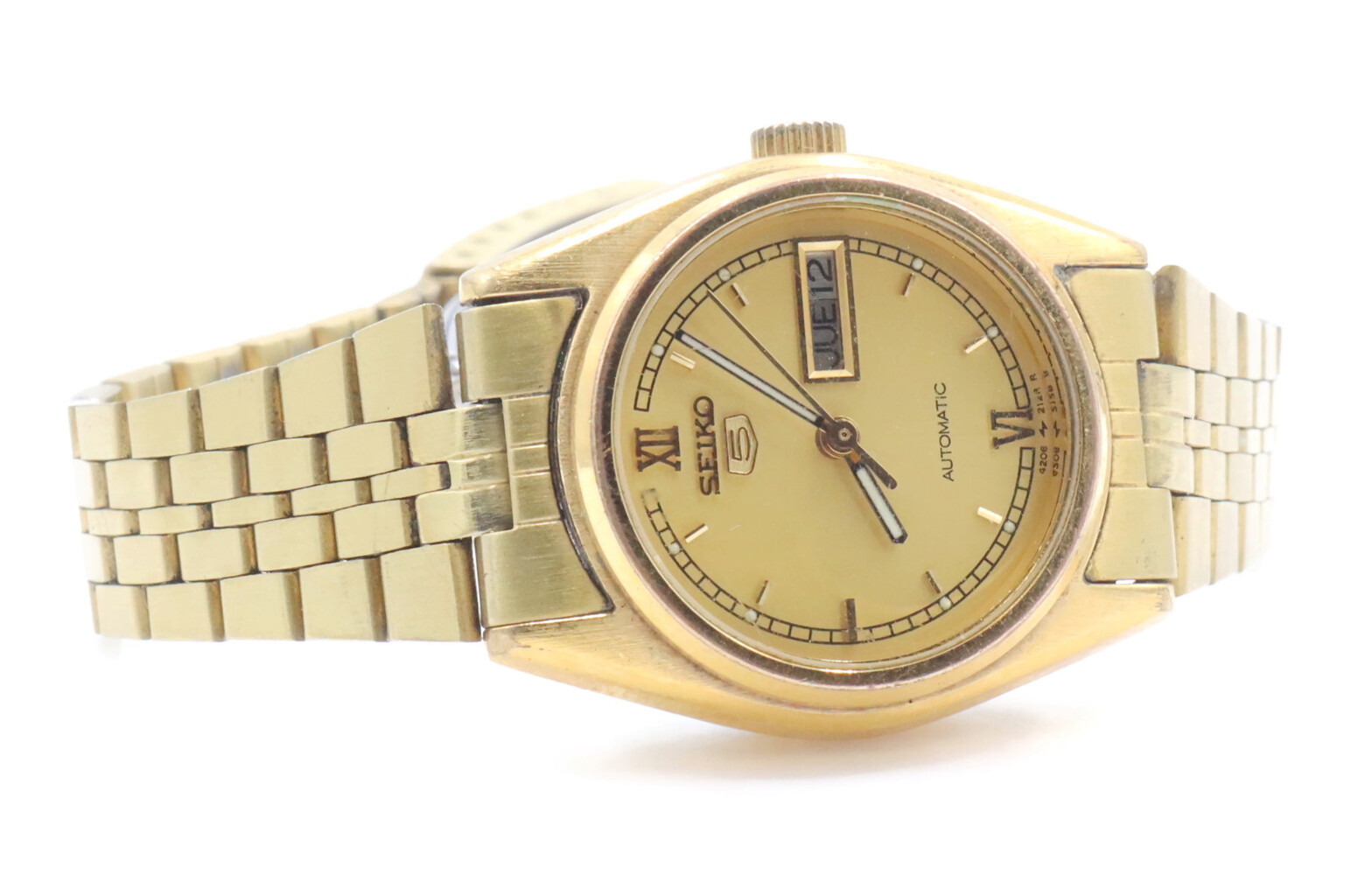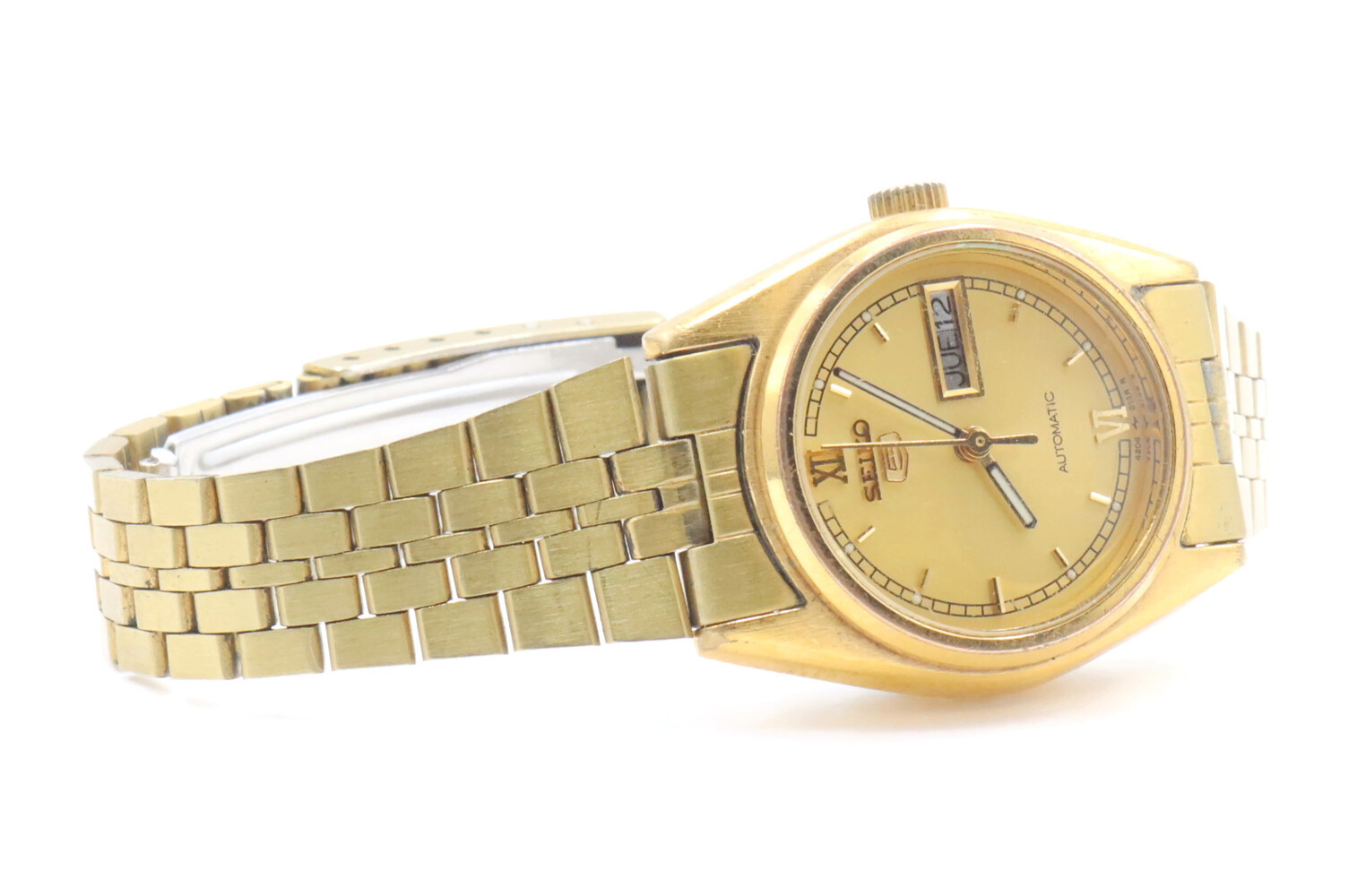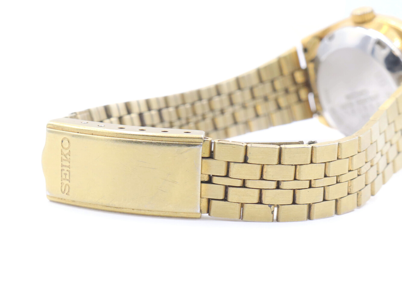 Seiko Women's Gold Toned Bracelet Band Analog 24mm Watch Model: 4206-0440. This bracelet has a total wearable length of 6.5".