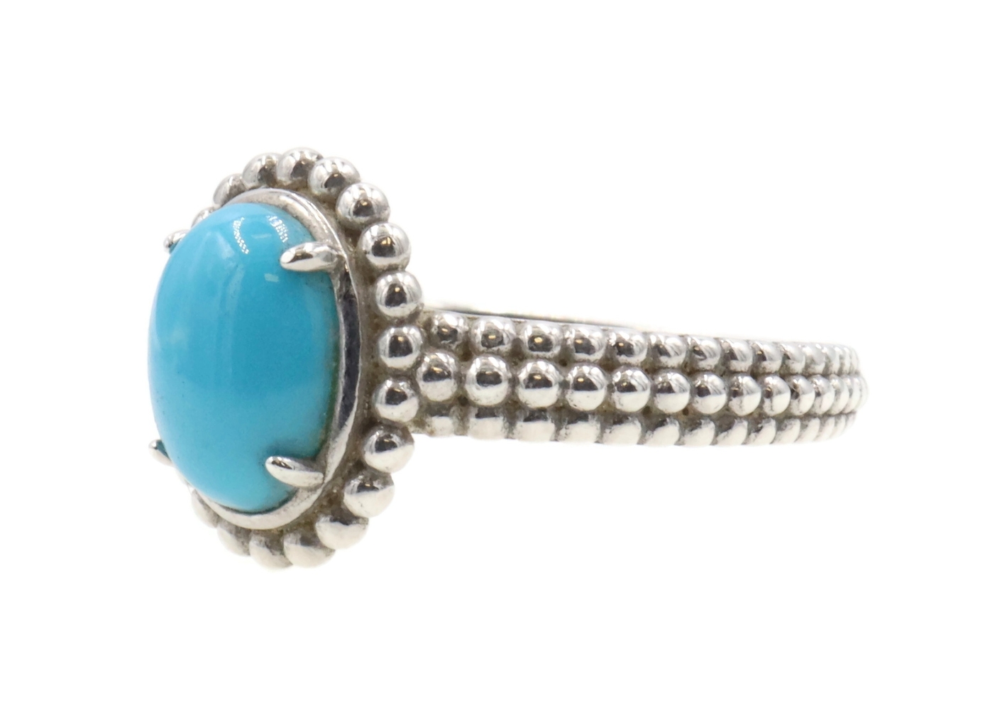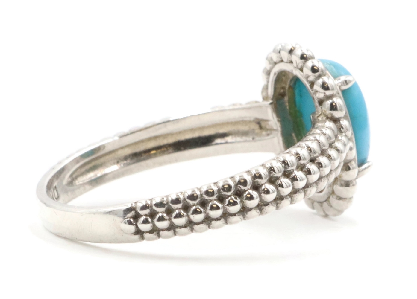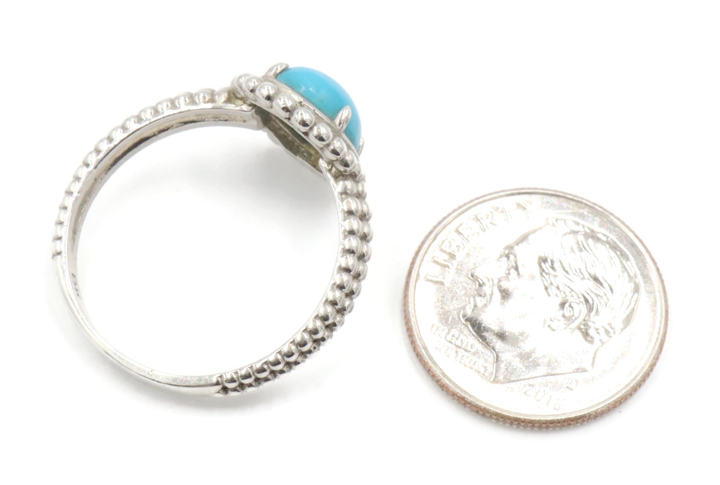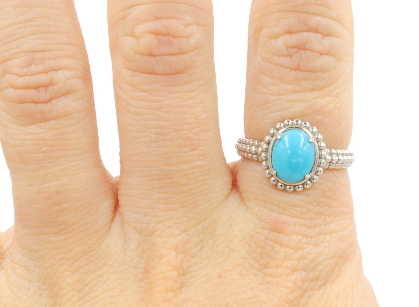 9x7mm Sleeping Beauty Turquoise Rhodium Over Sterling Silver Ring. This ring is a size 8.