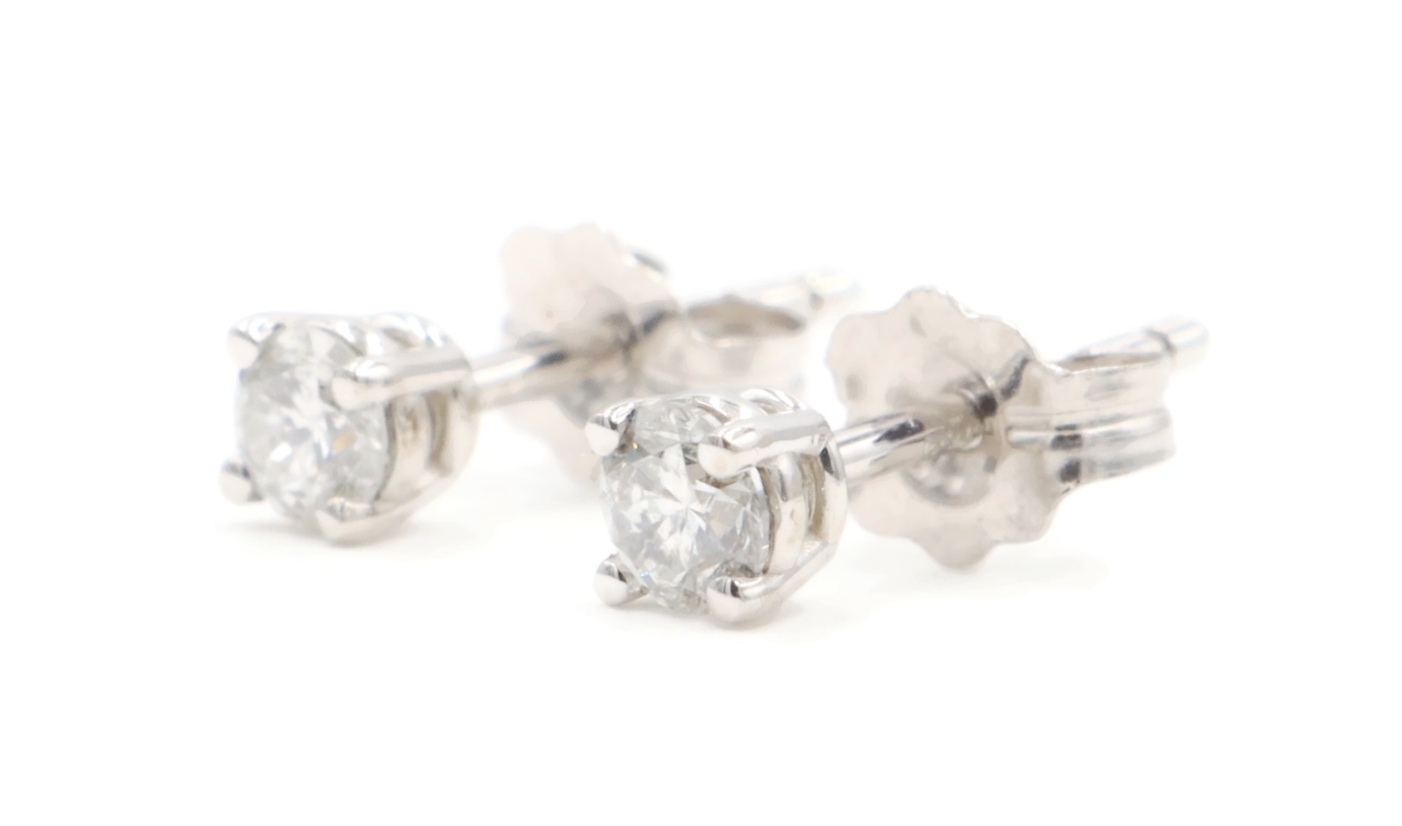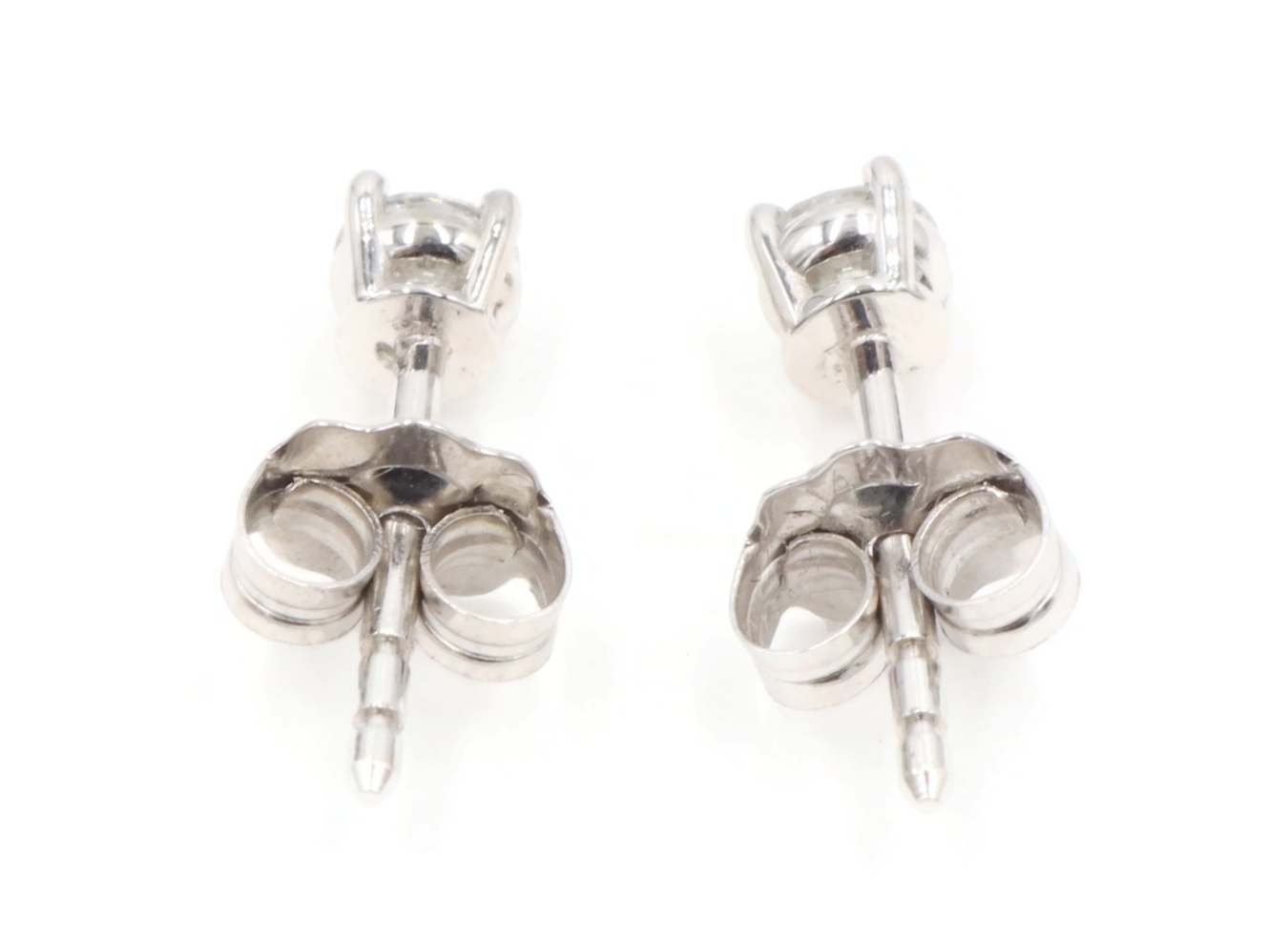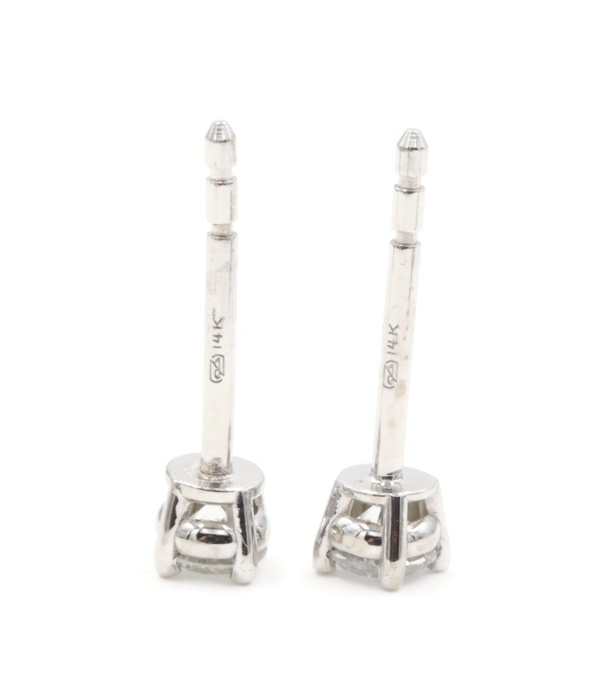 Solitaire 0.22 Ctw Round Cut Diamond 14KT White Gold 3.8mm Classic Stud Earrings | USA Pawn