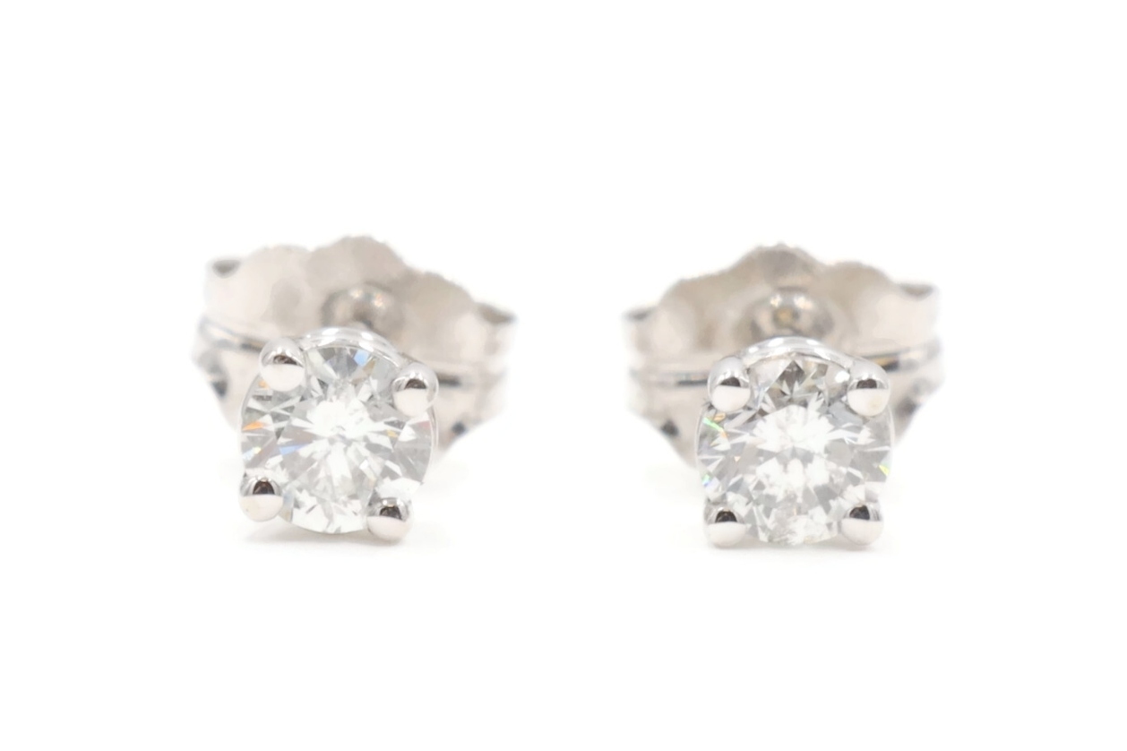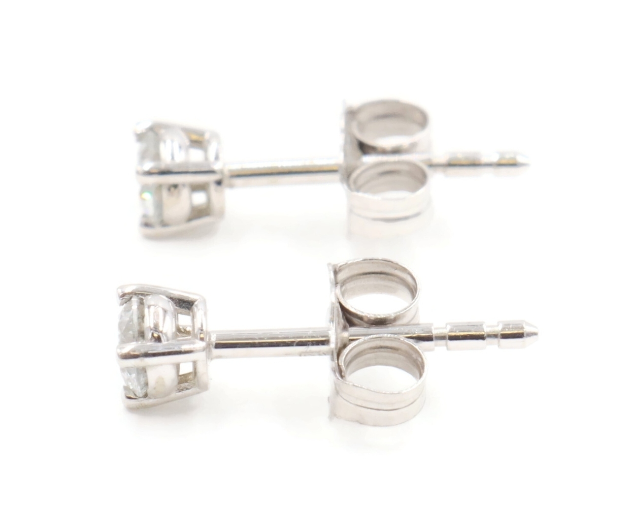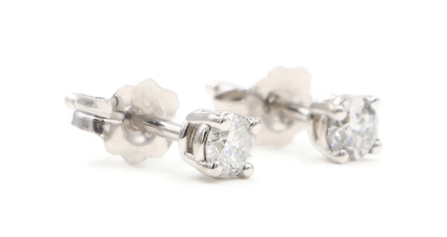 Solitaire 0.22 Ctw Round Cut Diamond 14KT White Gold 3.8mm Classic Stud Earrings | USA Pawn