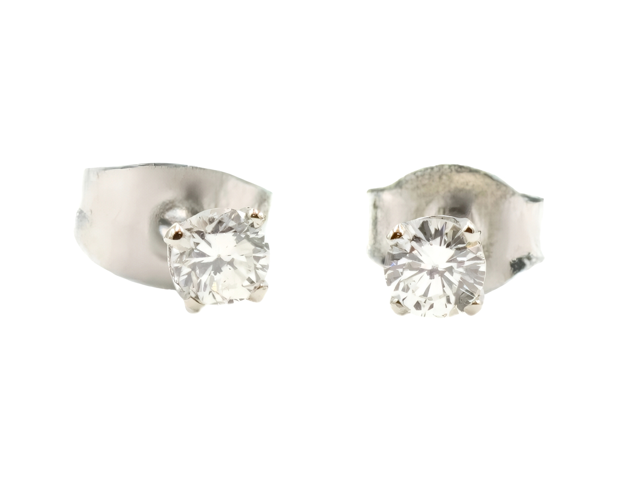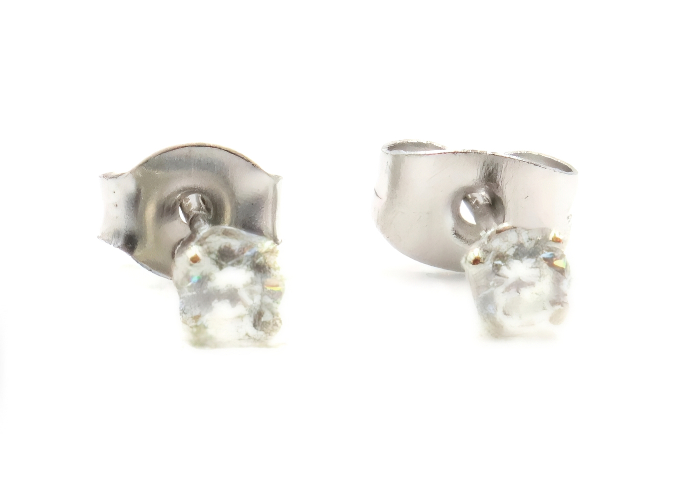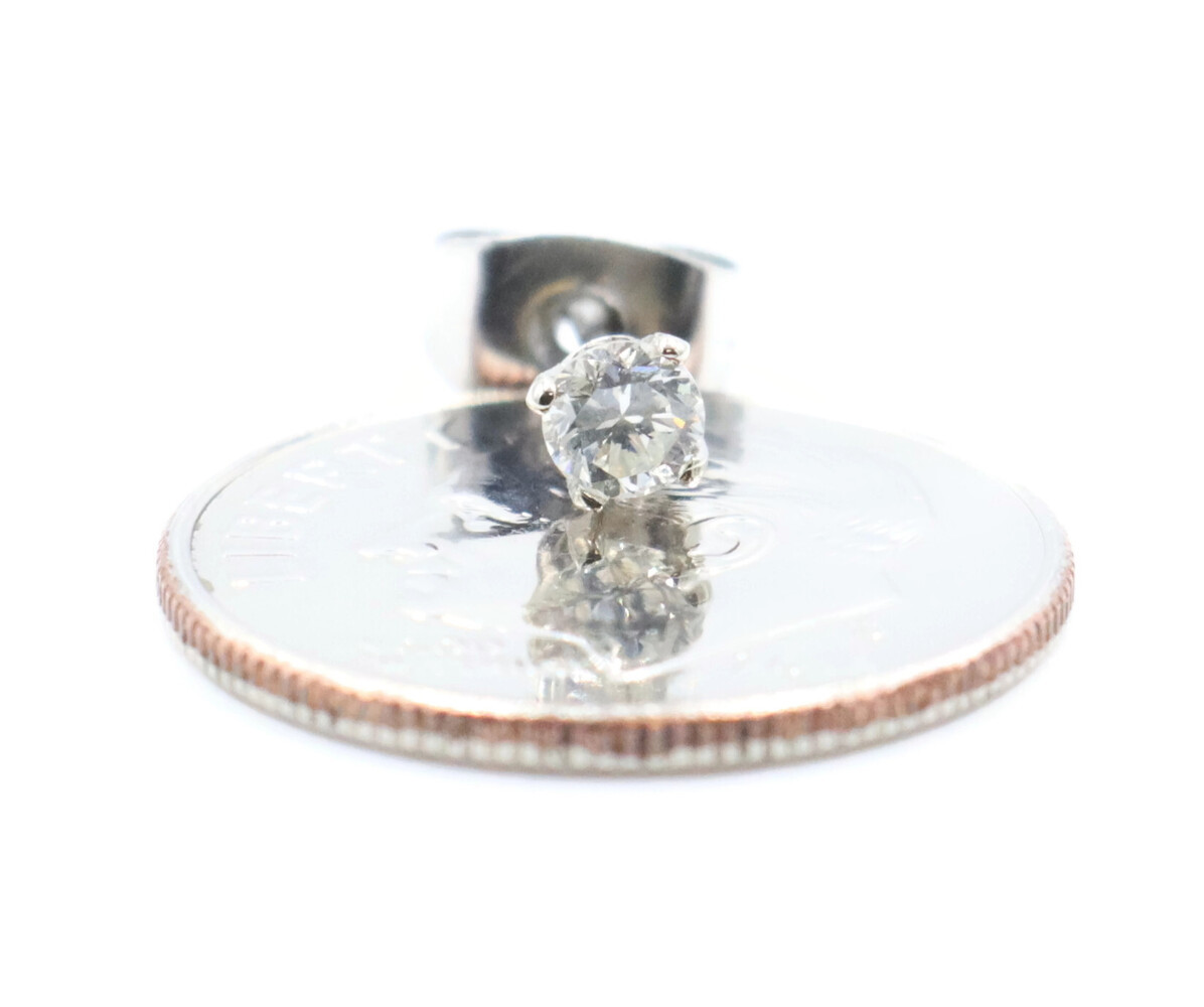 Solitaire 0.25 Ctw Round Cut Diamond 14KT White Gold 3.3mm Classic Stud Earrings. These earrings each have an approximate width of 3.3mm. The push backs are made with an assorted mixed metal.