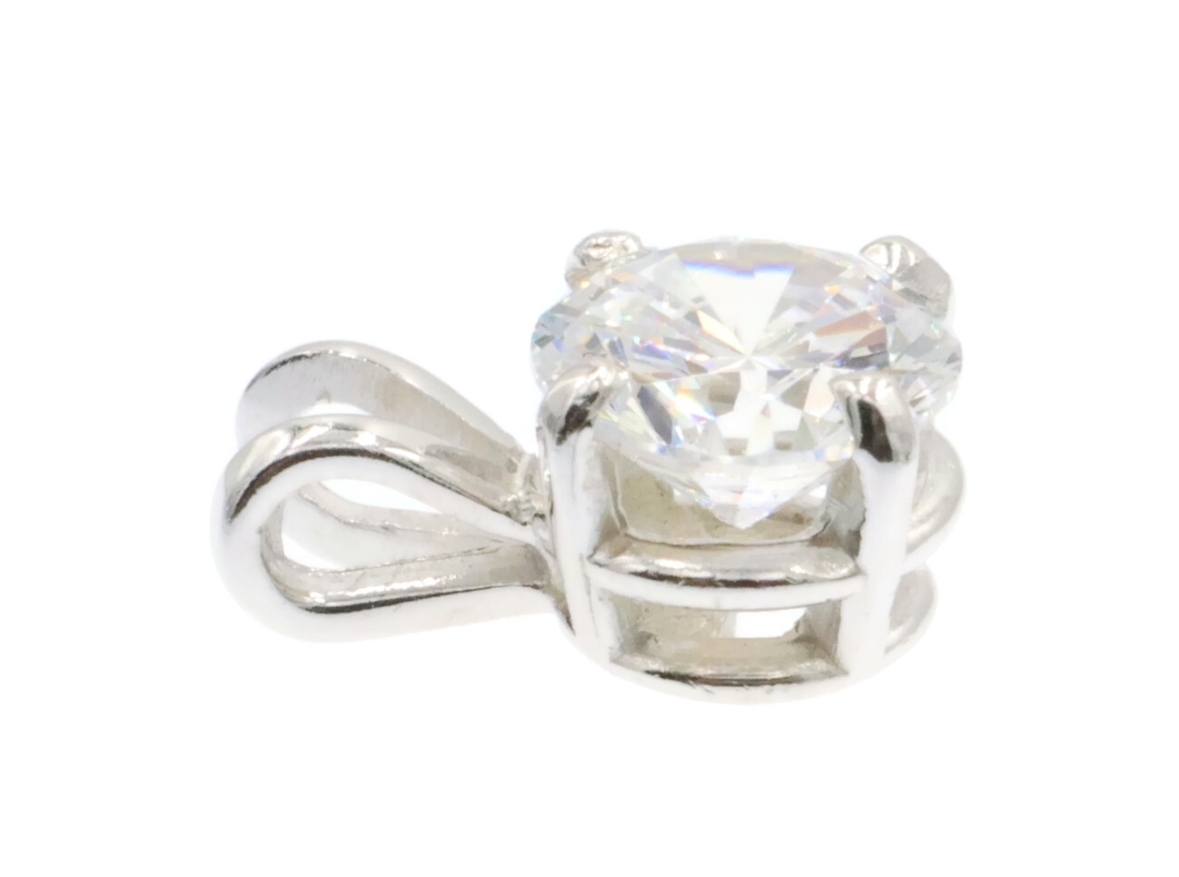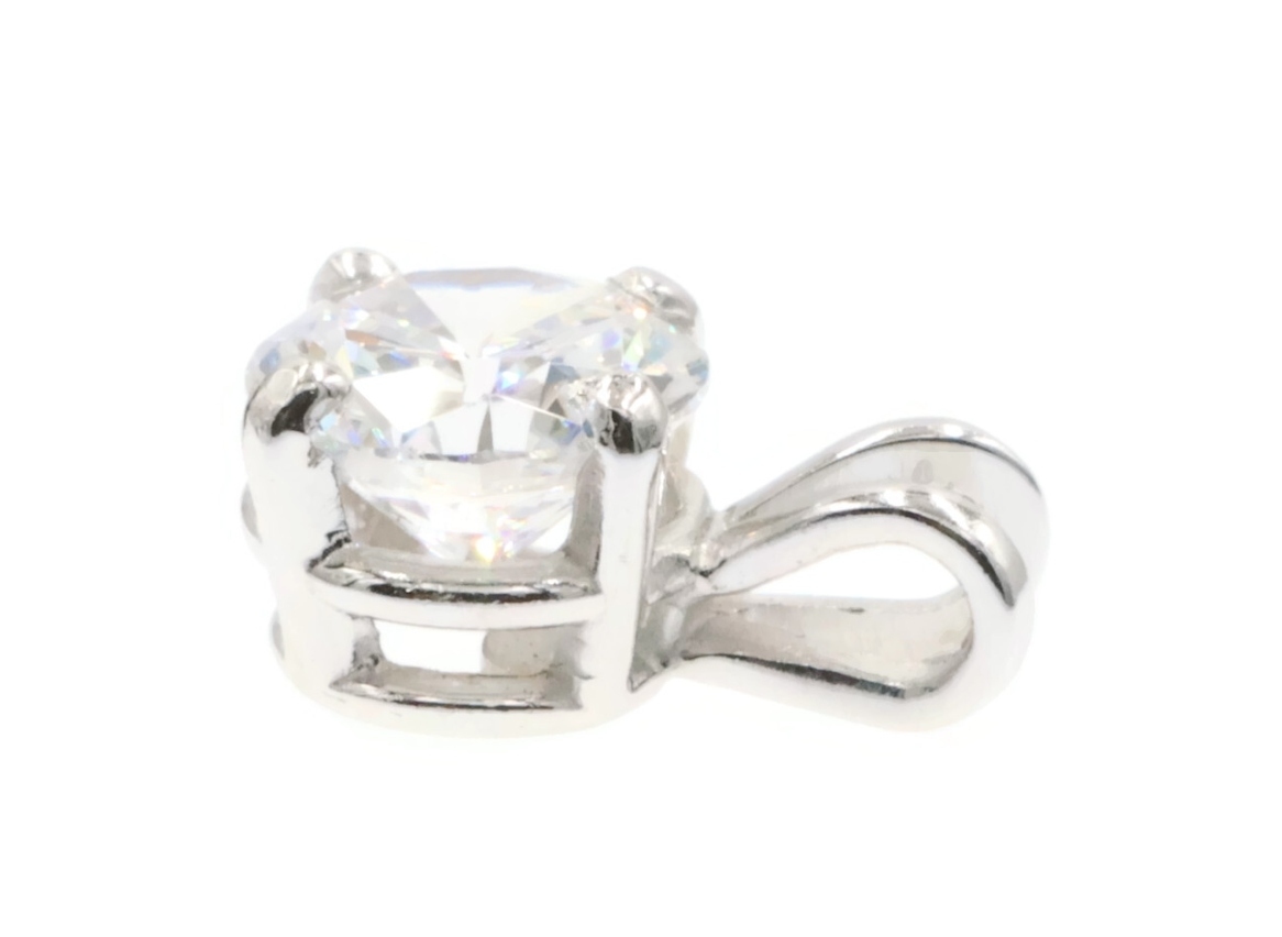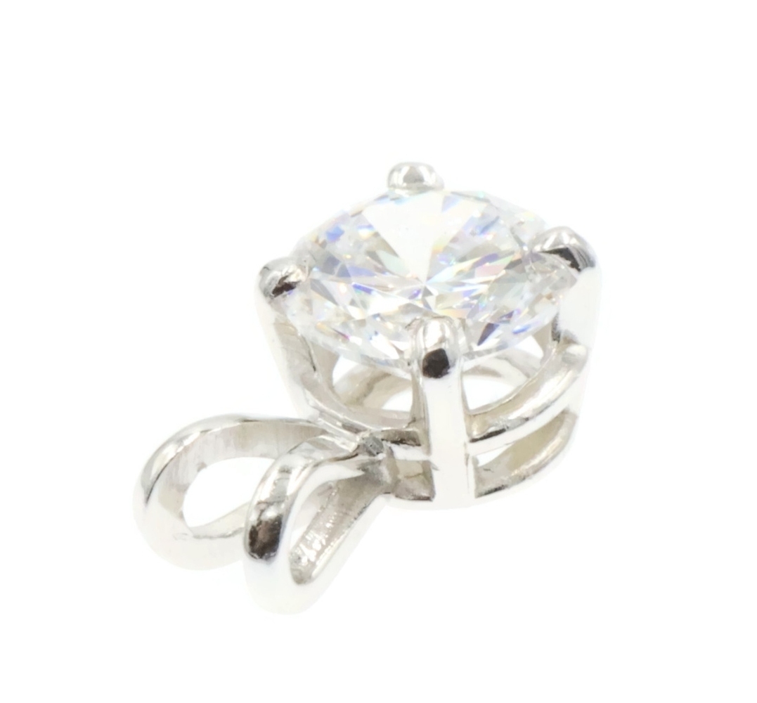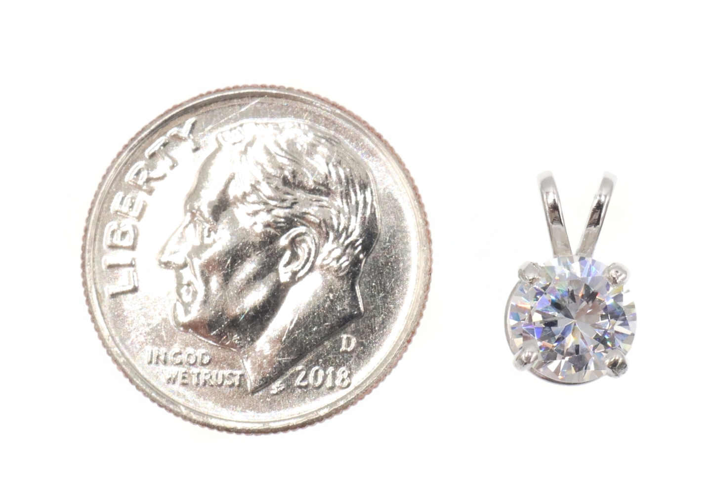Solitaire 1.09 Ct Round Cubic Zirconia 14KT White Gold 10.9mm Necklace Pendant. This pendant is approximately 10.9mm in length (including the bail) and 6.3mm in width.
