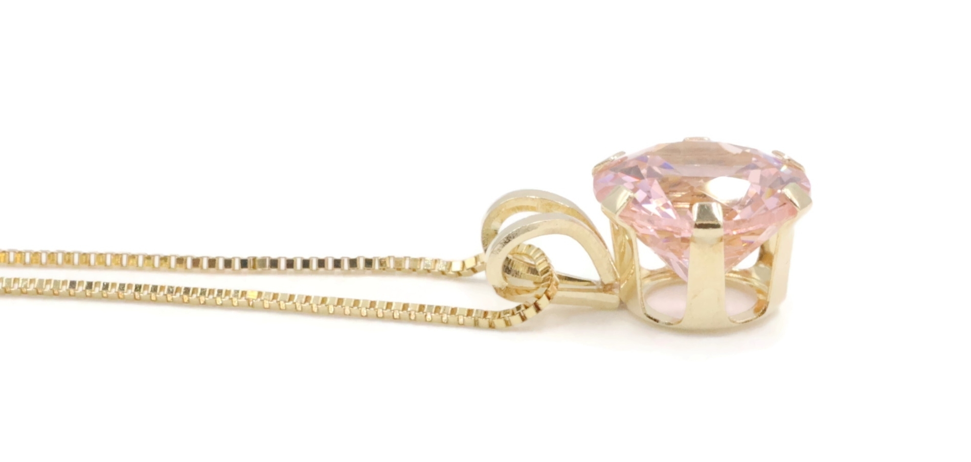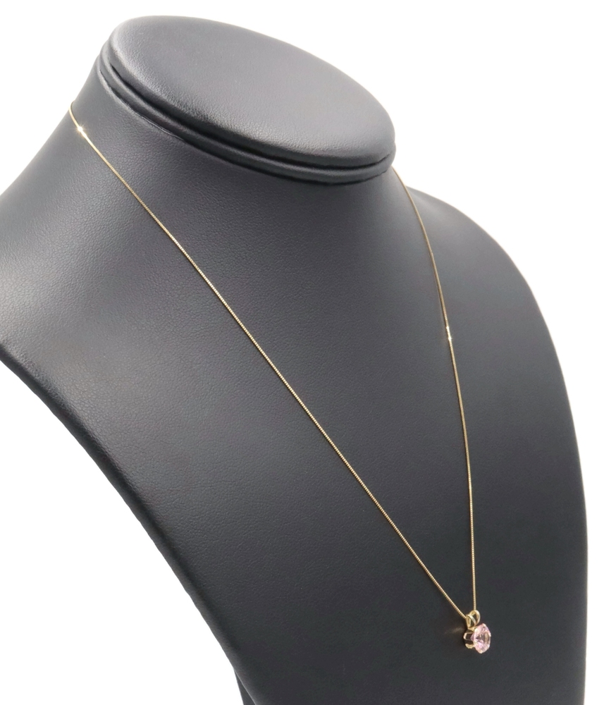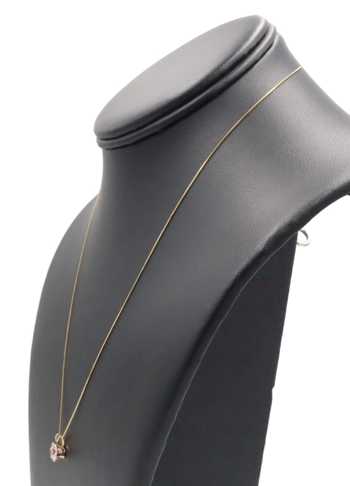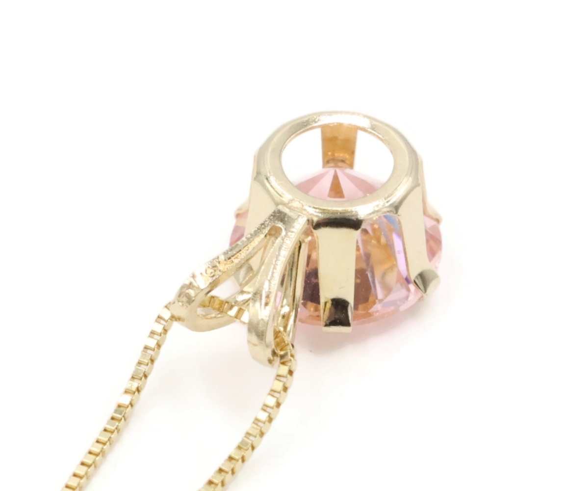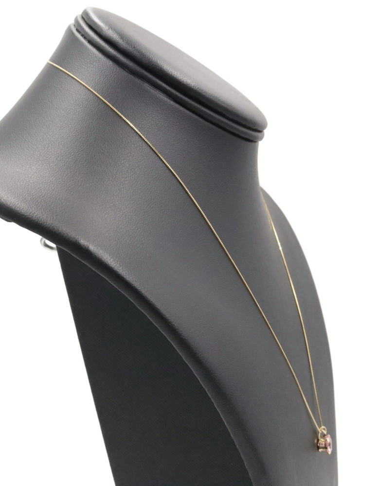 Solitaire 1.40 Ct Pink Synthetic Spinel 14KT Gold Pendant on 14KT Box Chain 18". This pendant is approximately 10.3mm in length (including the bail) and the box chain is approximately 18 inches in length.