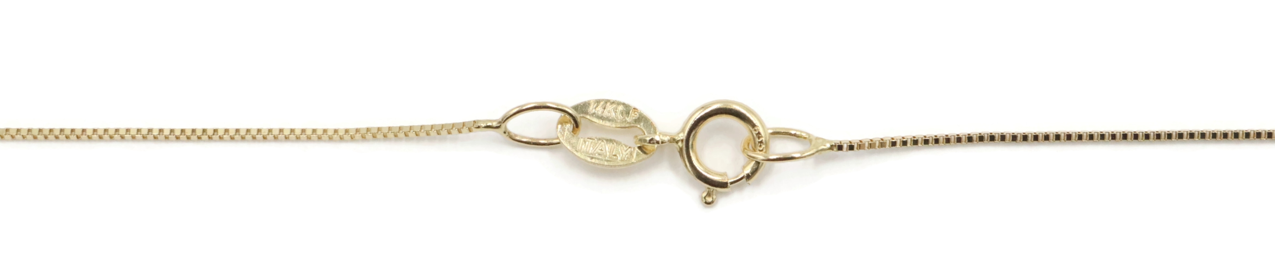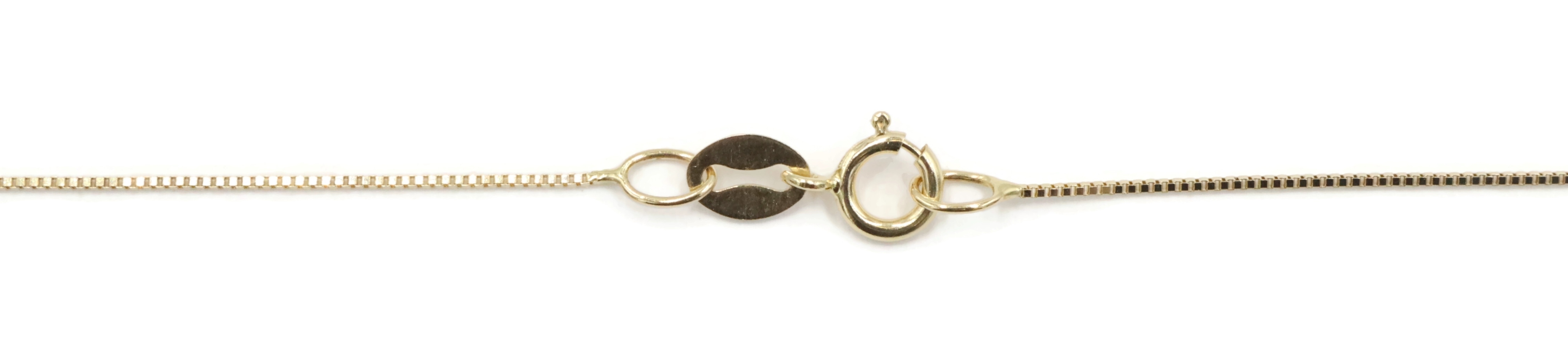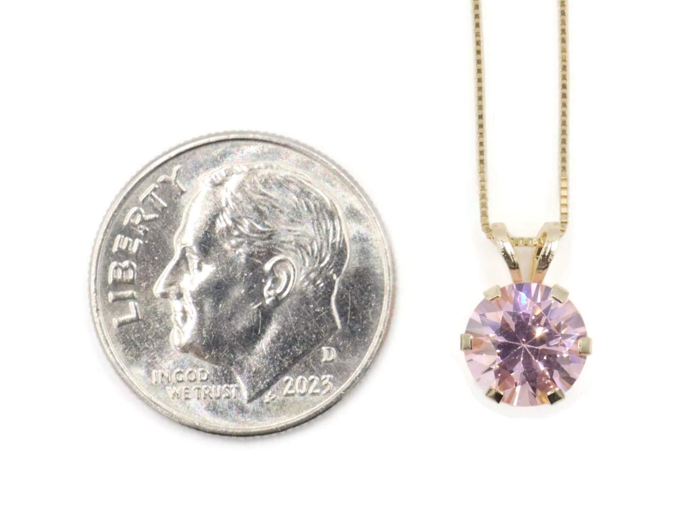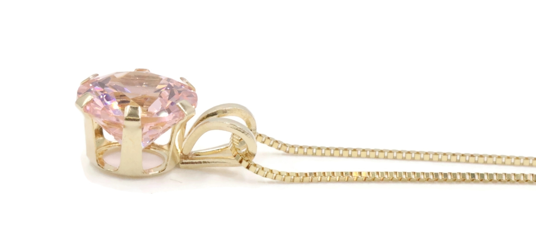 Solitaire 1.40 Ct Pink Synthetic Spinel 14KT Gold Pendant on 14KT Box Chain 18". This pendant is approximately 10.3mm in length (including the bail) and the box chain is approximately 18 inches in length.