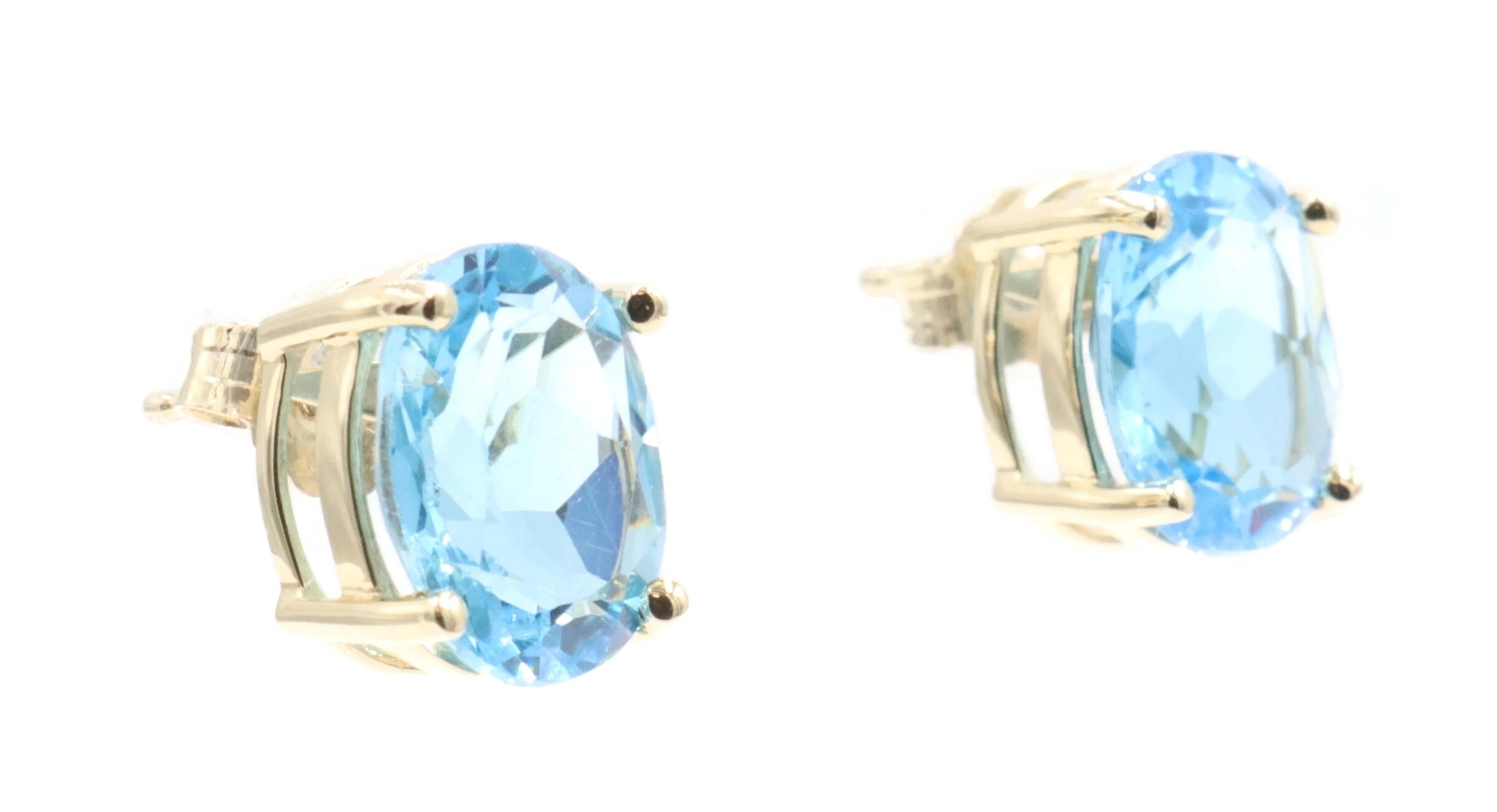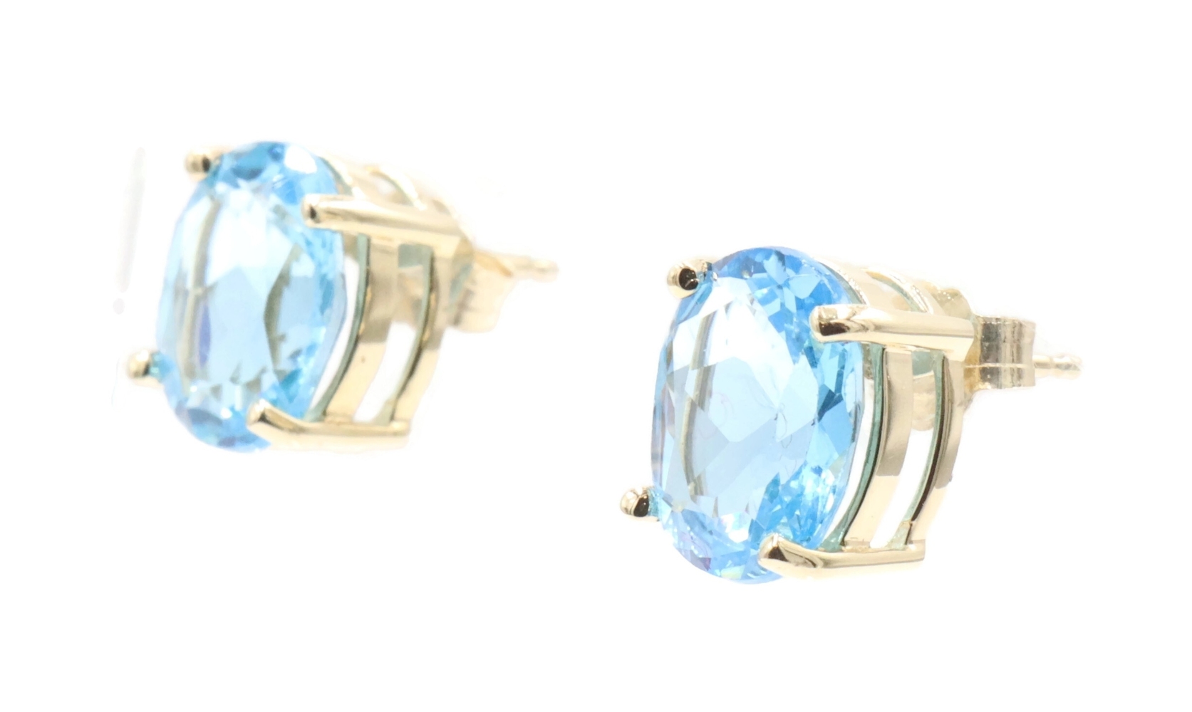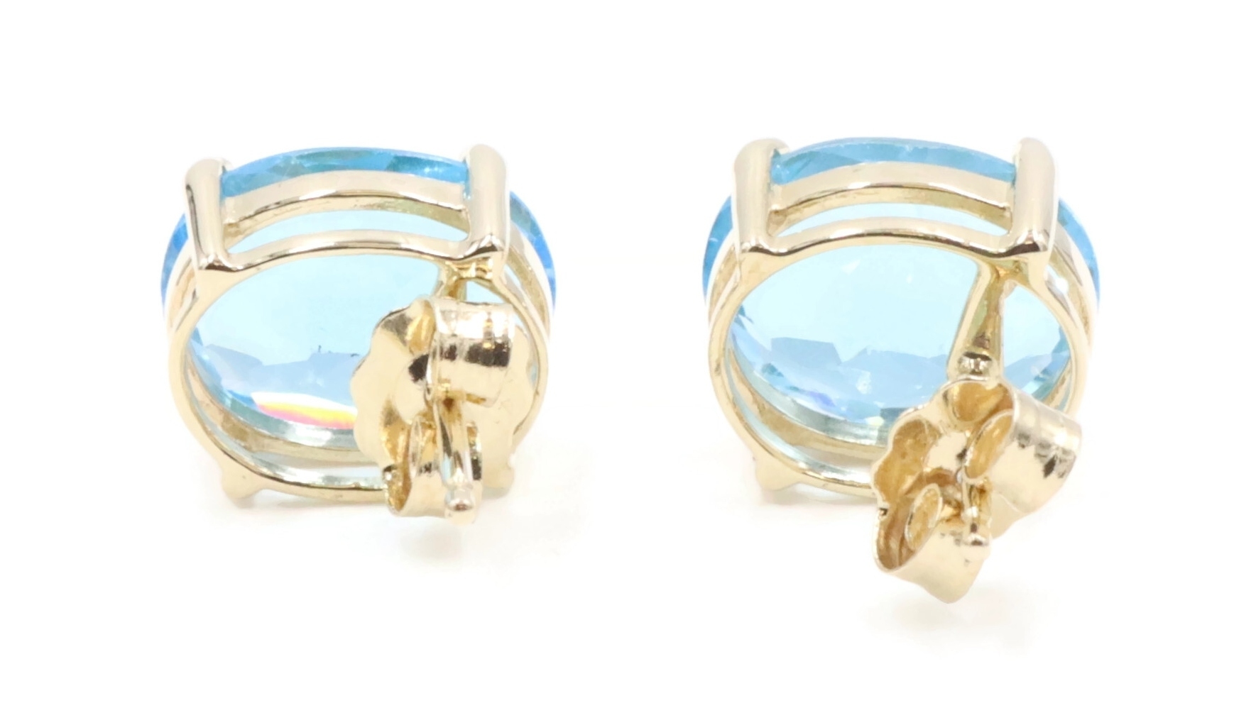 Solitaire 4.90 Ctw Oval Cut Blue Topaz 10mm 14KT Yellow Gold Stud Earrings 2.83g | USA Pawn