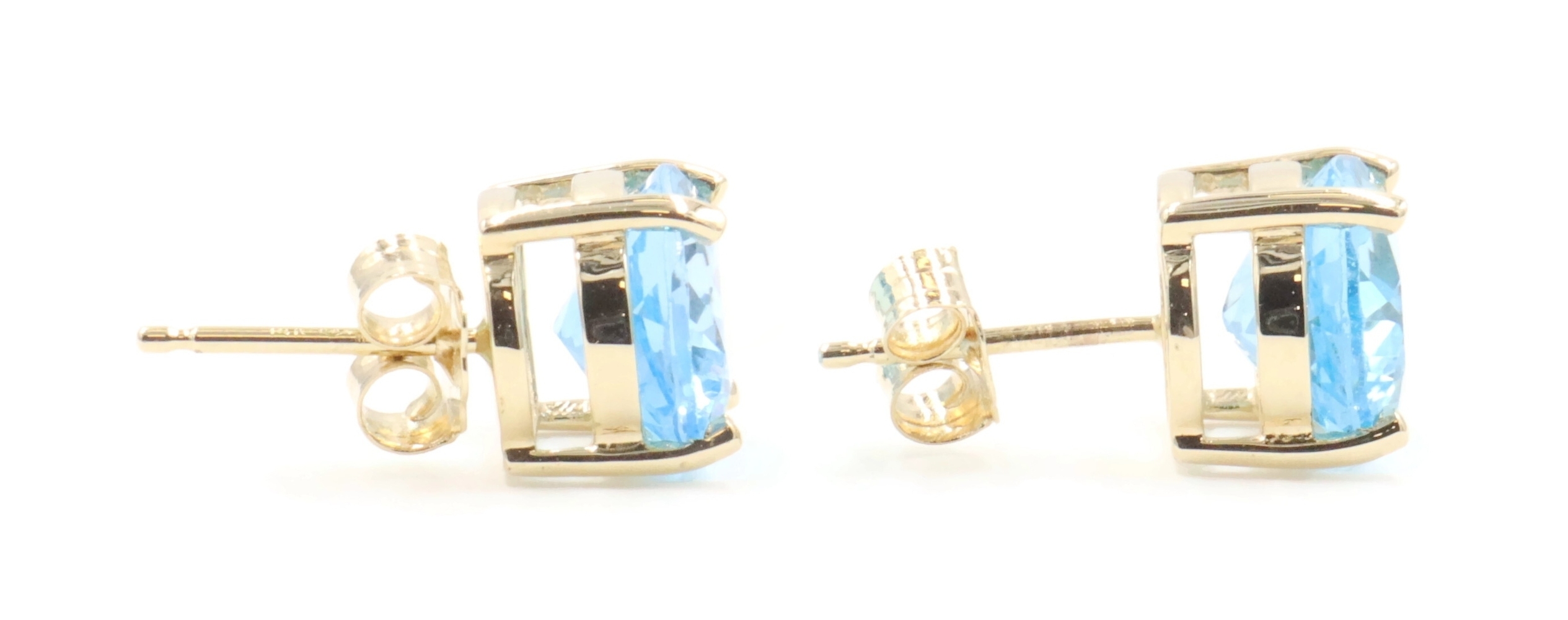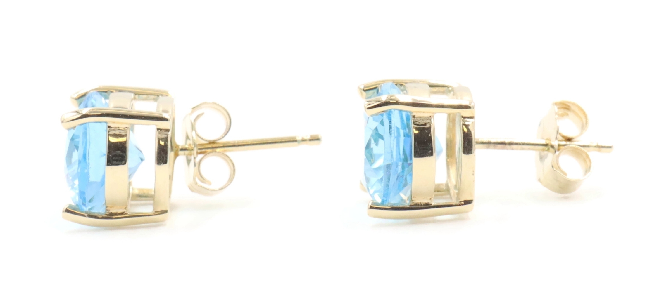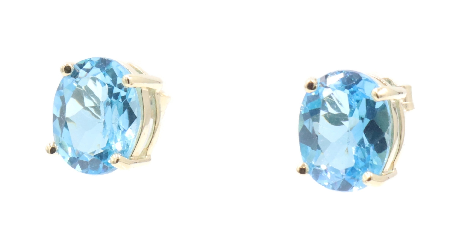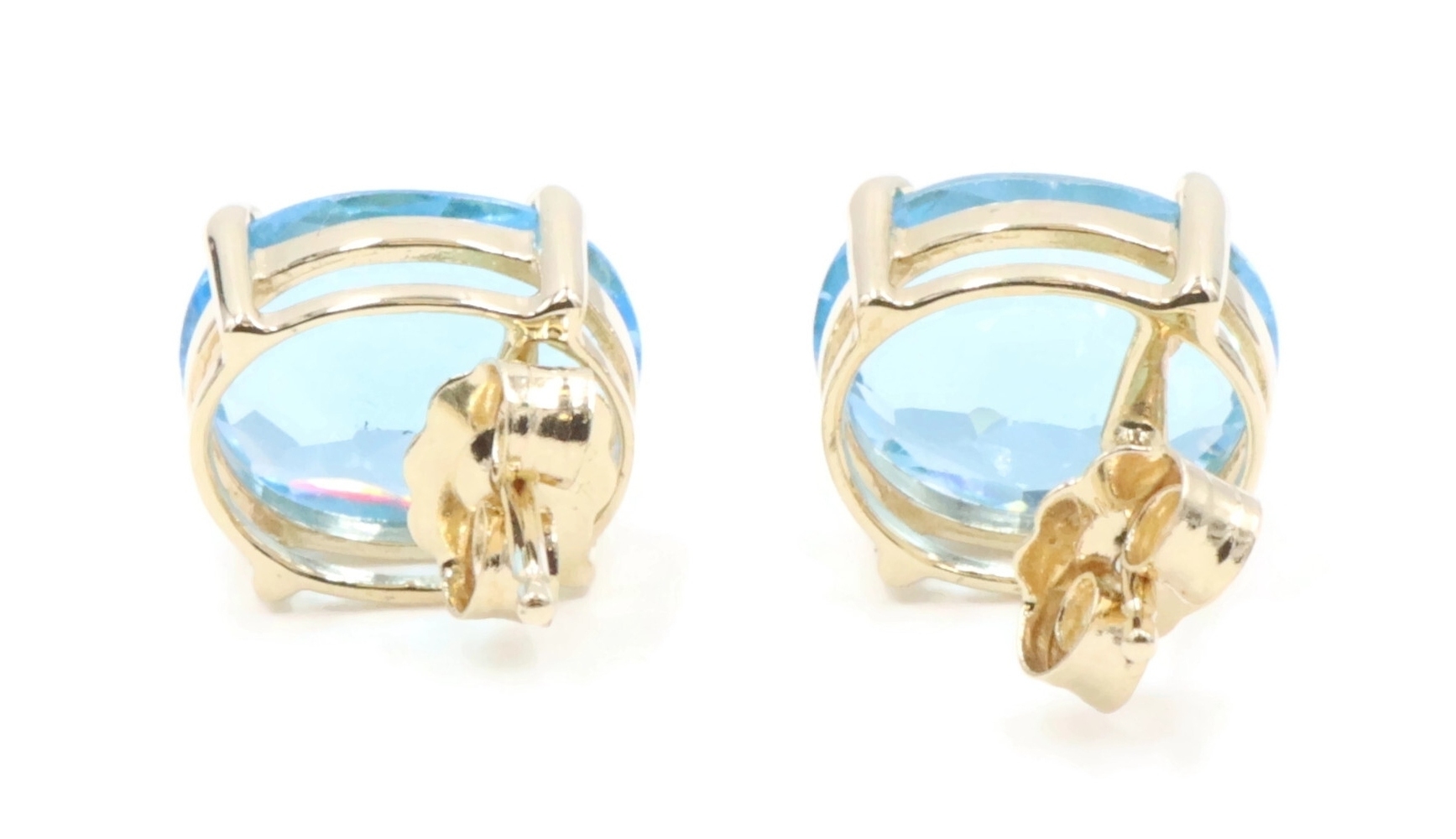 Solitaire 4.90 Ctw Oval Cut Blue Topaz 10mm 14KT Yellow Gold Stud Earrings 2.83g | USA Pawn