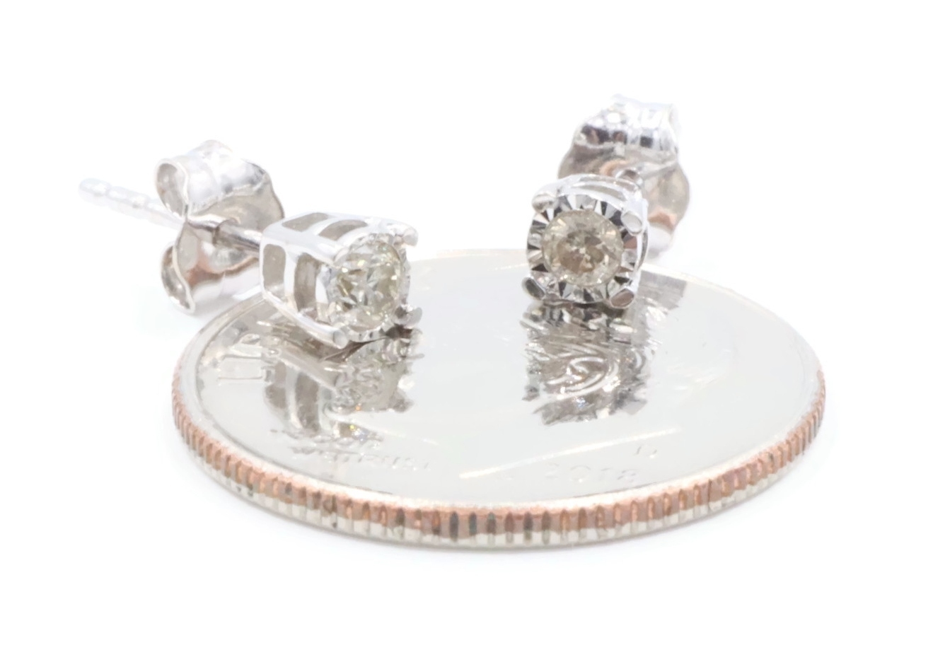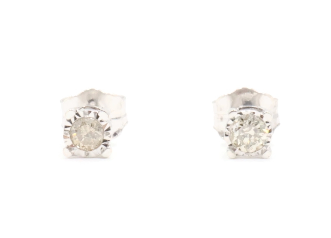 Solitaire Illusion-Set 0.10 Ctw Round Diamond 10KT White Gold Stud Earrings CJ | USA Pawn