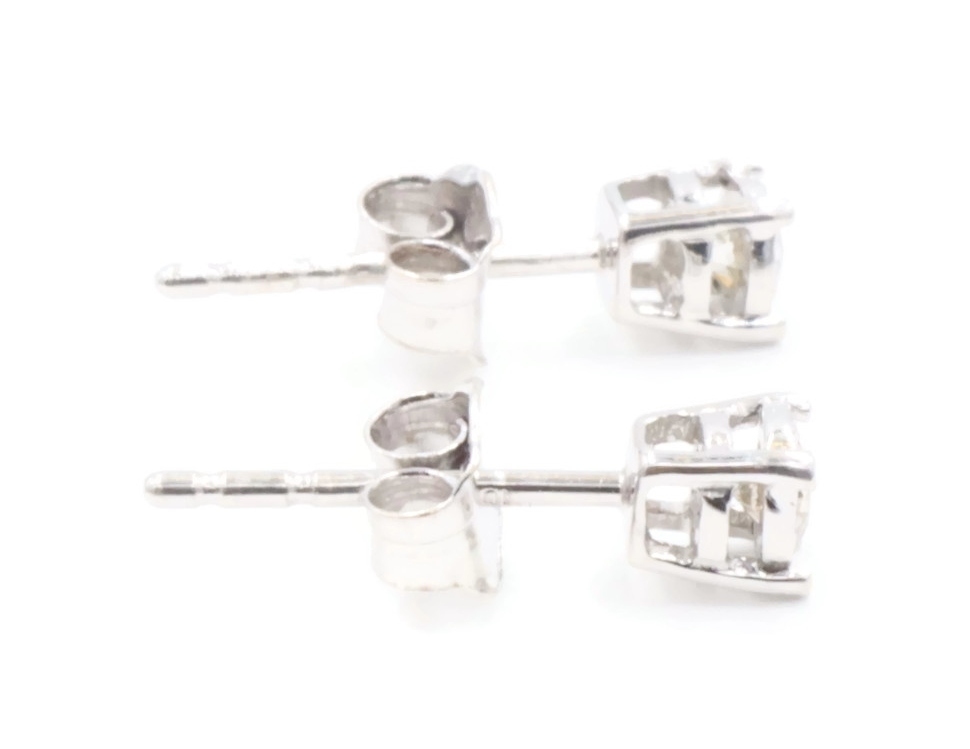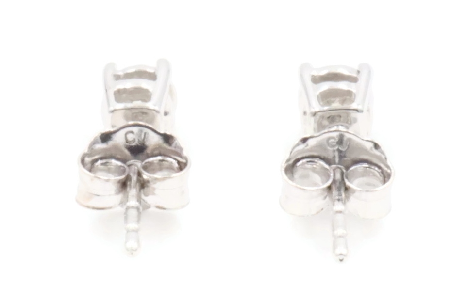 Solitaire Illusion-Set 0.10 Ctw Round Diamond 10KT White Gold Stud Earrings CJ. These earrings each have an approximate width of 3.2mm.