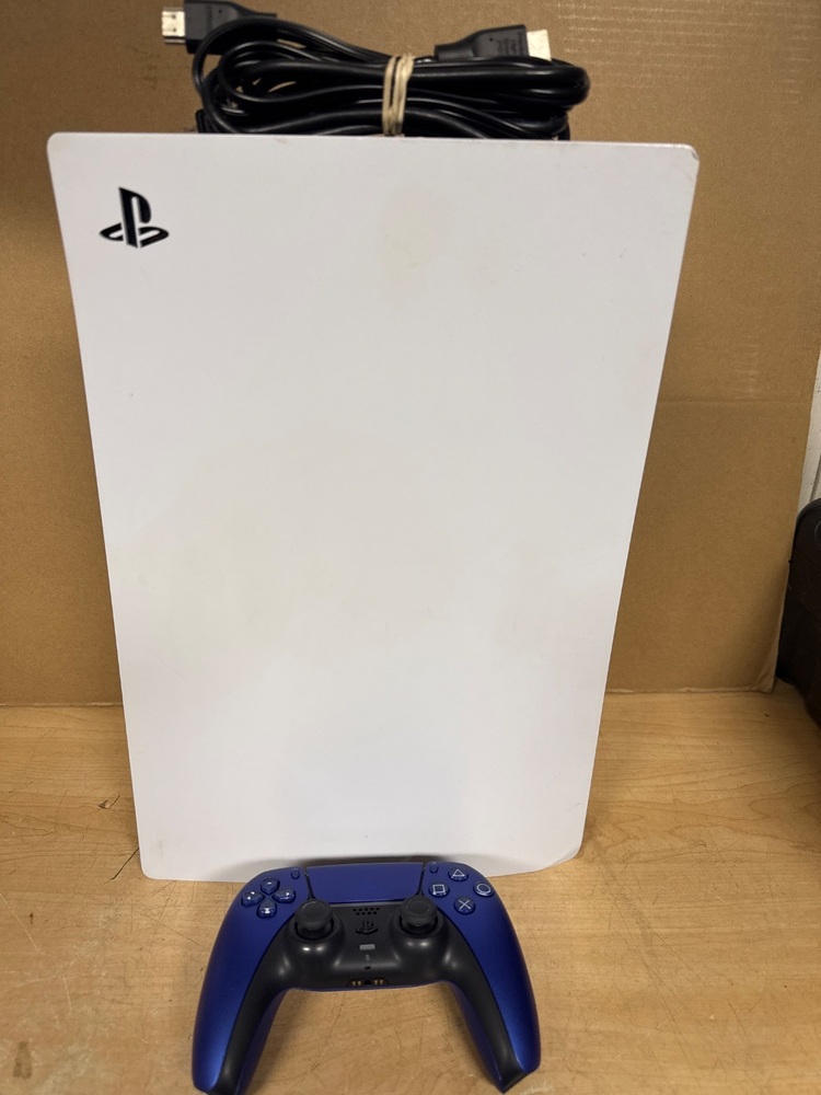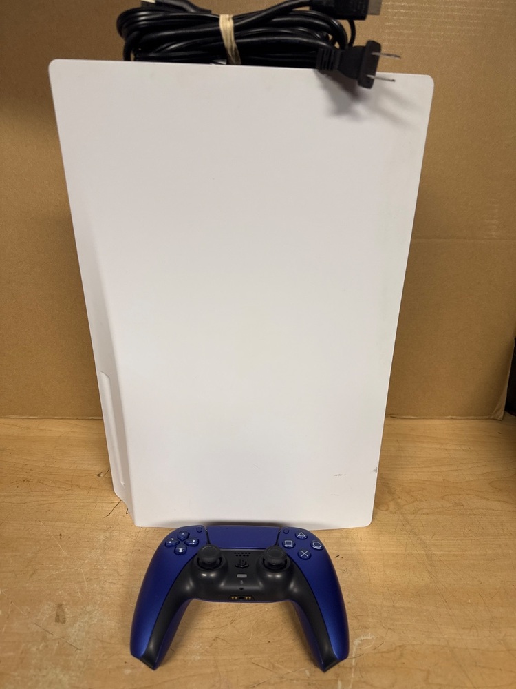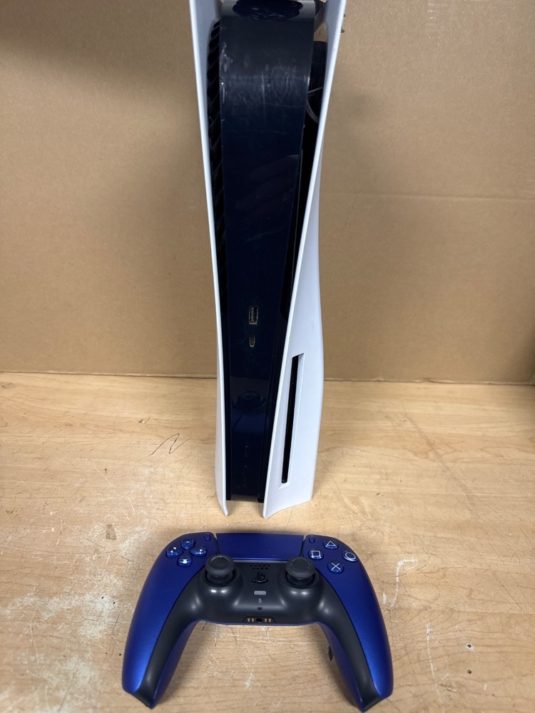 SONY CFI-1015A / PS5 GAMING CONSOLE / DISC / POWER CORD / HDMI CABLE / BLUE WIRELESS CONTROLLER (NO CHARGER)
