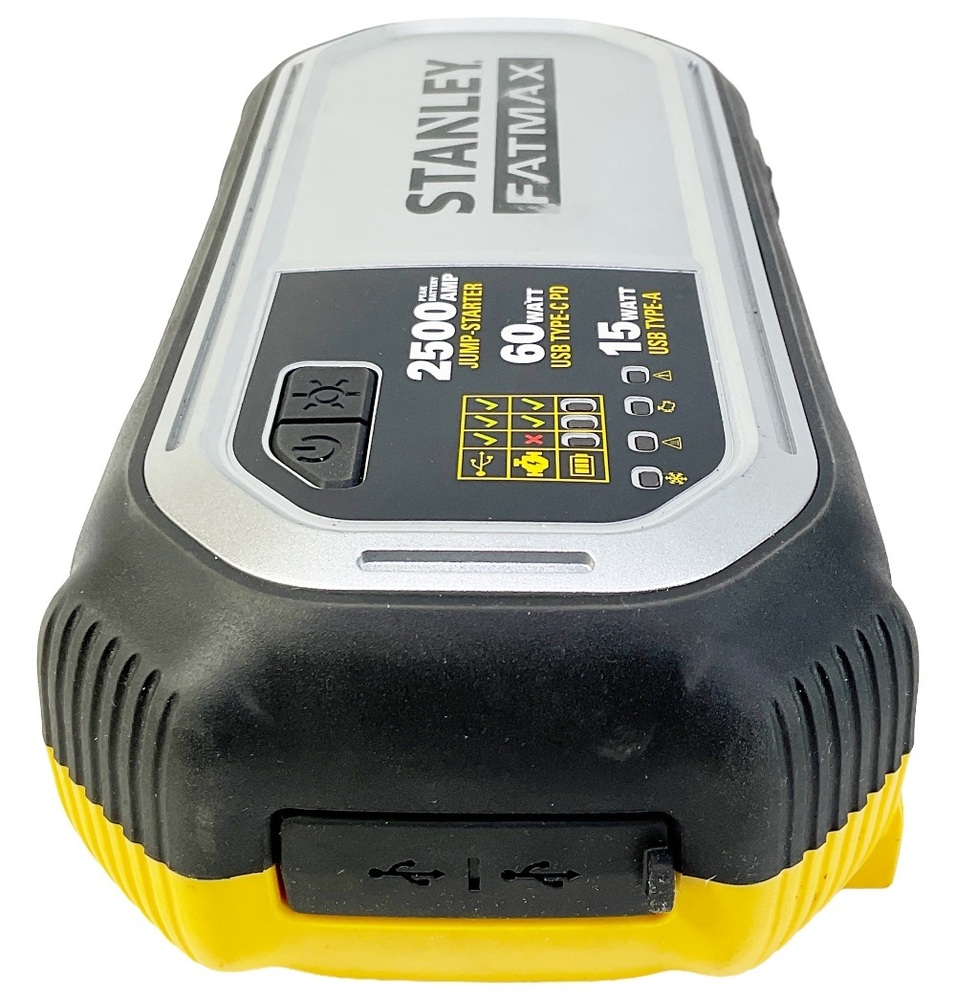 Stanley LJ25F FatMax 2500A Lithium Jump Starter Lithium Jump Starter With 60W USB Type C-PD, 25W USB Type C-PD and 15W USB Type - A, Includes clamps