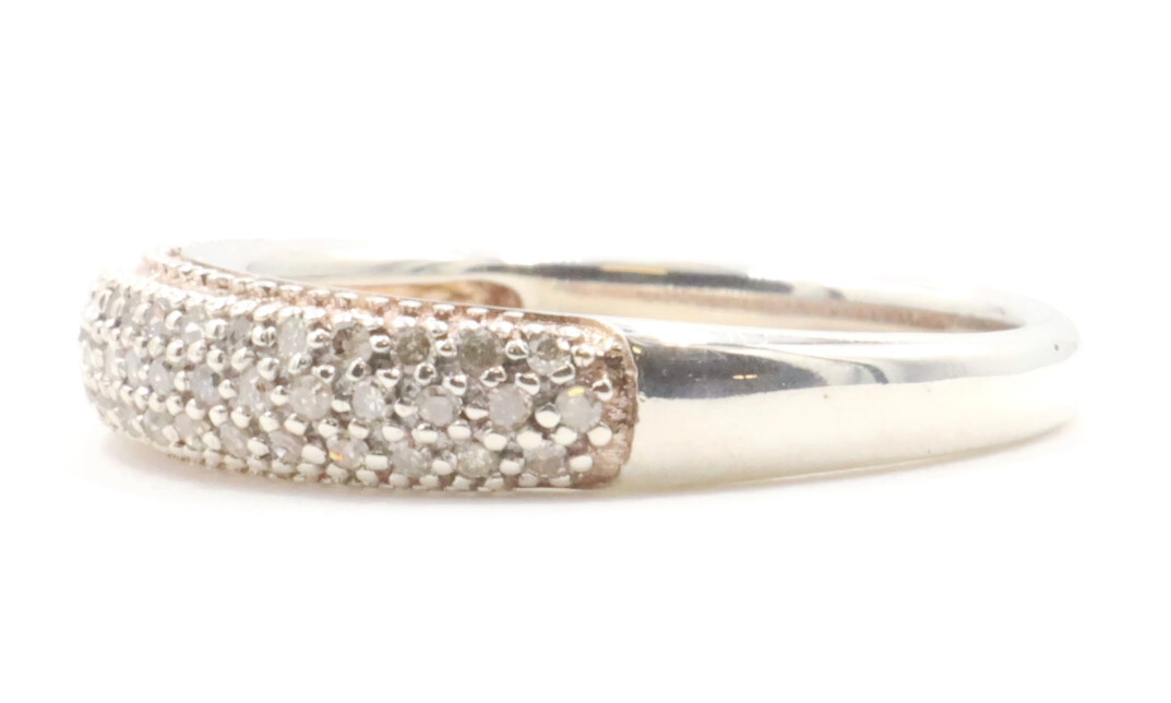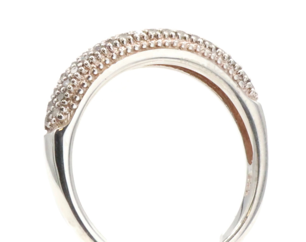 Sterling Silver 4.2mm 0.25 ctw Round Diamond Three Row Anniversary Band Ring. This ring is a size 7. Featuring 54 round cut single natural diamonds nad one round cut (replacement) CVD diamond with a total approximate diamond carat weight of 0.25 ctw.