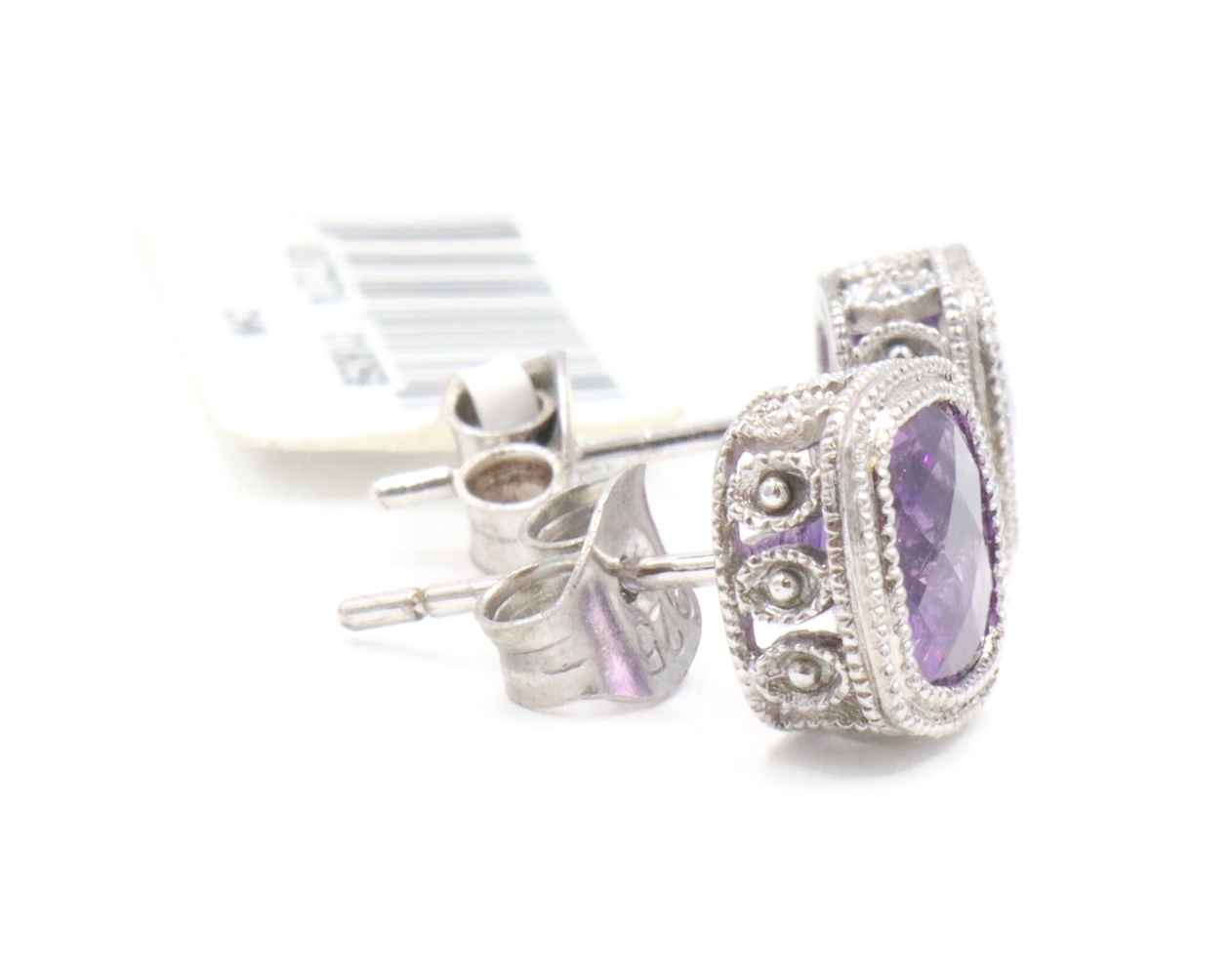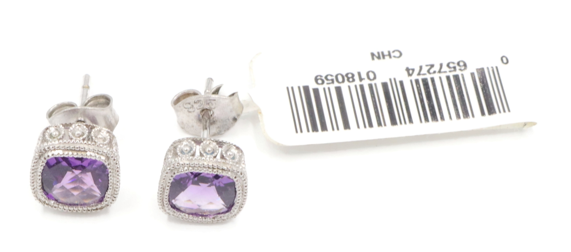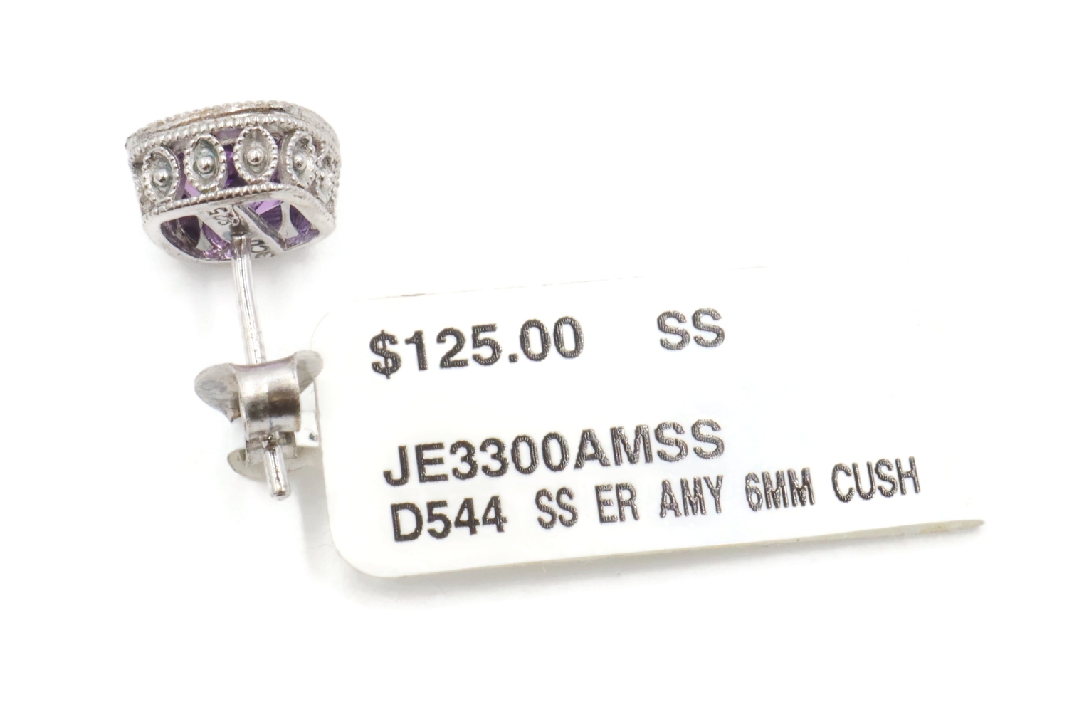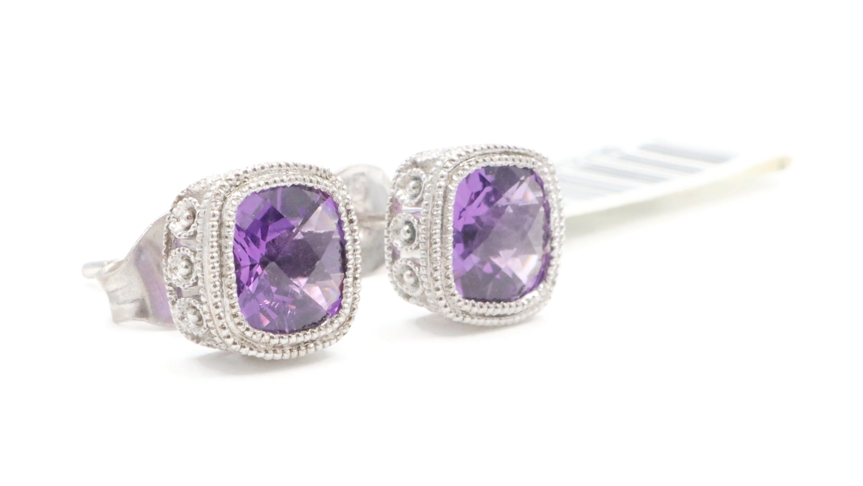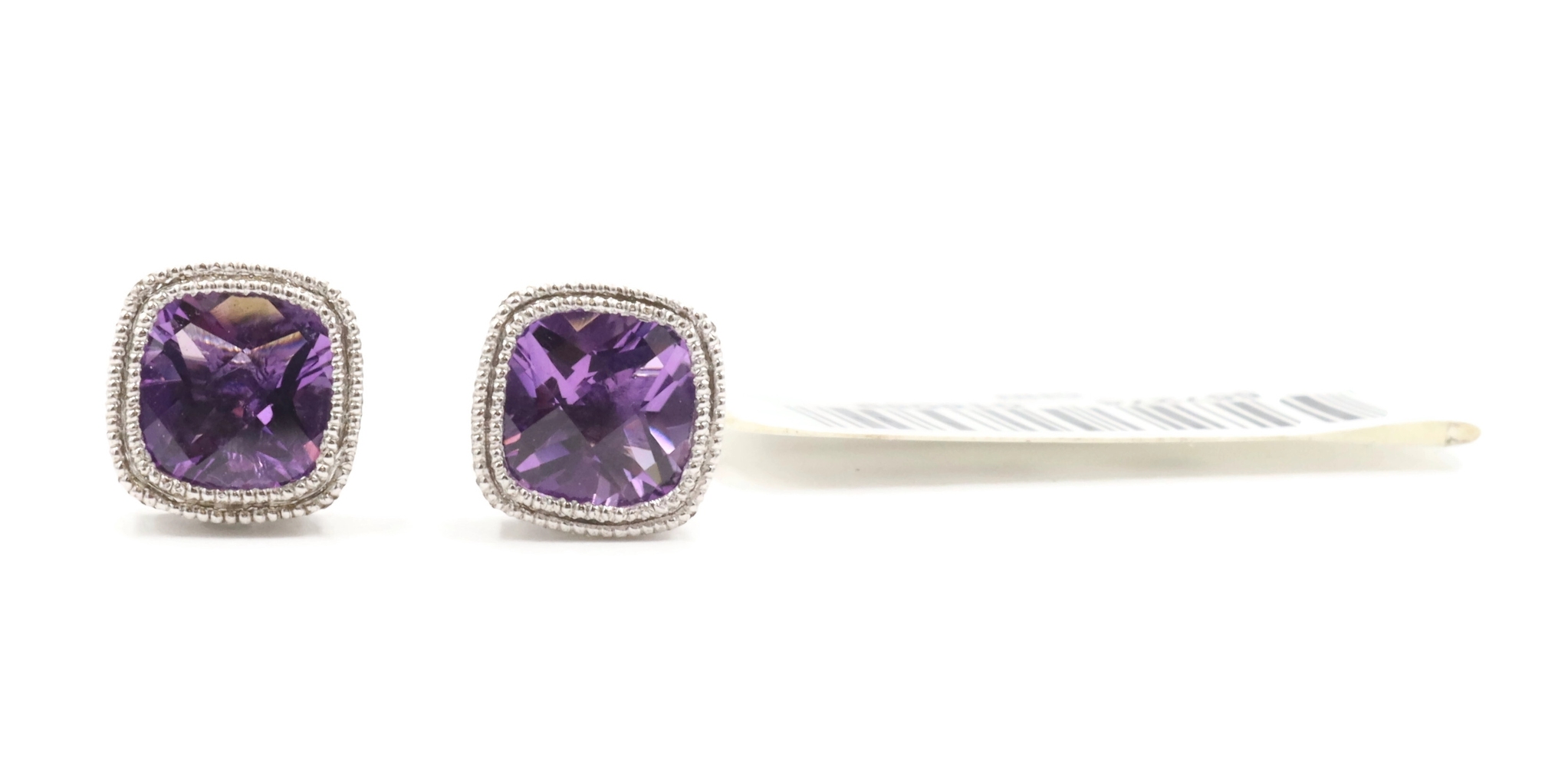 Sterling Silver 6mm Cushion Cut Purple Amethyst 925 Solitaire Stud Earrings | USA Pawn