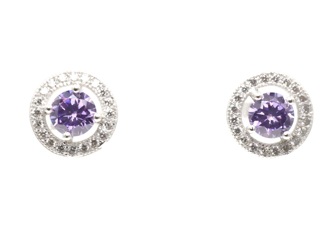 Sterling Silver 9.6mm Round Cut White & Purple CZ Halo 925 Stud Earrings