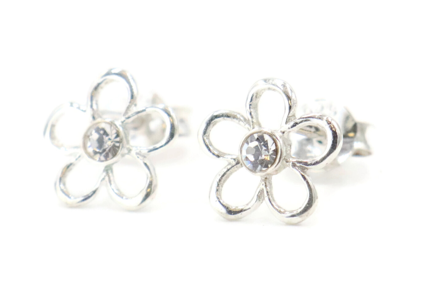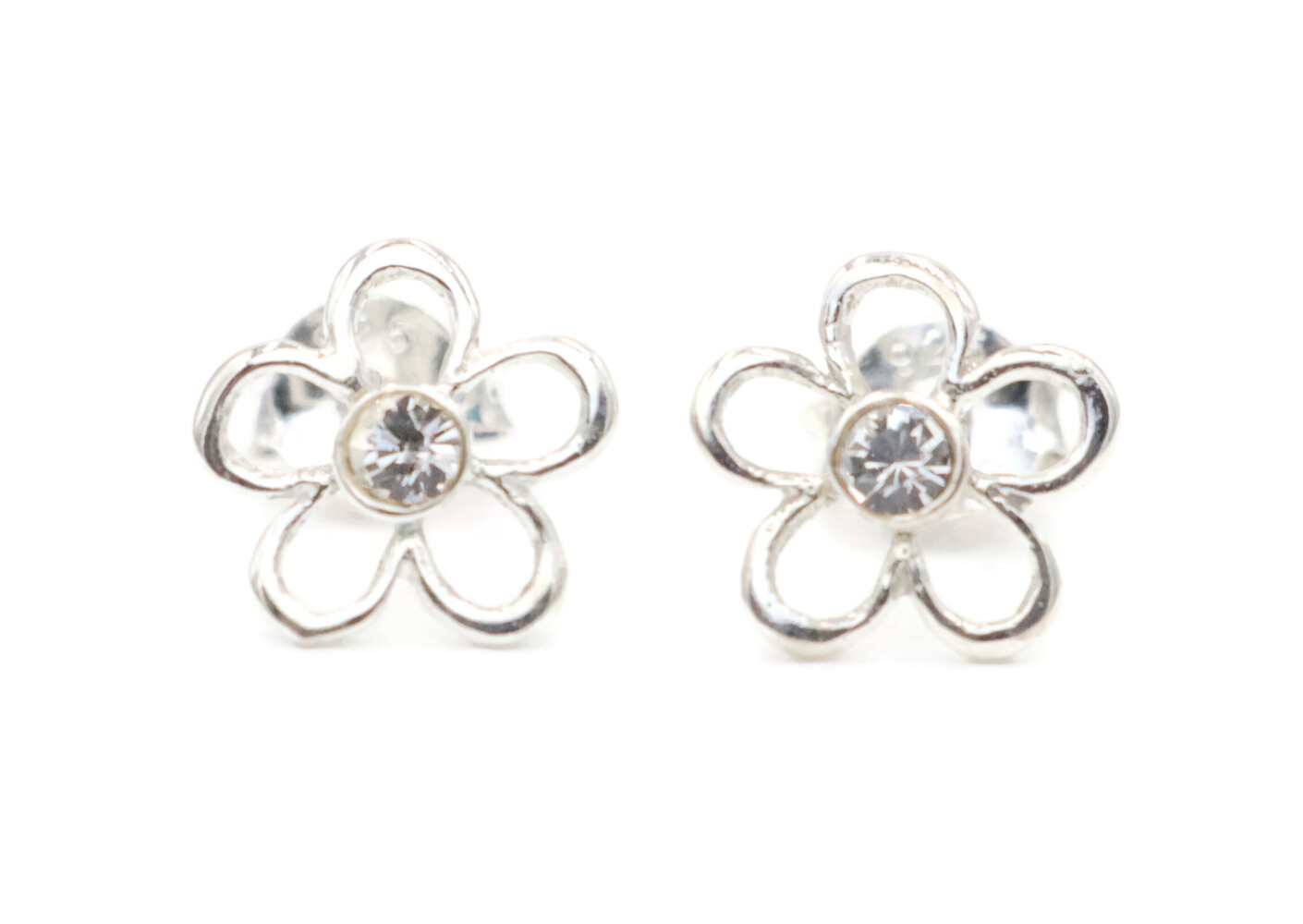 Sterling Silver (925) Bezel-Set Round Cut Clear CZ 8.8mm Flower Stud Earrings | USA Pawn