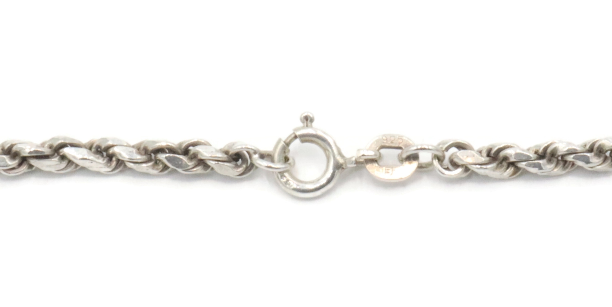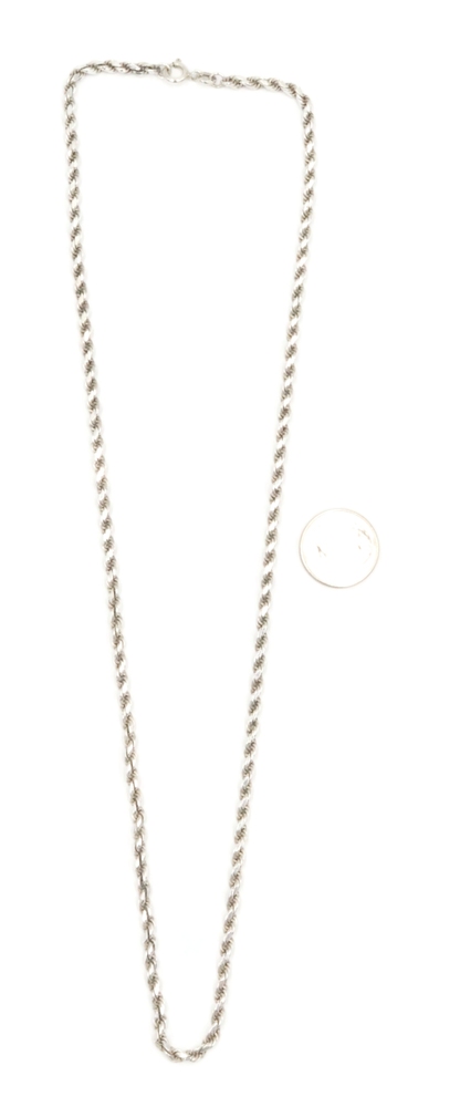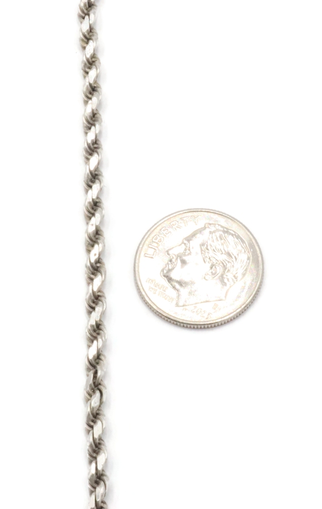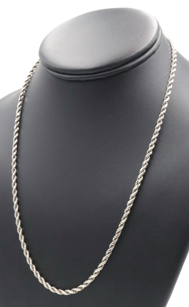 Sterling Silver (925) High Shine 3mm Wide Rope Chain Necklace 19" FJ - 14.24g. This necklace is approximately 19 inches in length and 3mm in width.